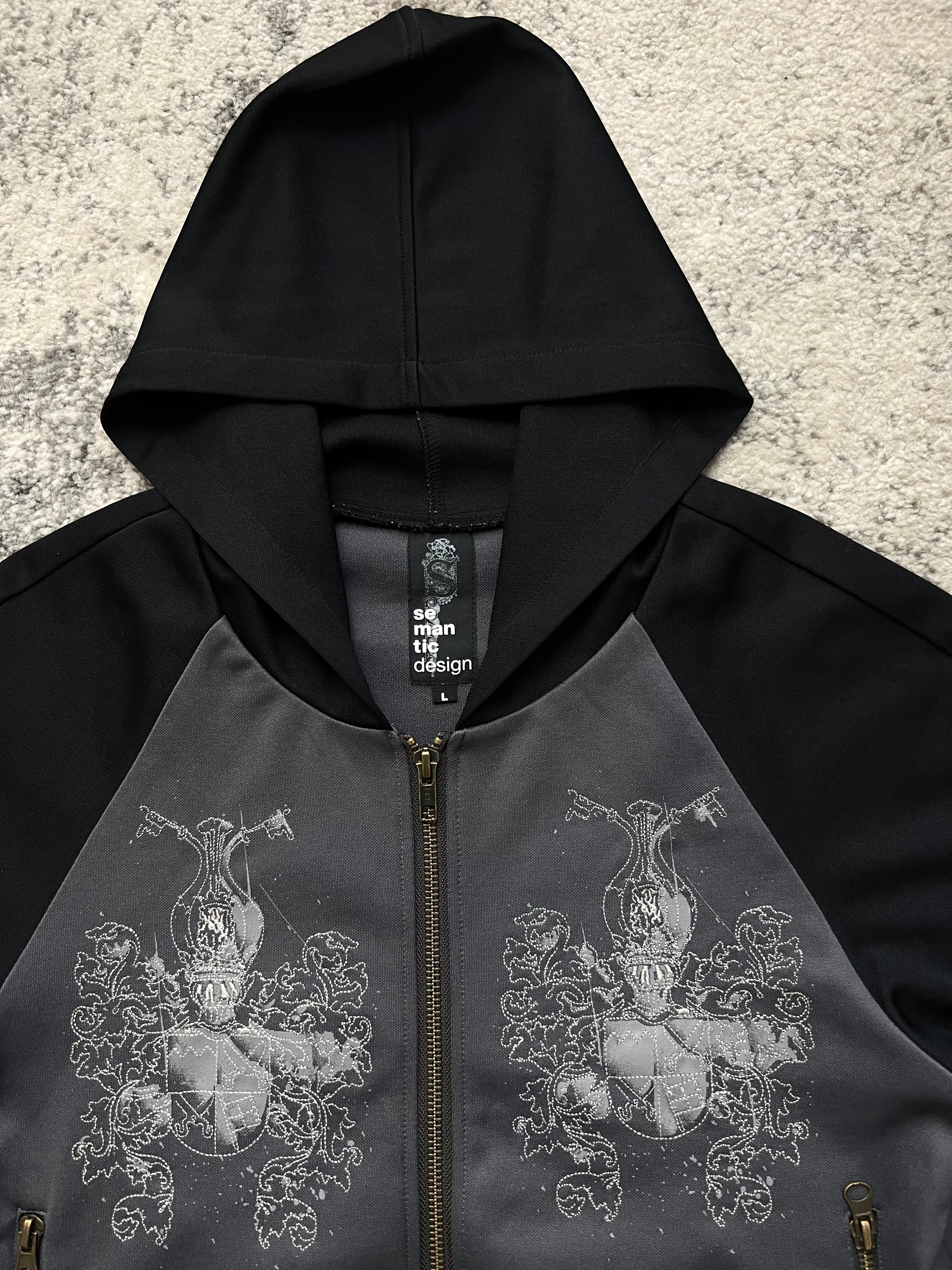 Dark minimalism meets Japanese graphic precision in this Semantic Design hoodie . With a clean silhouette and subtle mirror crest print , it fuses techwear coolness with underground energy. The perfect layering piece for both quiet luxury and loud flexes.