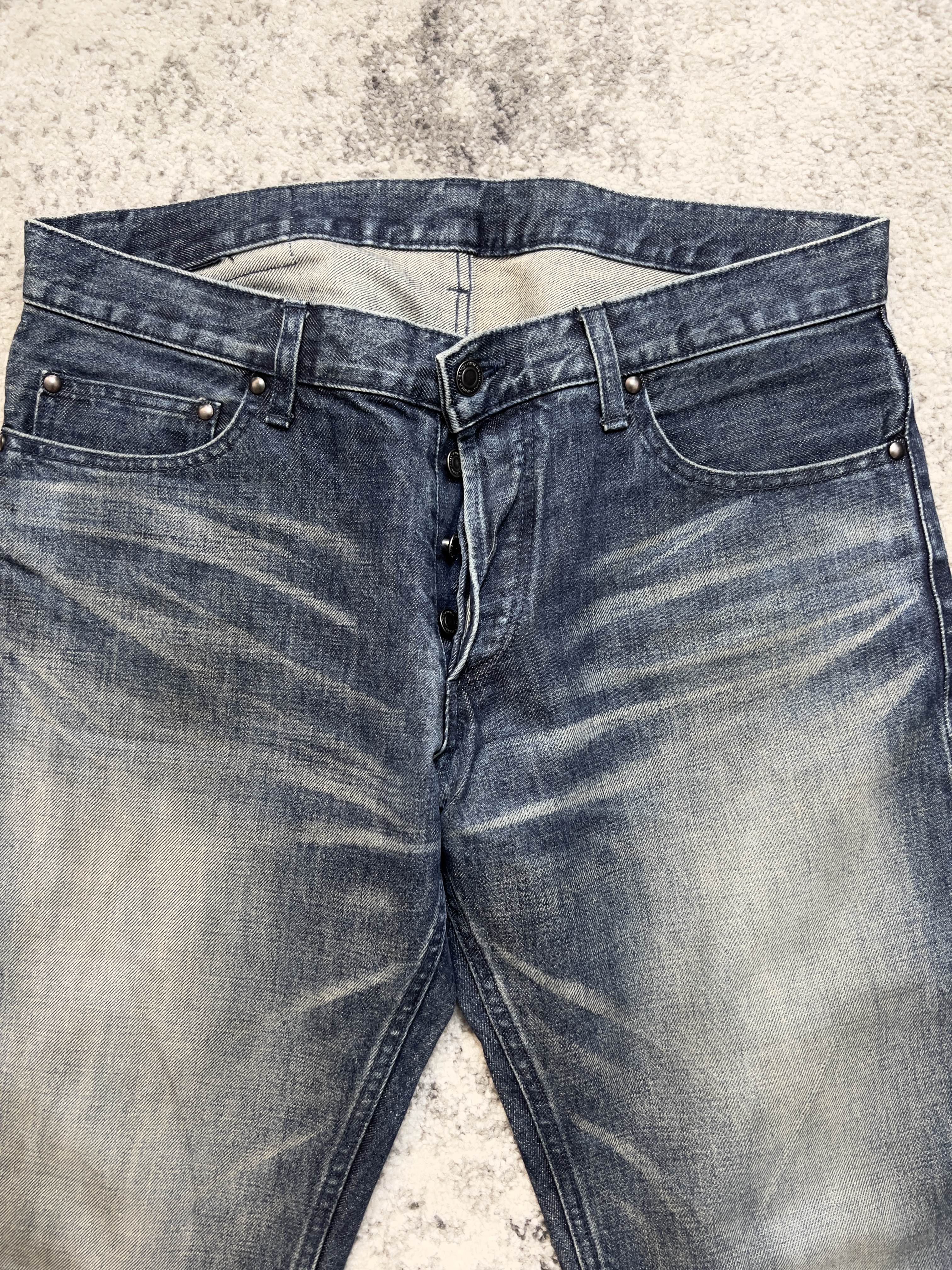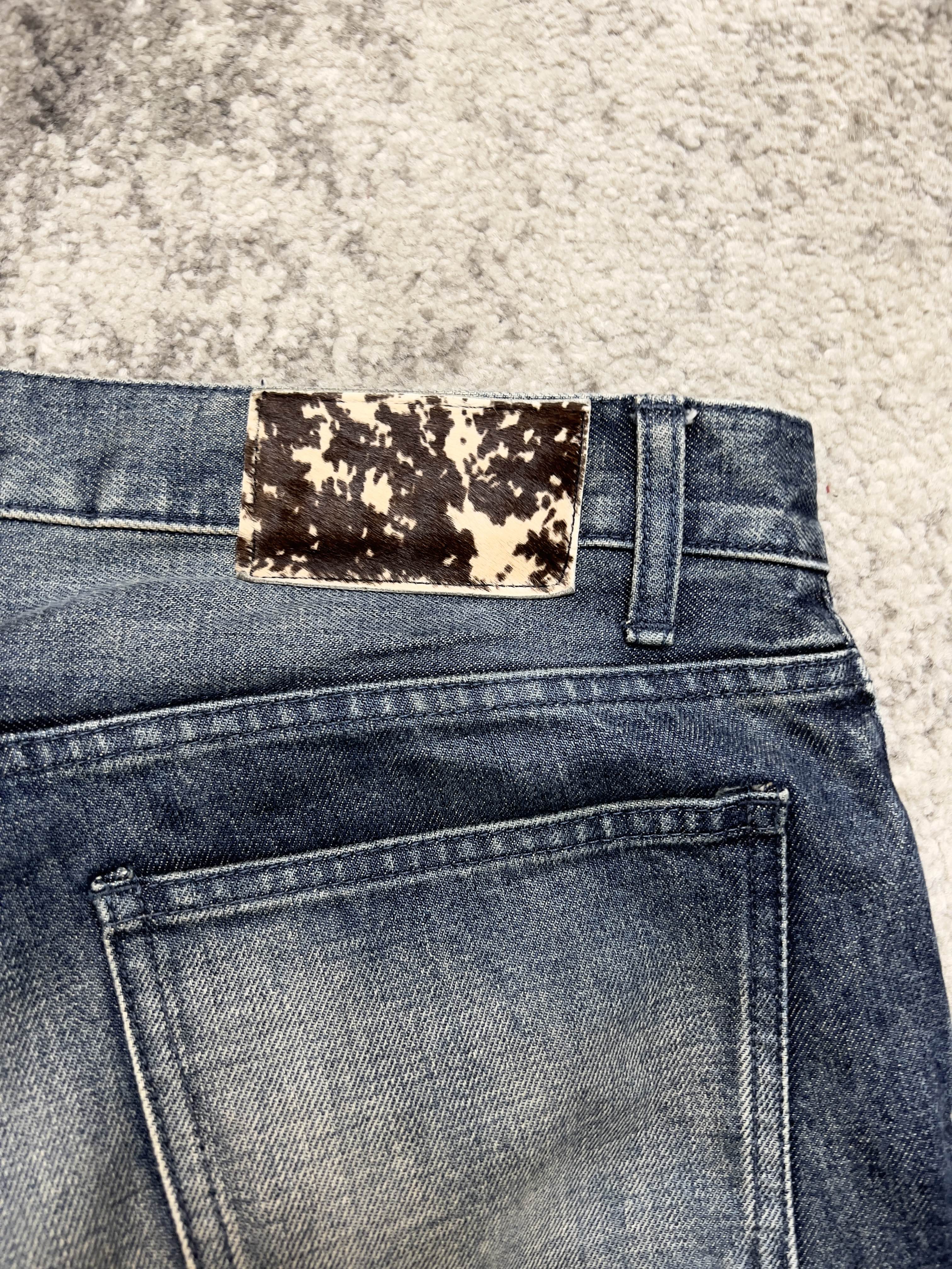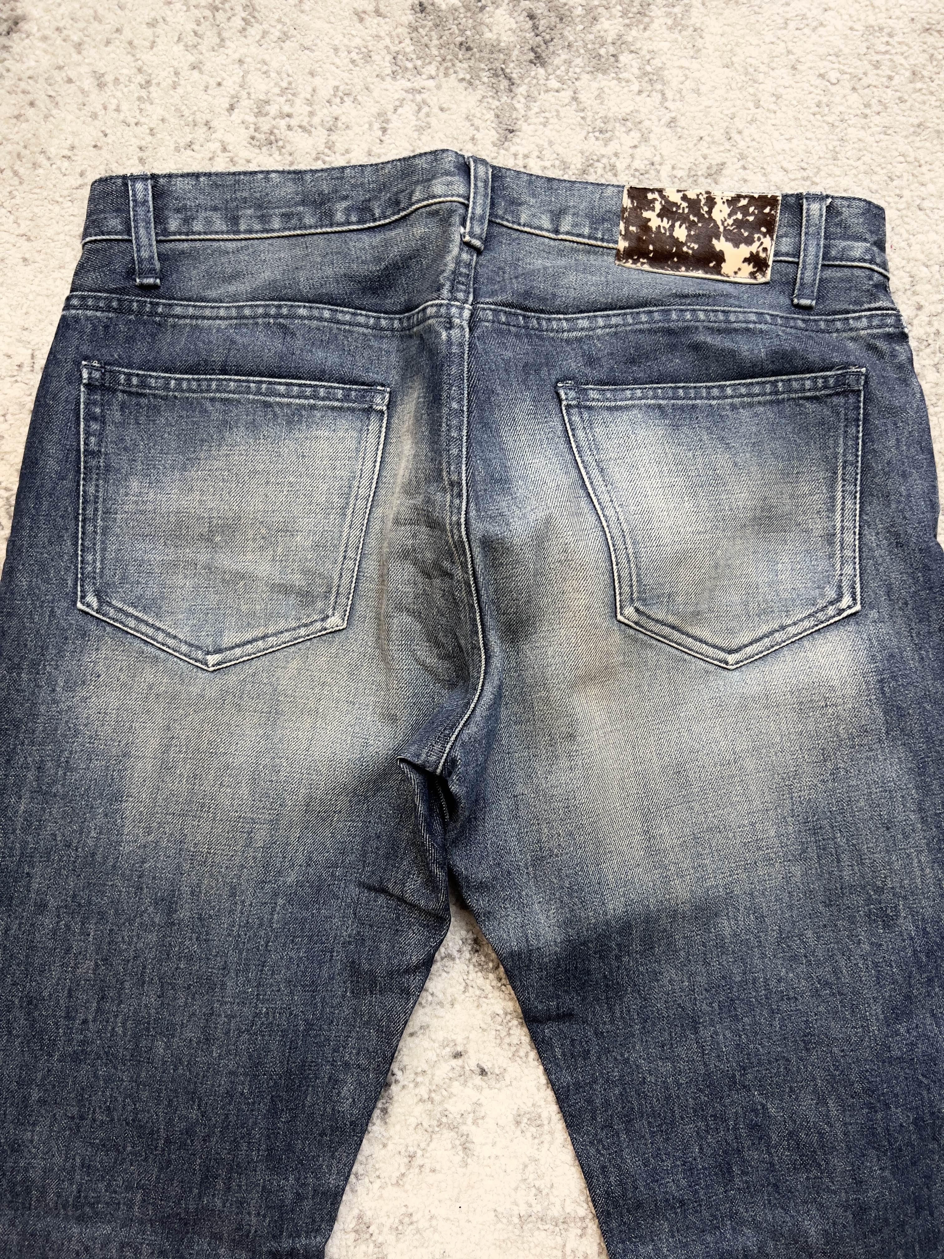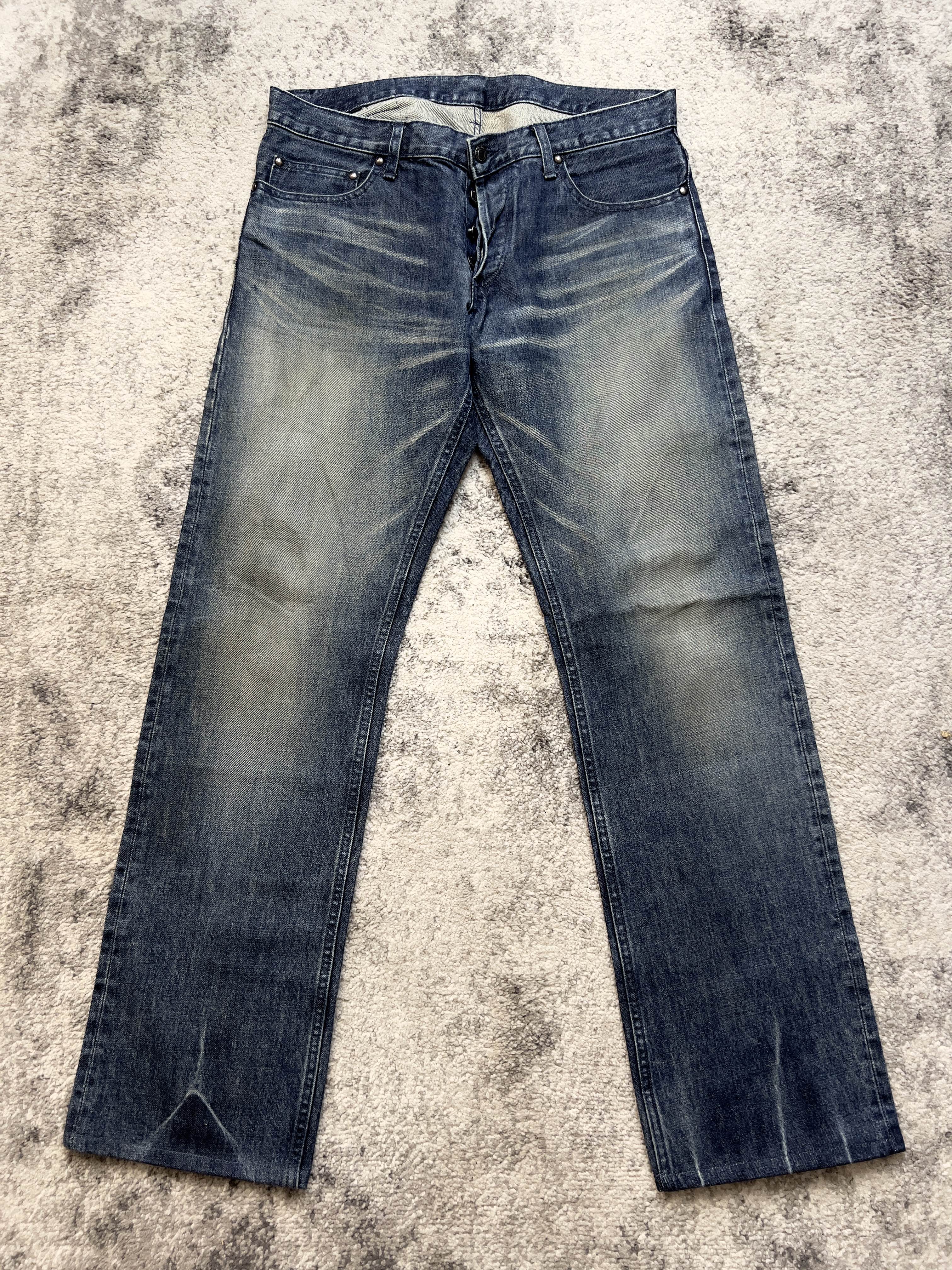Worn with purpose. Faded indigo tones, natural creasing, and gentle whiskering throughout. No major flaws – just a piece that's been on the road a few times.