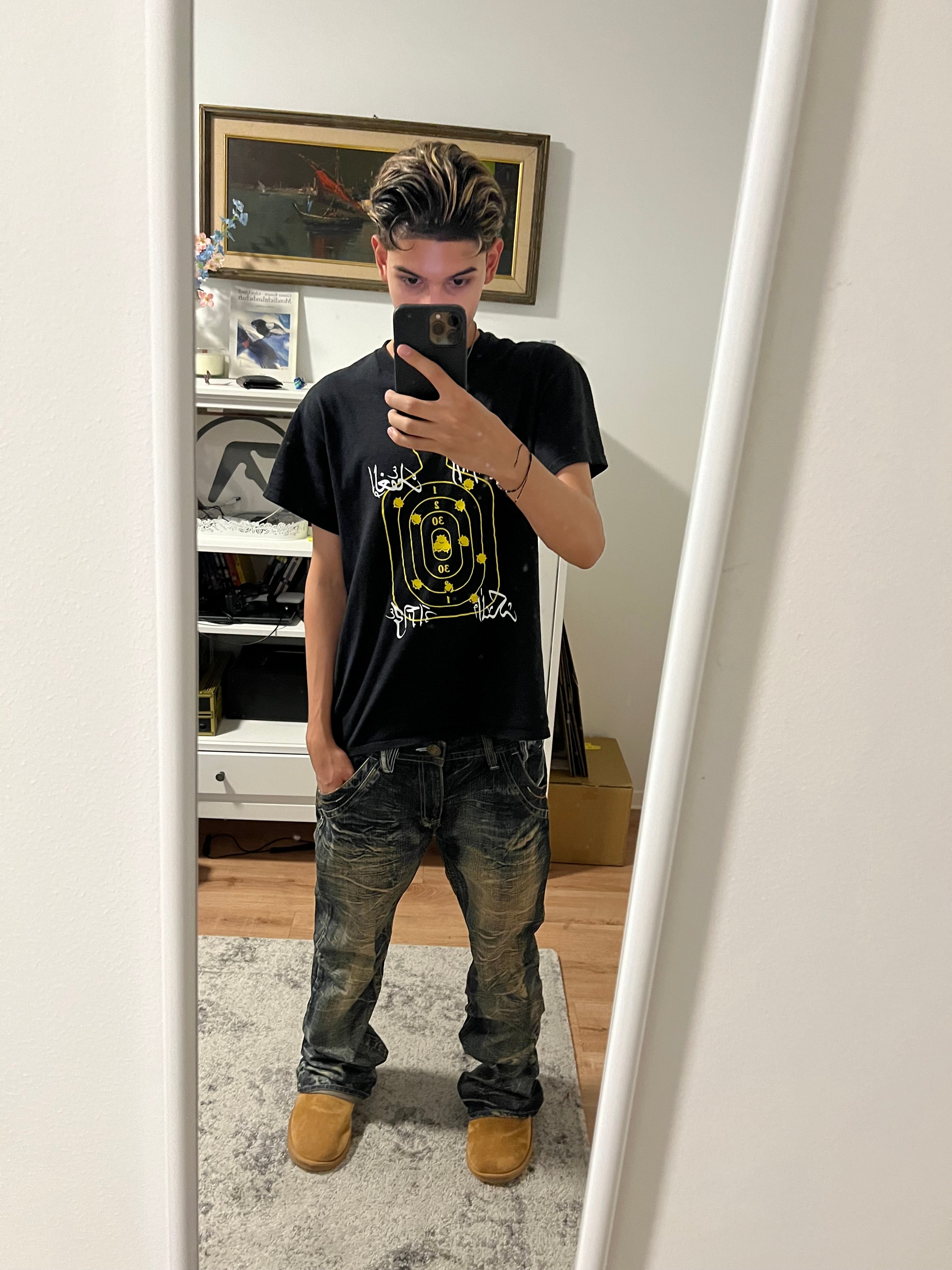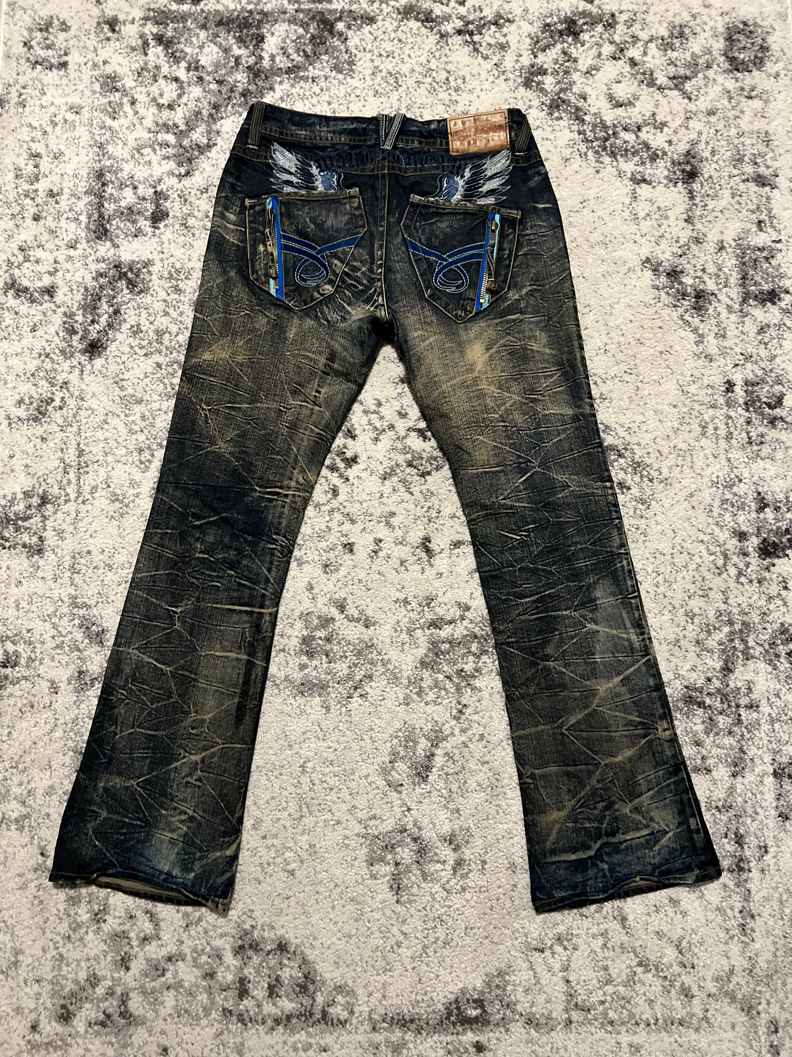 Sky Bomber Japanese Flared Denim Size : M Condition : 9/10 Measurements : Length 111cm, Waist 42cm, Leg Opening 25cm Read more