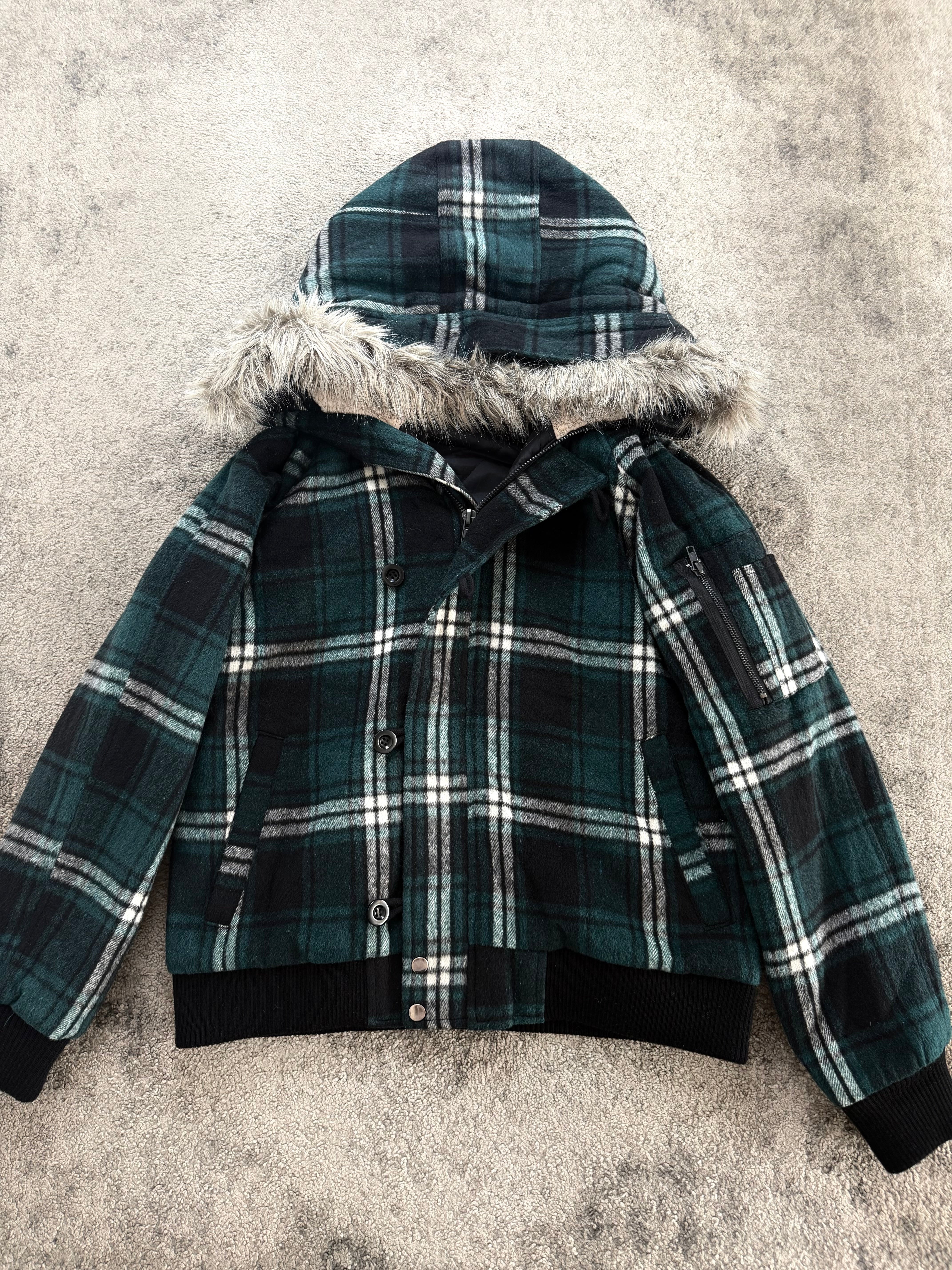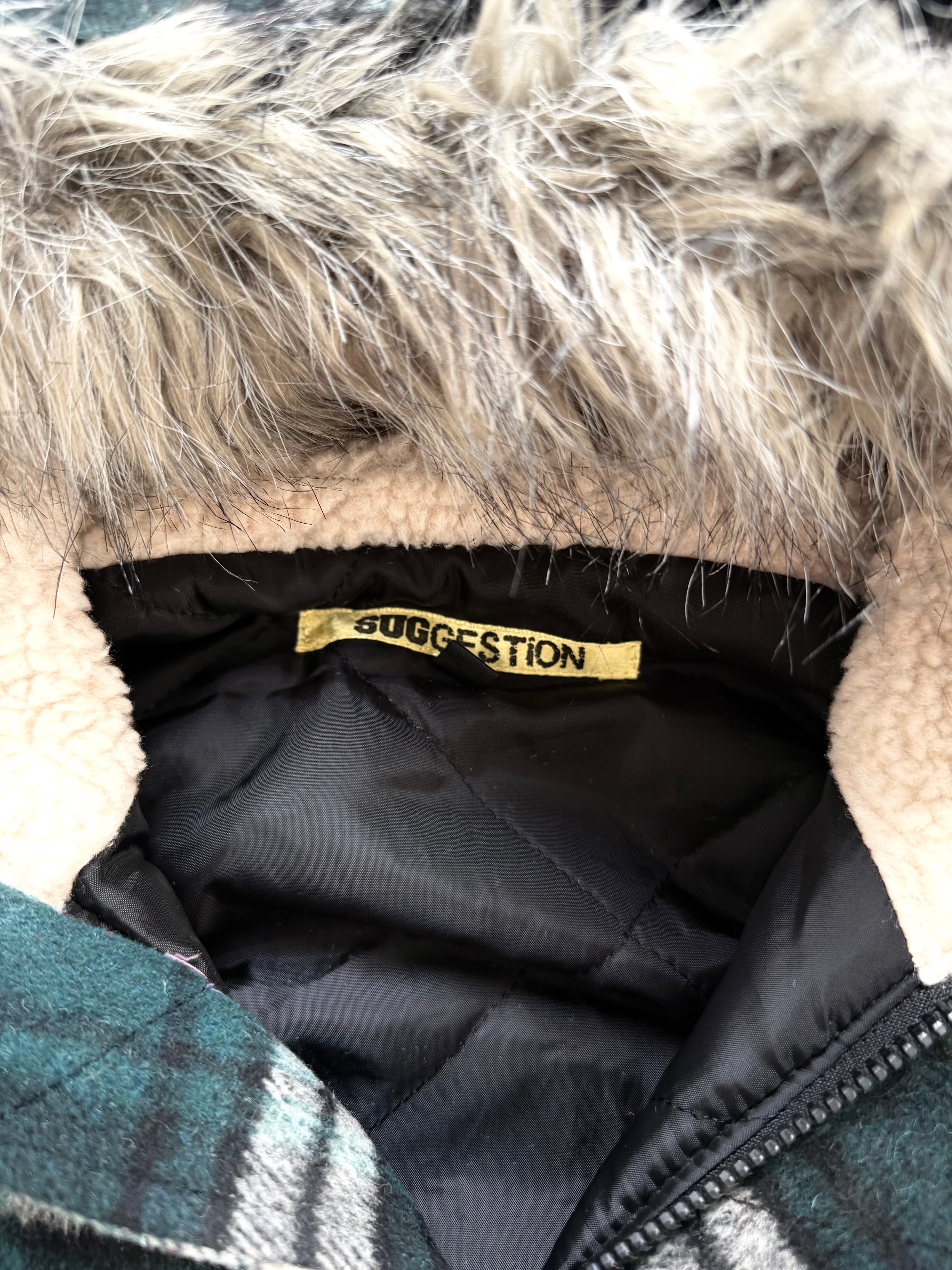 SUGGESTION “Plaid Riot Archive” Hooded Jacket – deep forest tartan, faux-fur trim, and that effortless Japanese archive cool. A piece that feels rooted in the early Number Nine / ifsixwasnine era – where grunge, rock, and Tokyo street attitude collide. Cozy, rebellious, and full of character.