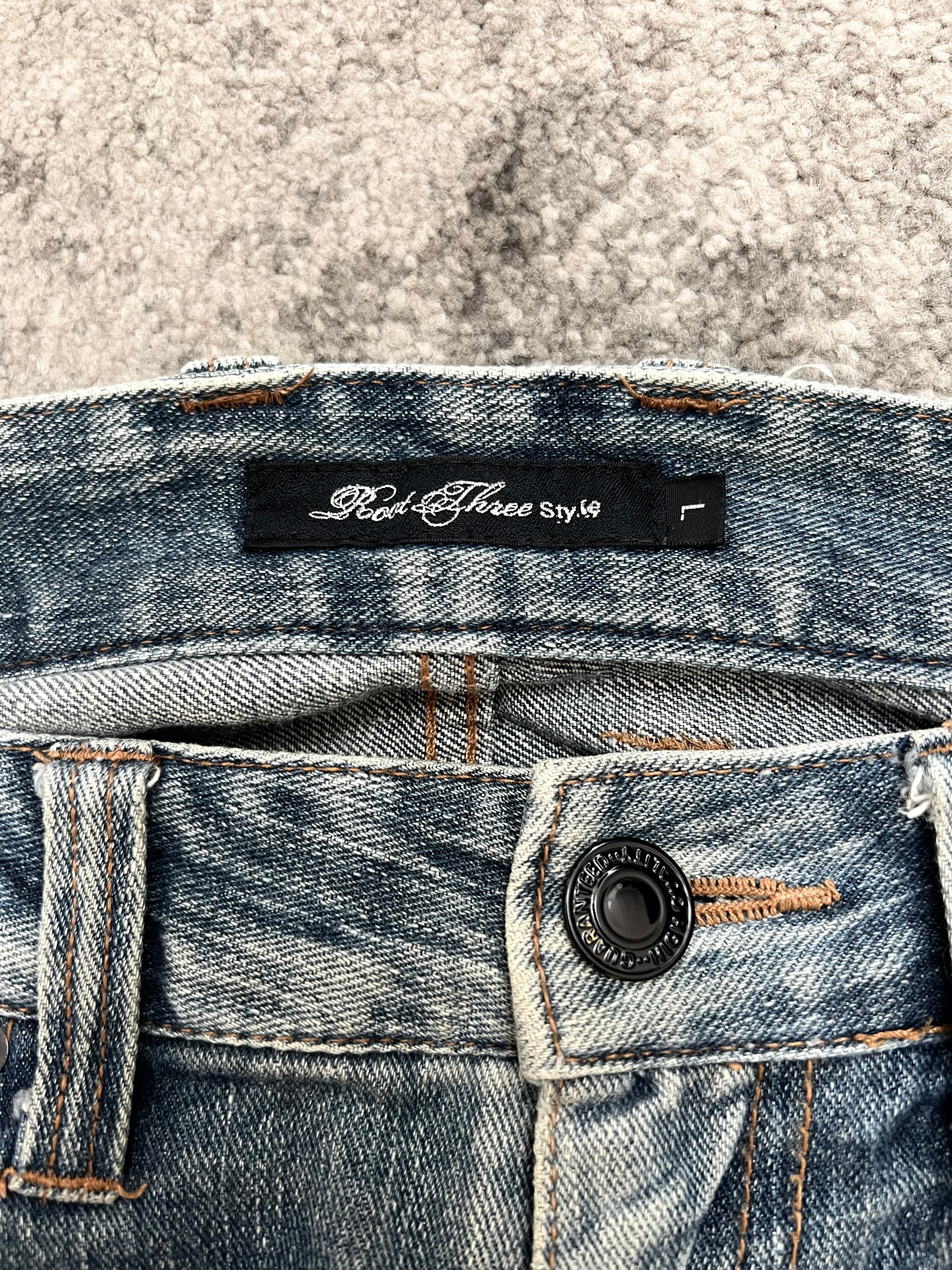 THREE STYLE “GHOST FREQUENCY” – denim like a broken signal, faded and fierce.