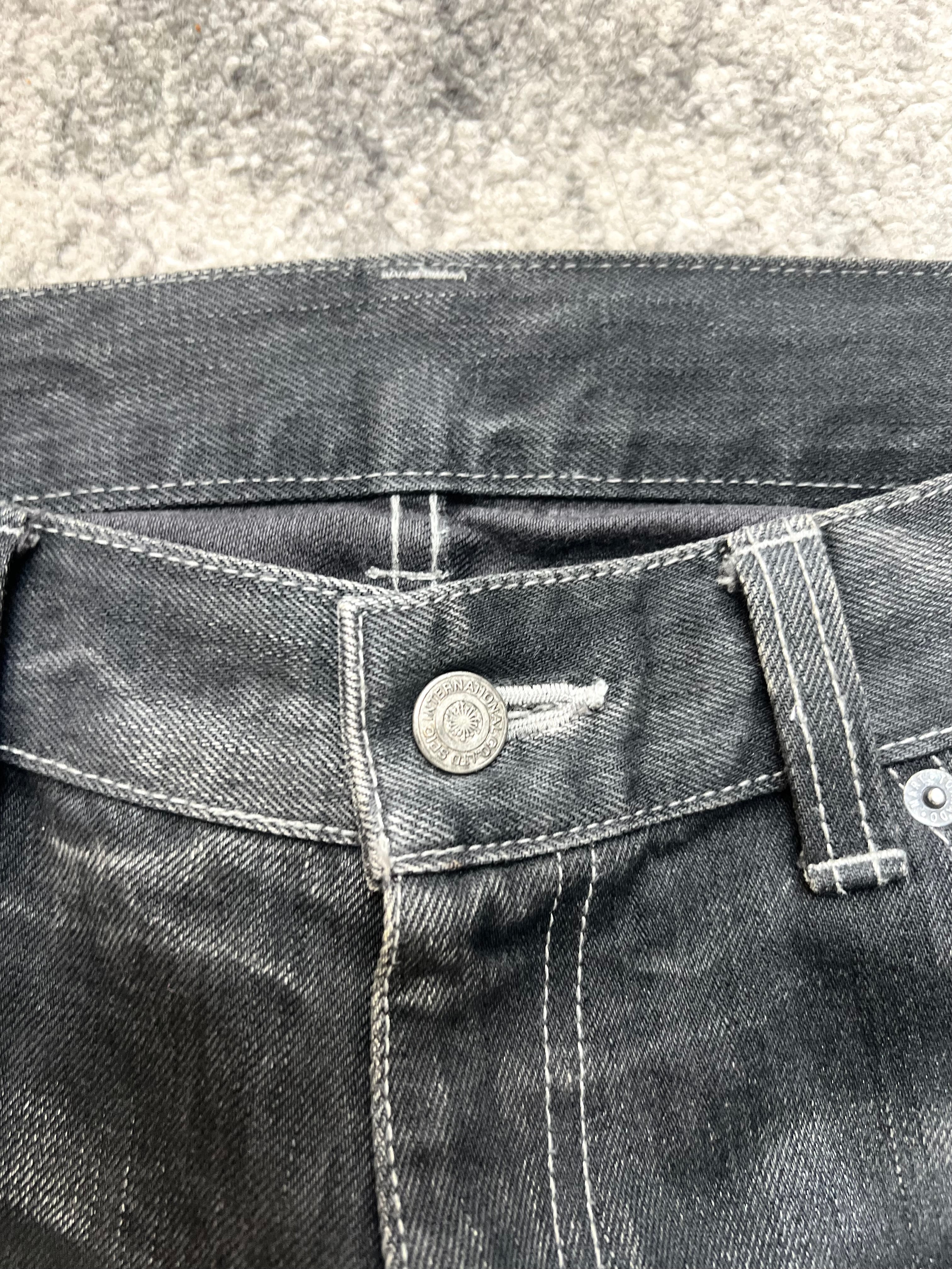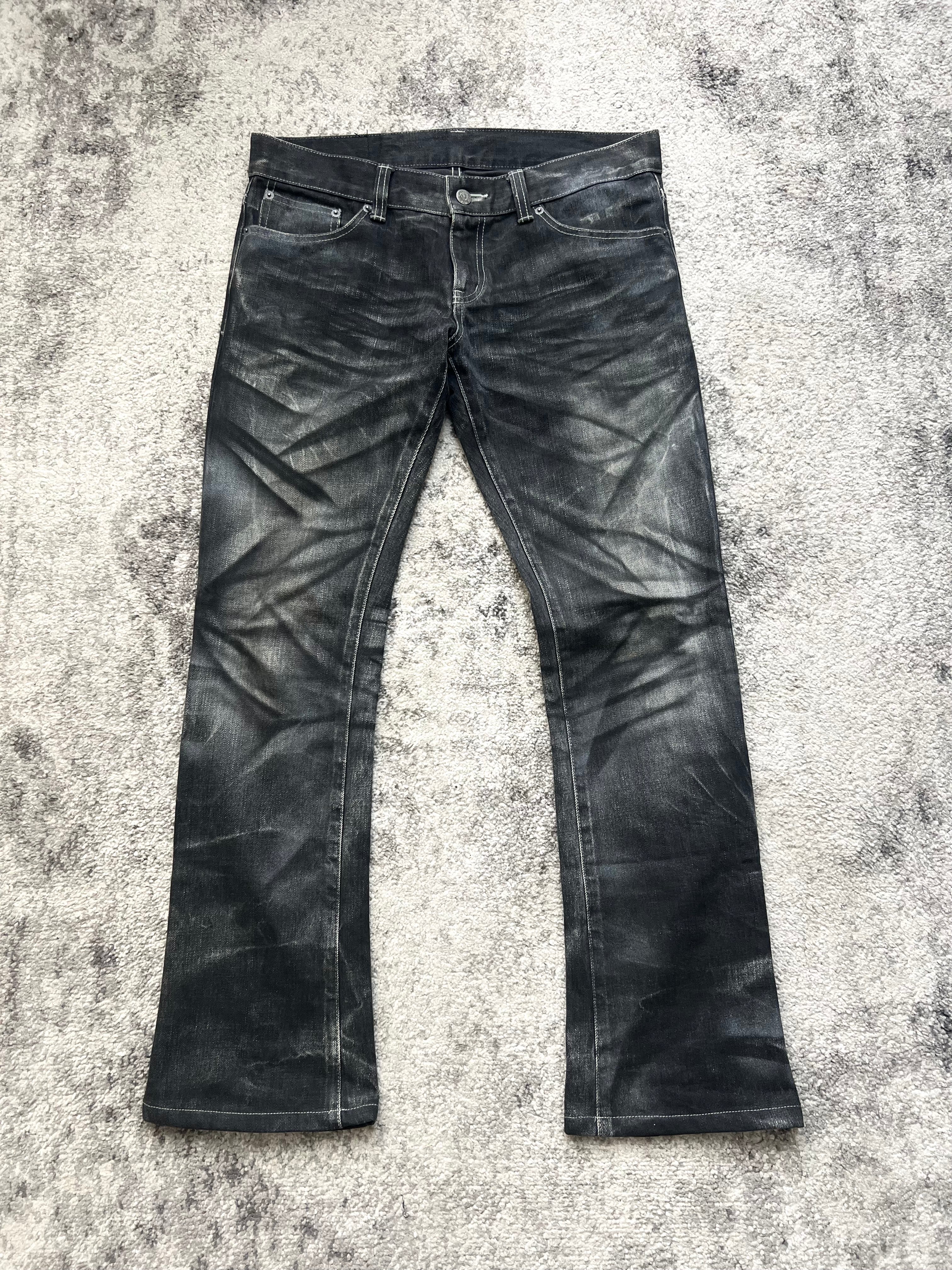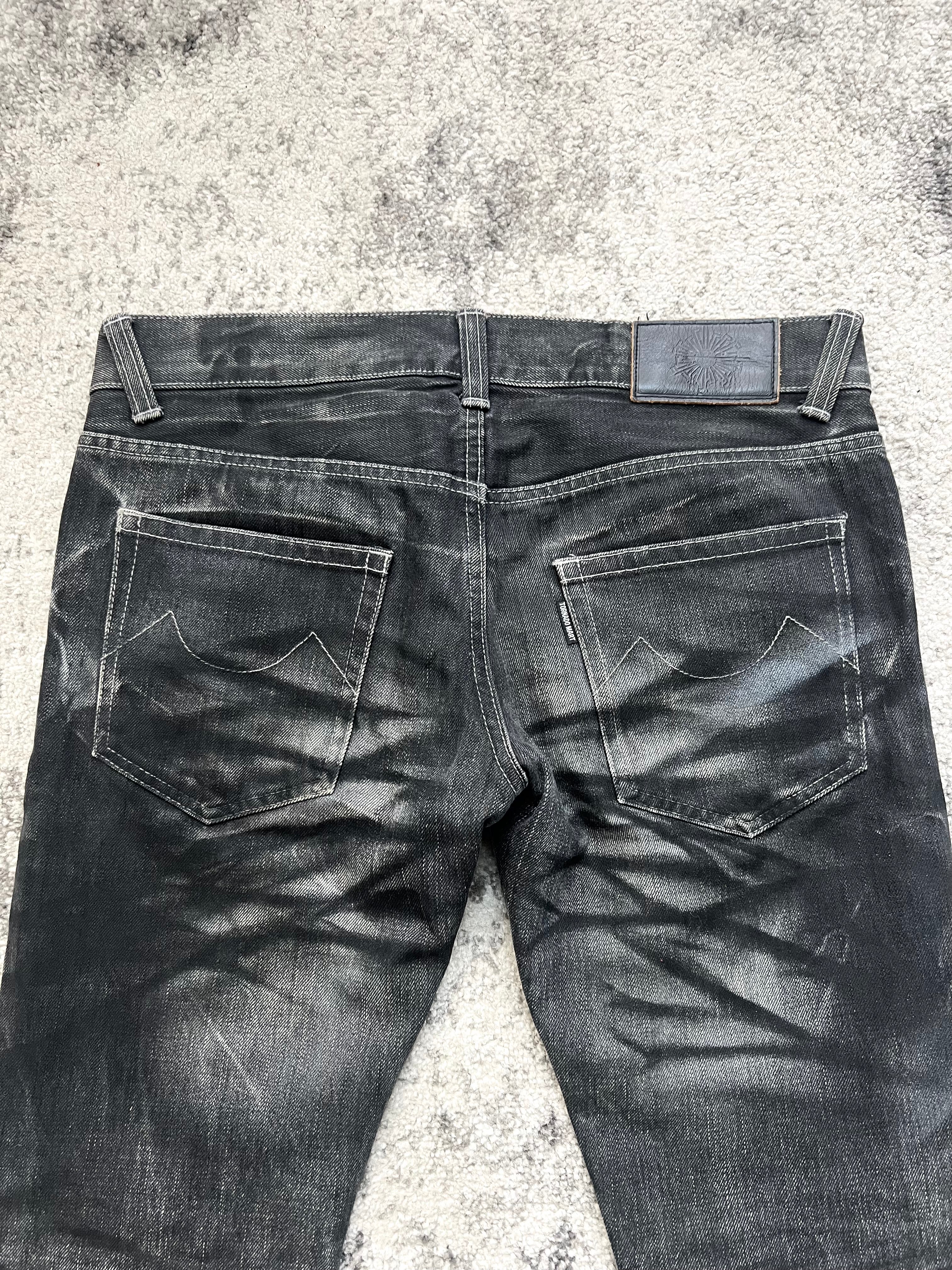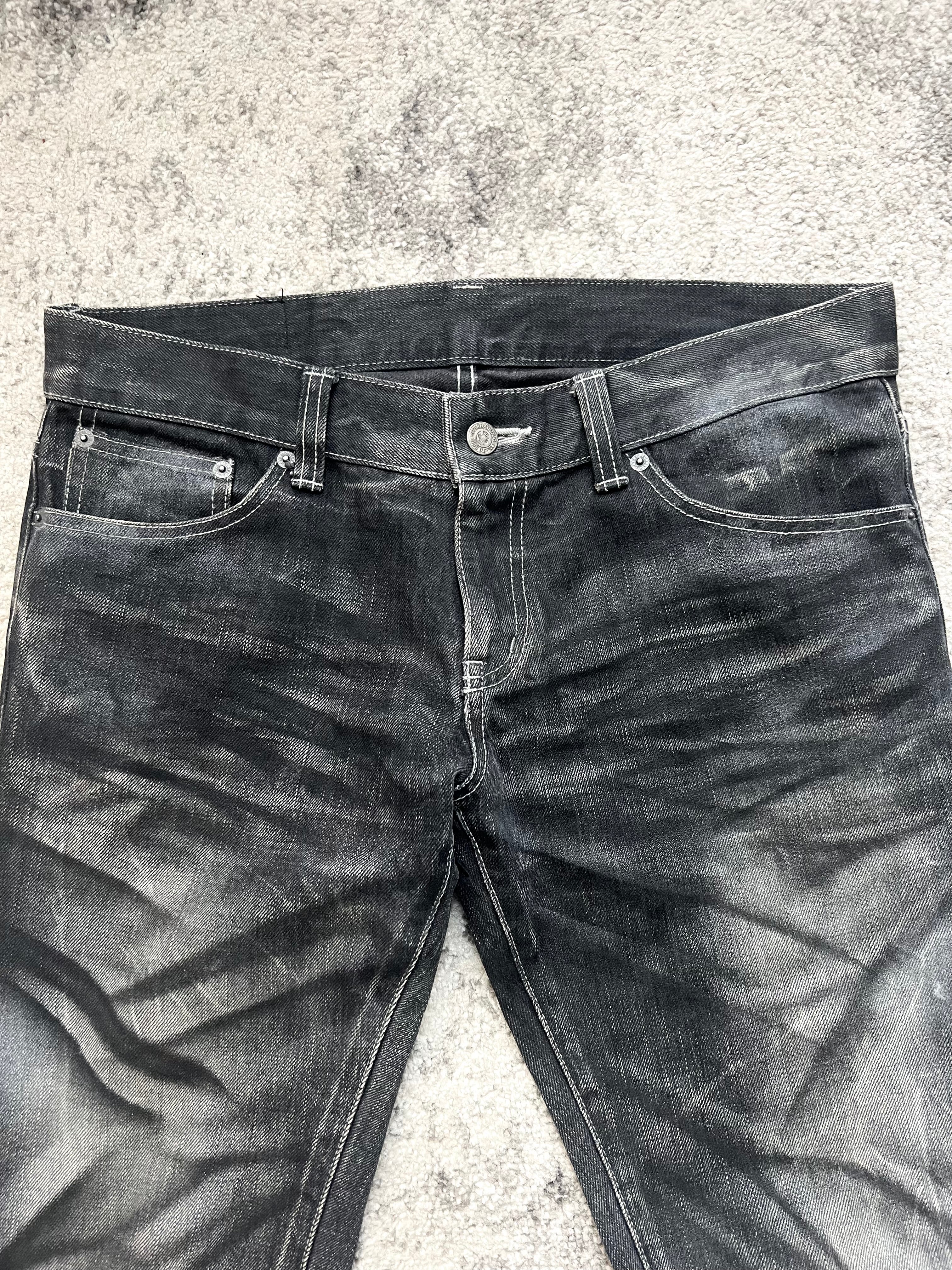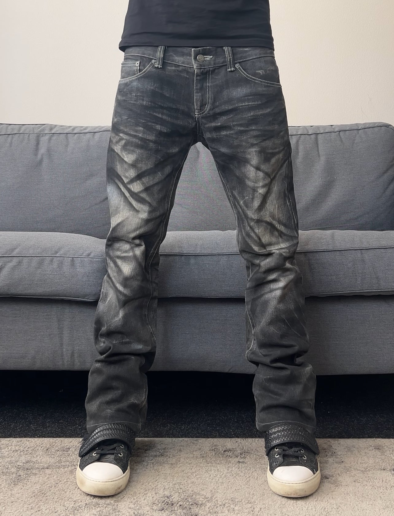 Low rise with a slim-straight leg and signature Japanese stack. Tailored rocker silhouette — think Shibuya 2007, all edge, no hesitation.