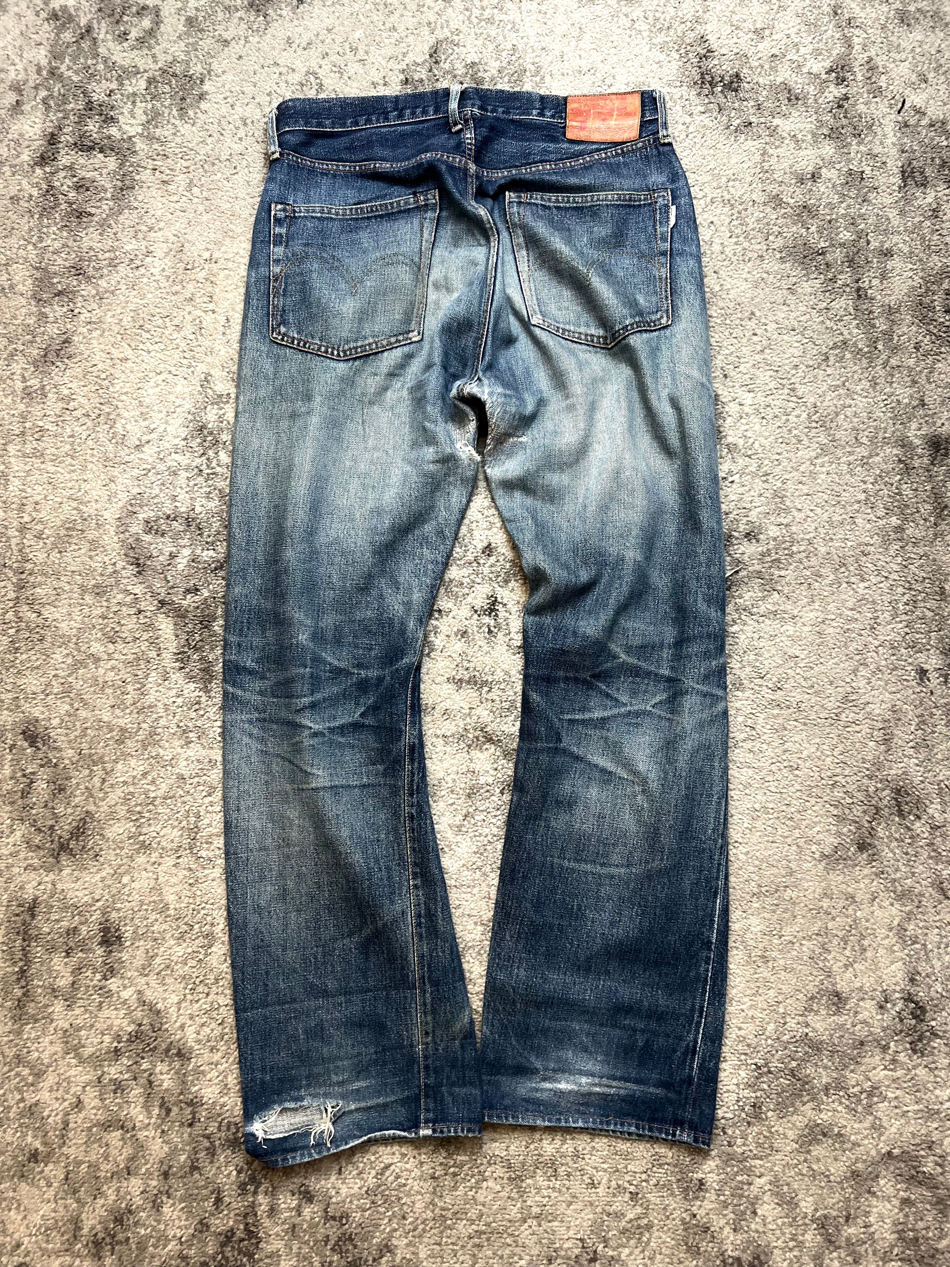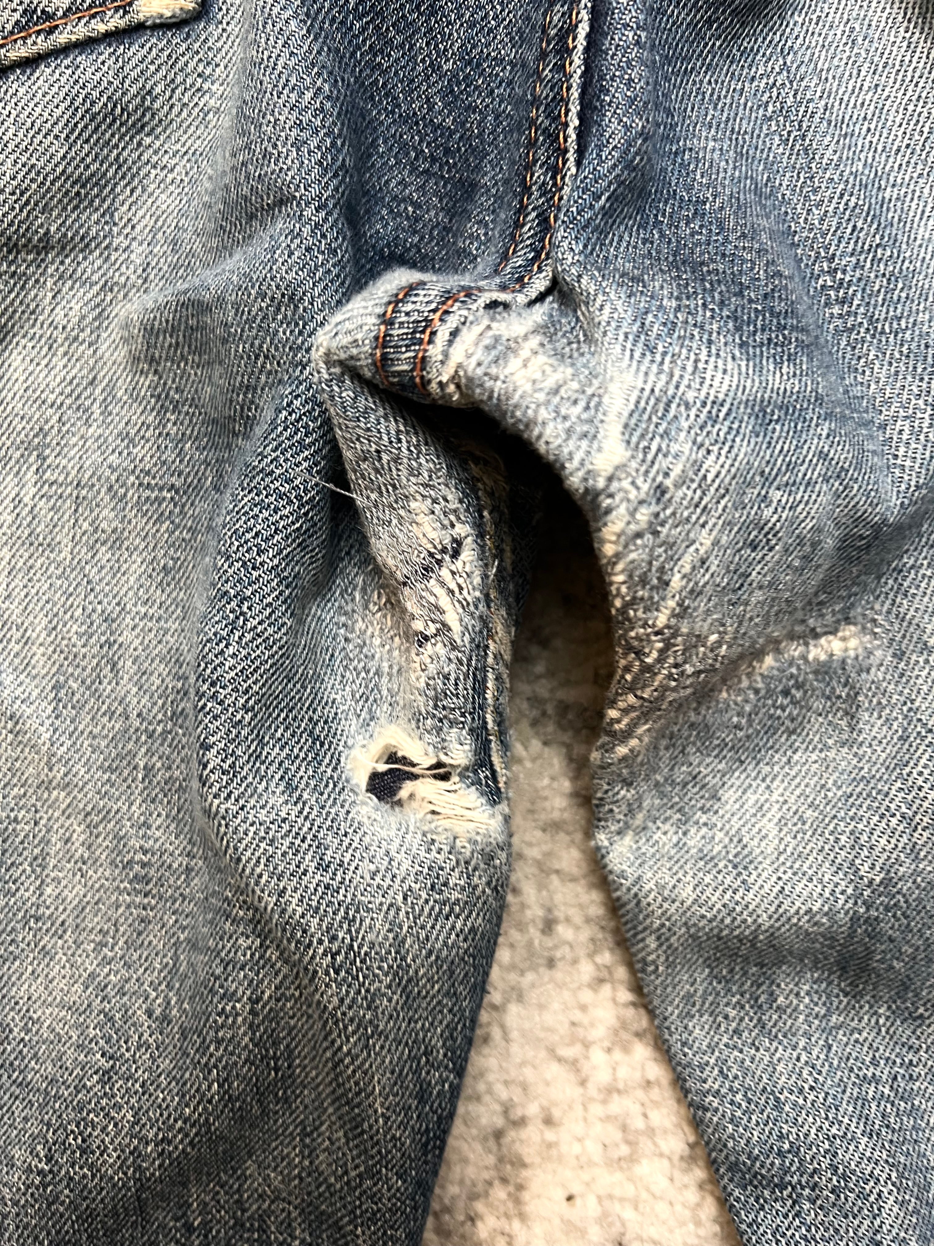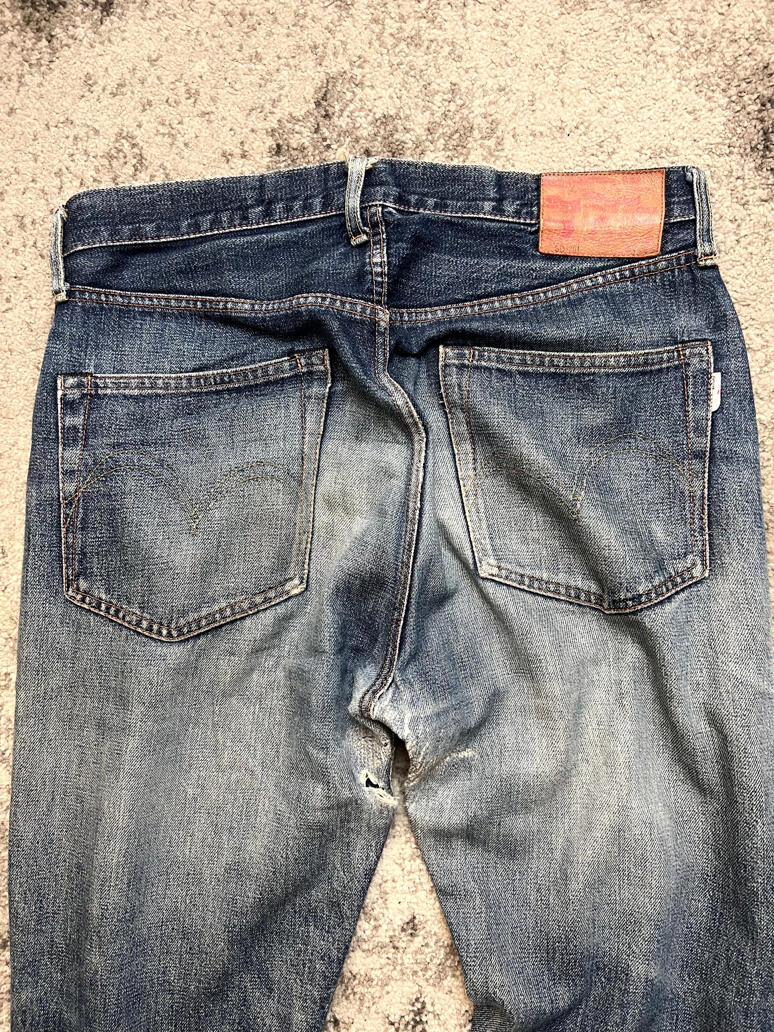 Straight cut with classic mid-rise. Artful whiskers and abrasion. Iconic rear fade lines and patinaed texture. Designed to be worn, not displayed.