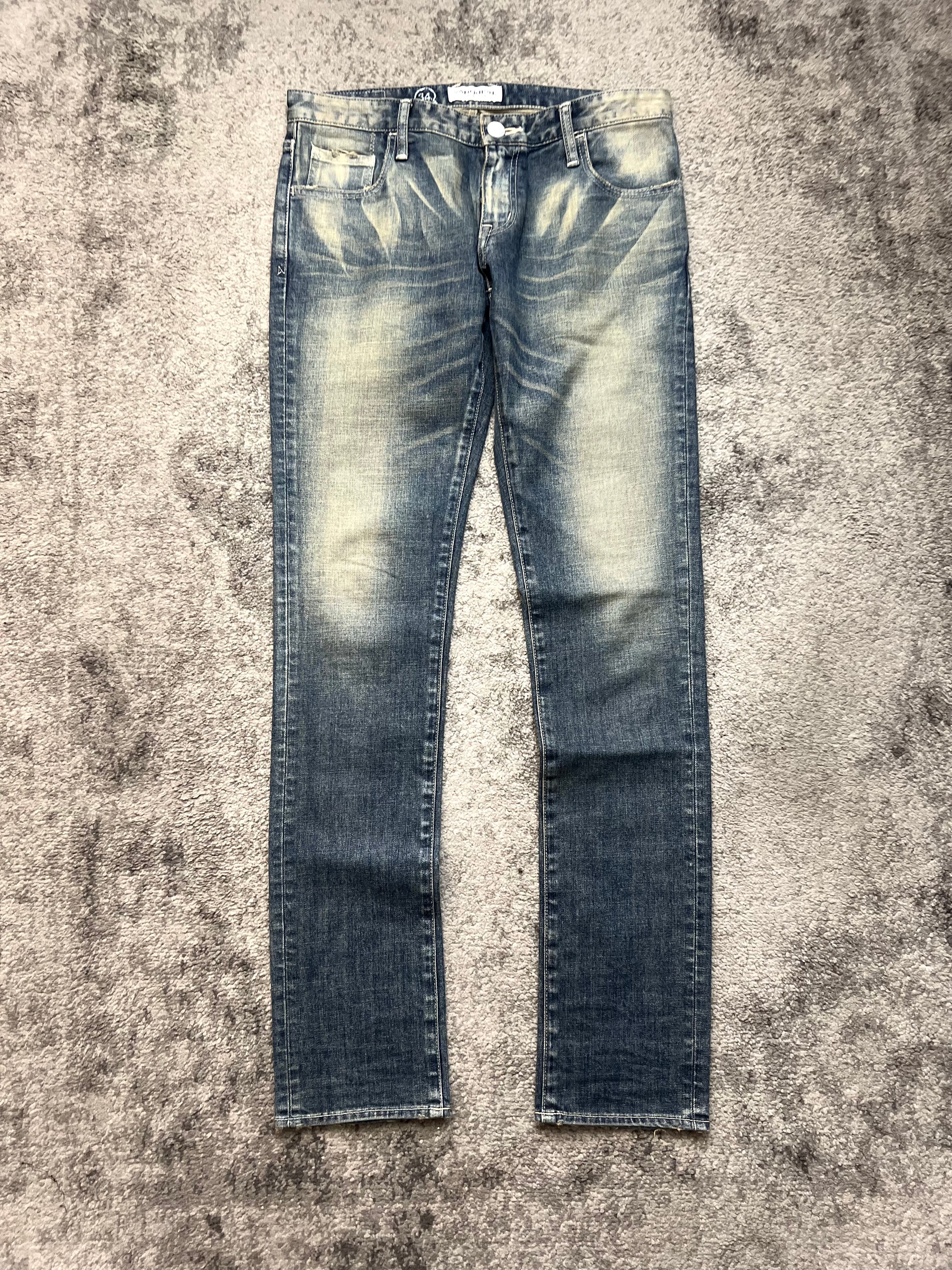Japanese street DNA in denim form – this is not subtle. A faded blue wash with razor-precise whiskering, slim cut that frames the body like armor, and back-pocket arrows stitched like warning signs. Vanquish pushes denim into the realm of statement – equal parts rebellion and refinement.