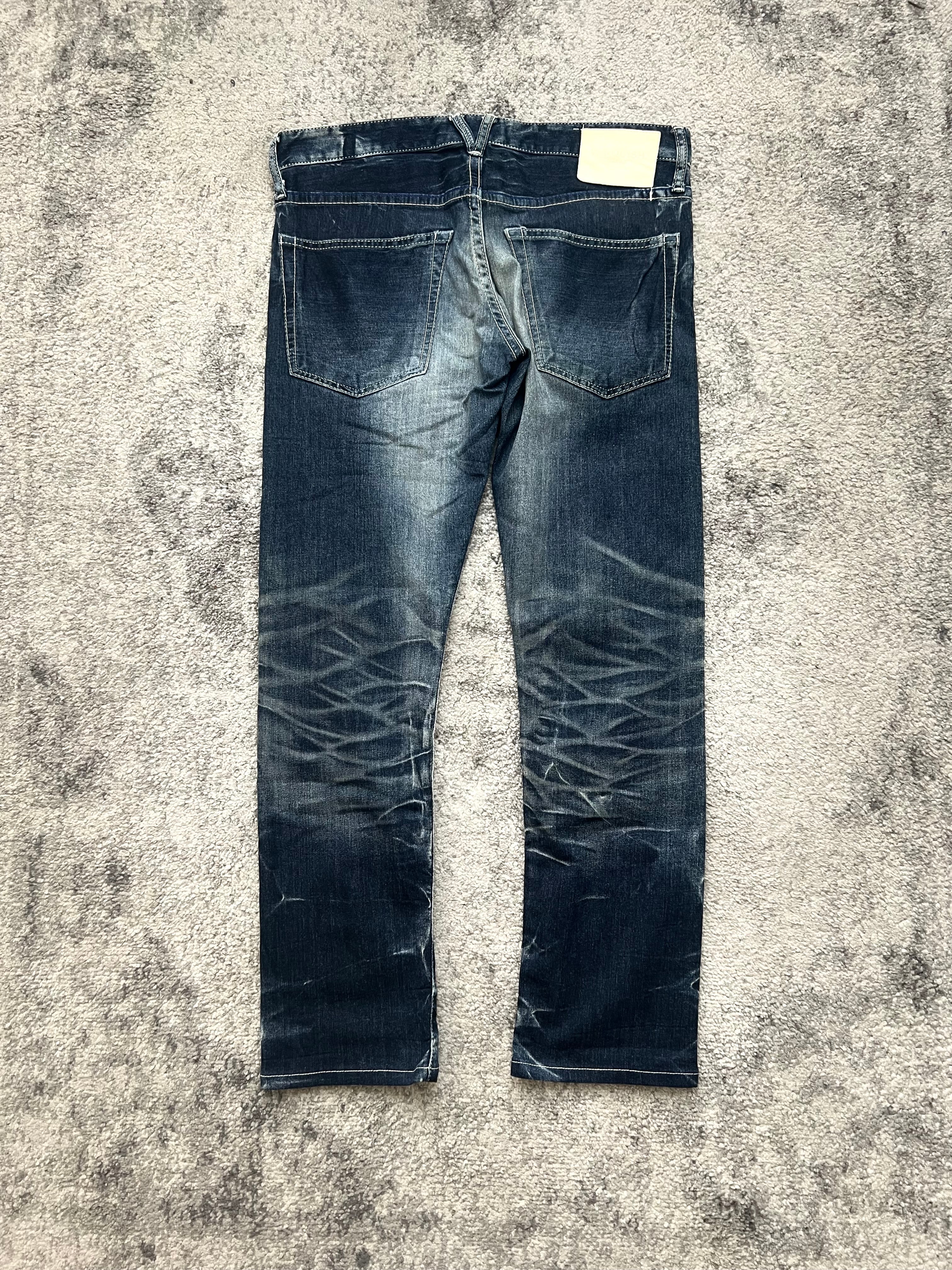 Pre-owned with care. Light abrasions, no damage. Intentional fading and whiskering throughout. Authentic aging — never artificial.