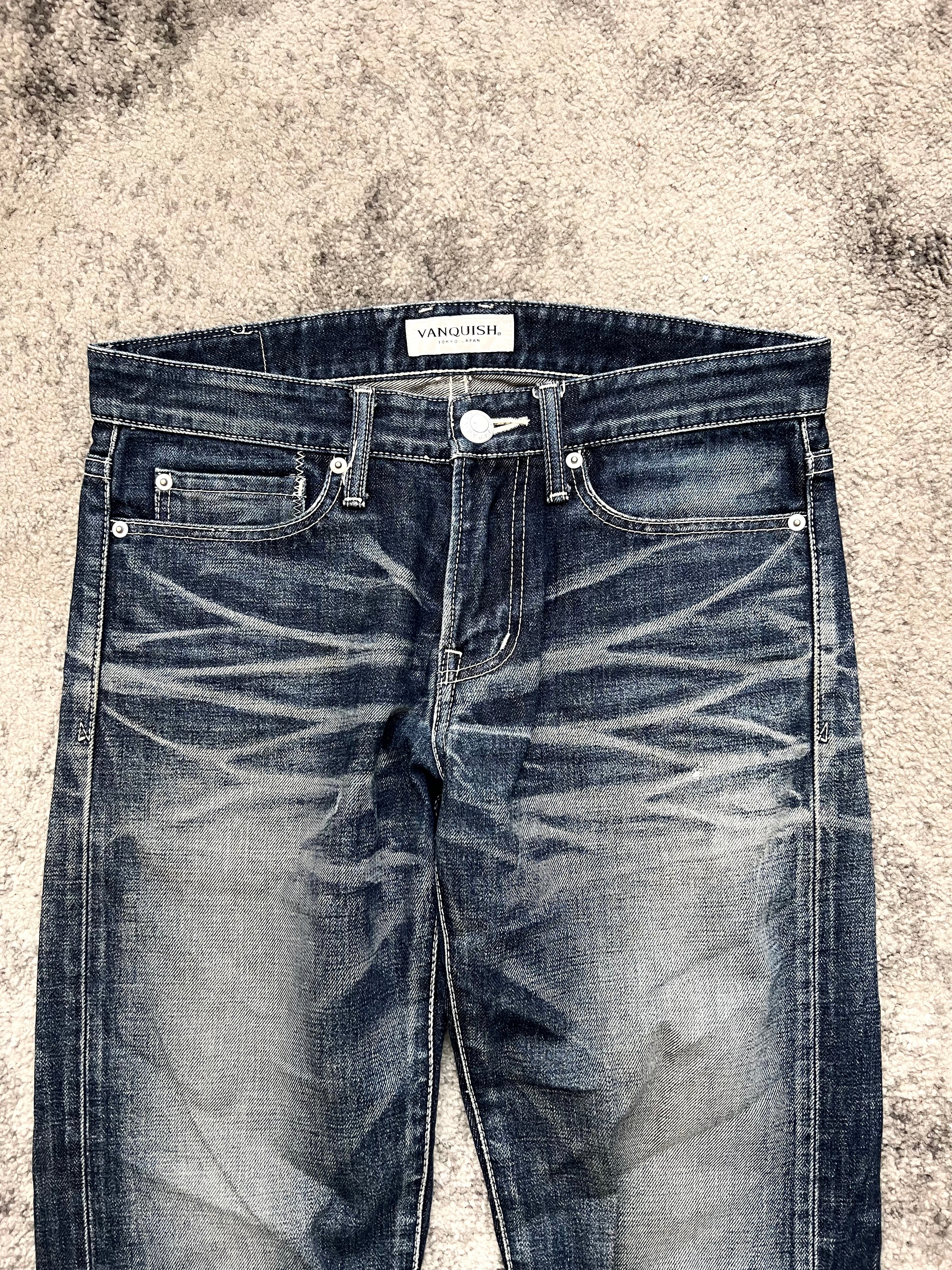 Straight-slim fit with a classic rise. The rear pocket “V” stitch detail is pure VANQUISH DNA — subtle yet unmistakable. Front honeycombs and back stacking give it a perfect worn-in archive look.