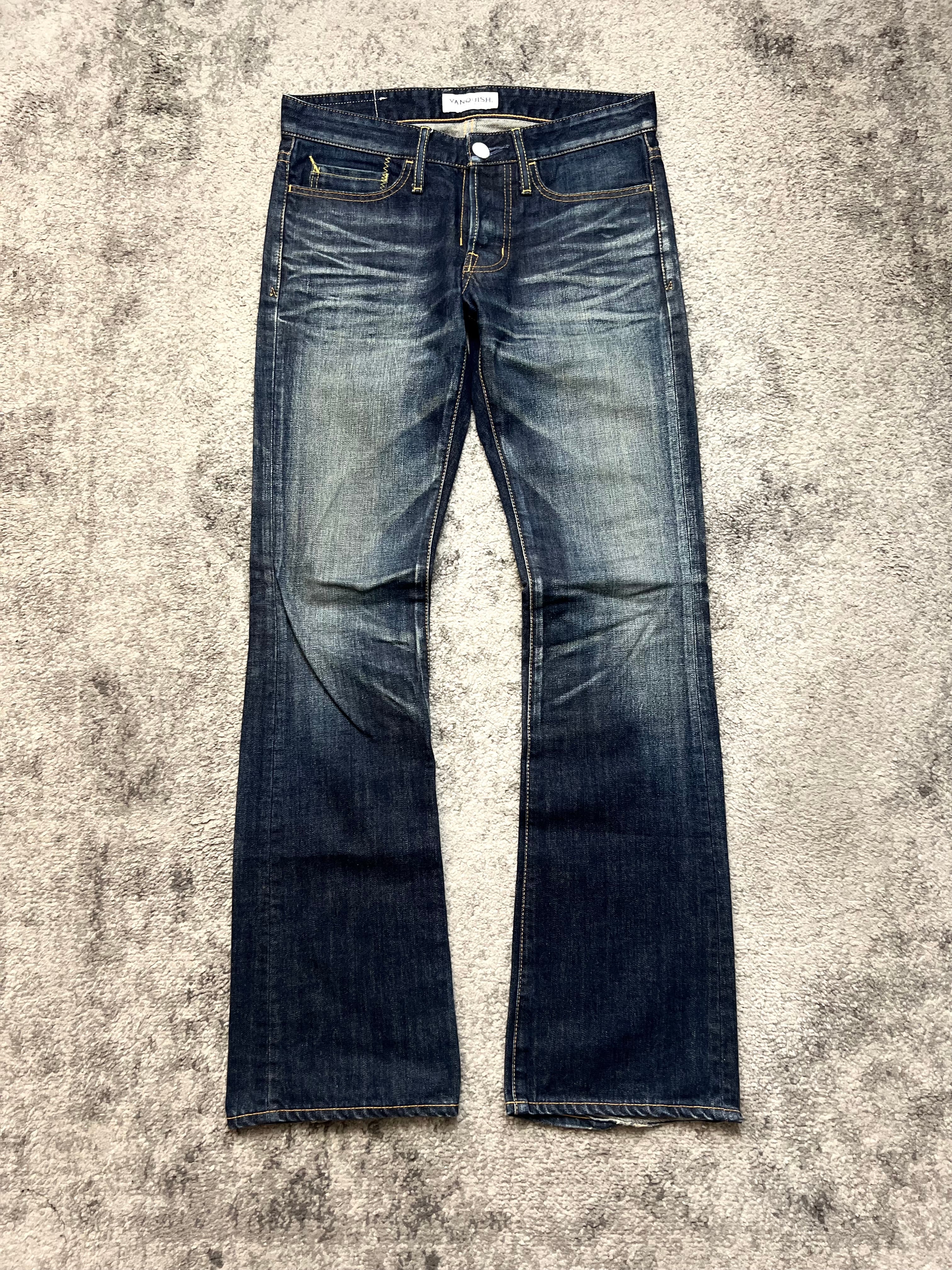 Rare VANQUISH jeans in size M, cut in a subtle flare with a lived-in wash that channels Tokyo underground cool. Crafted from premium Japanese denim, these jeans balance durability with a soft, broken-in handfeel.