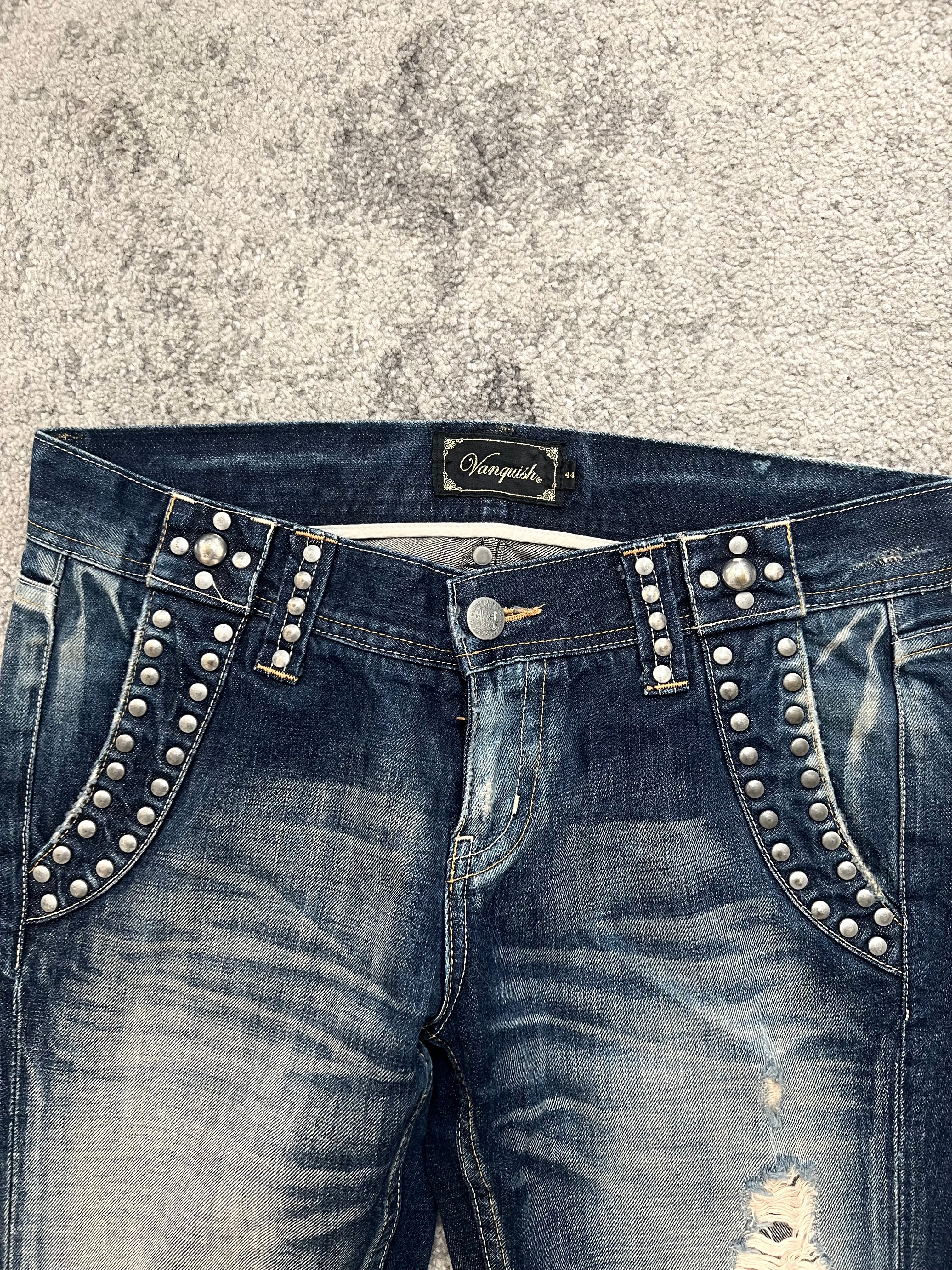 Vanquish “Fallen Angels” Studded Denim – glam chaos carved in indigo.