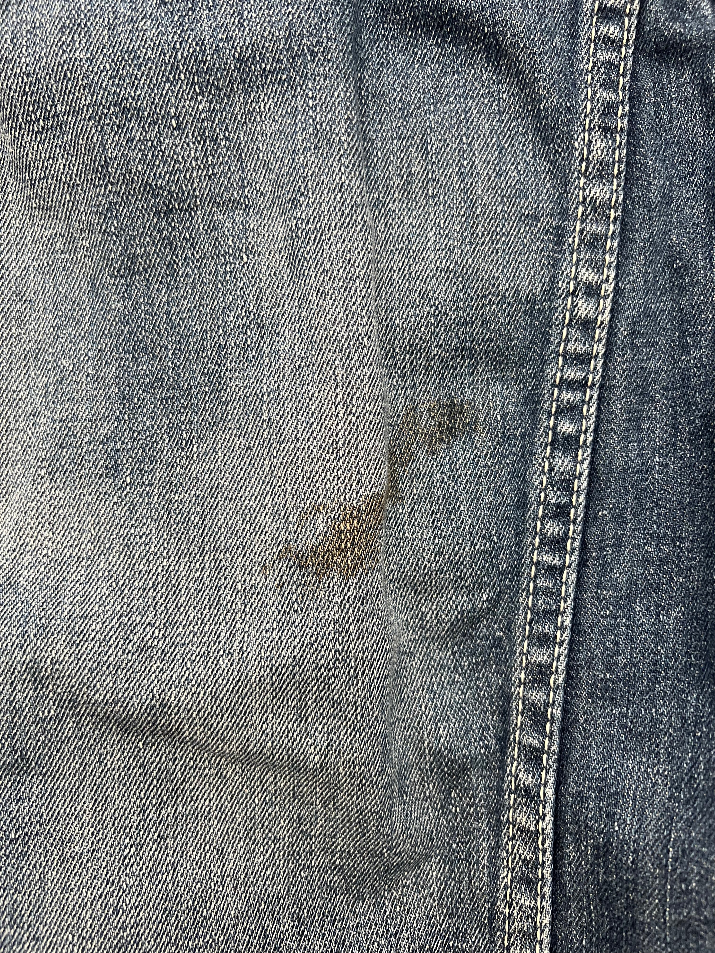 Pre-owned, with poetic wear. Light distressing and scattered fading — real age, not artificial. Minor marks, but no damage. Authentically worn.