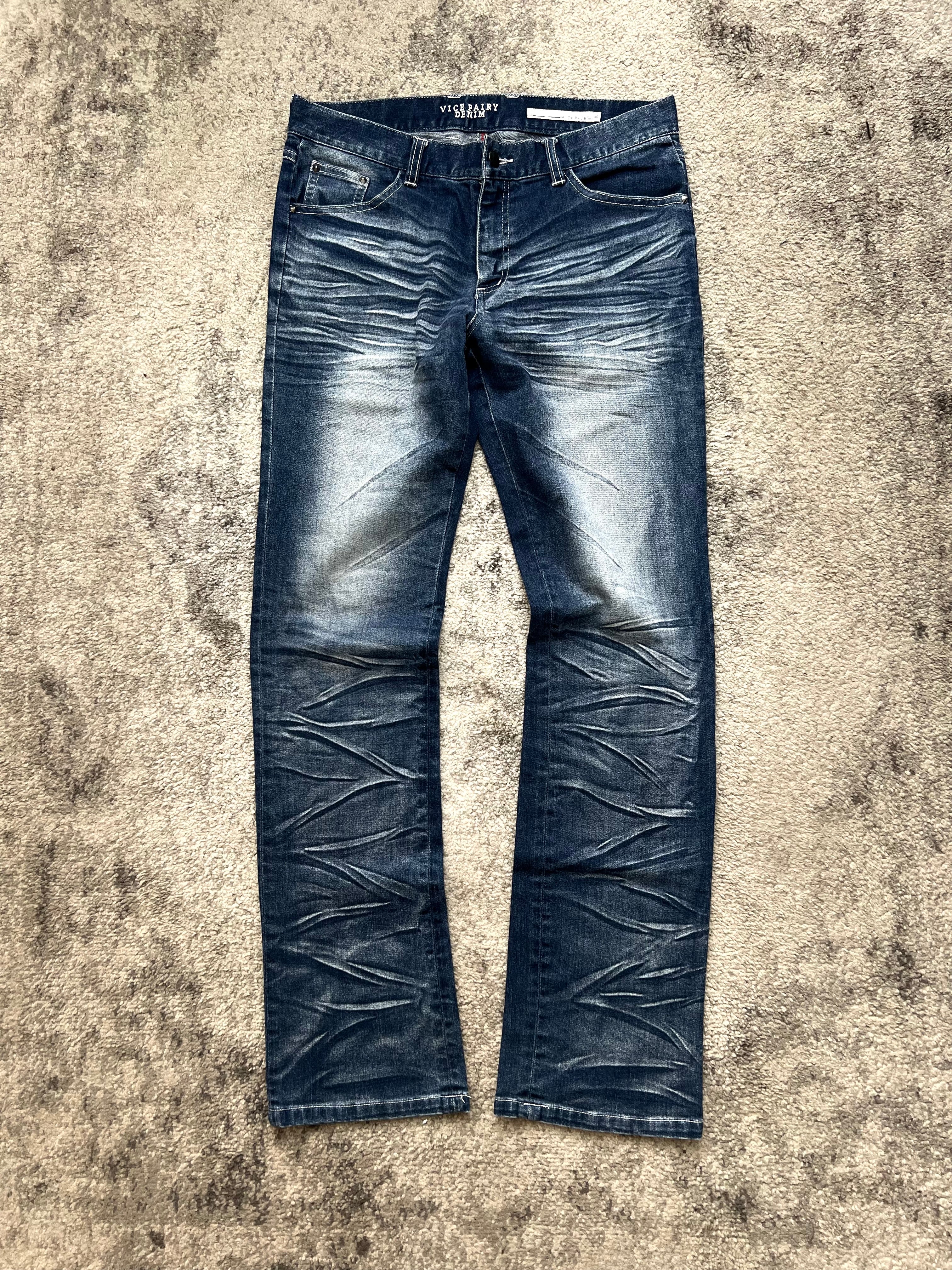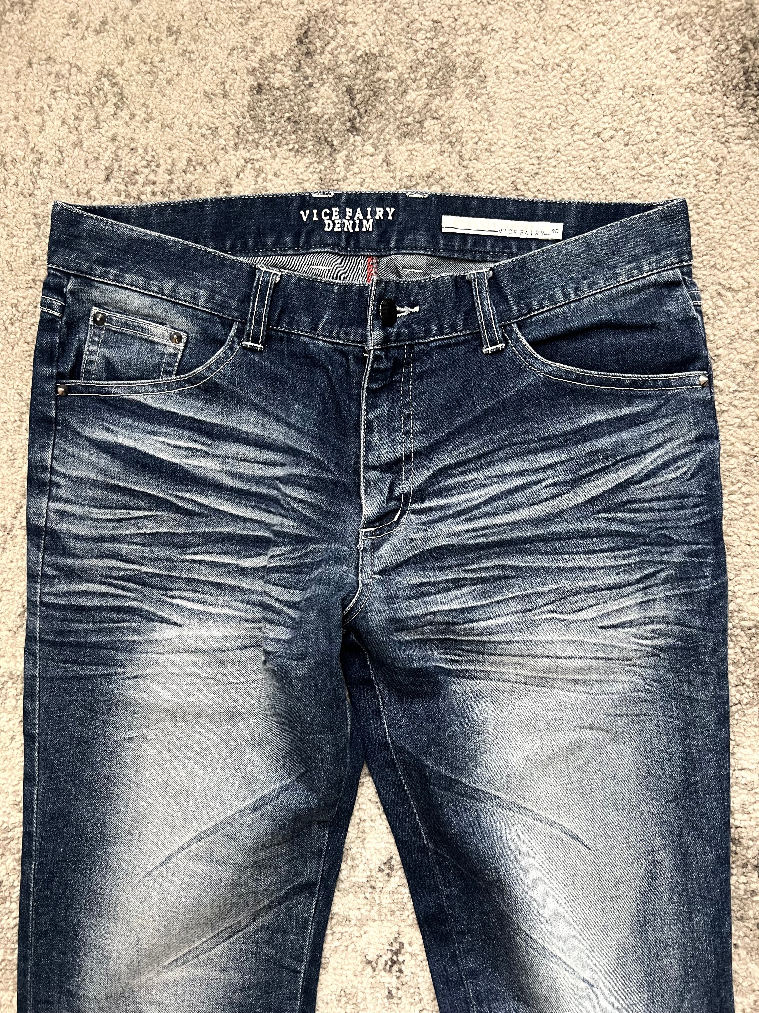Sleek straight leg with a regular rise. The fit is clean but the details scream archive Japan. Heavy fade map front and back, with that signature Vice Fairy edge. Feels like something from a lost era of Harajuku back alleys.