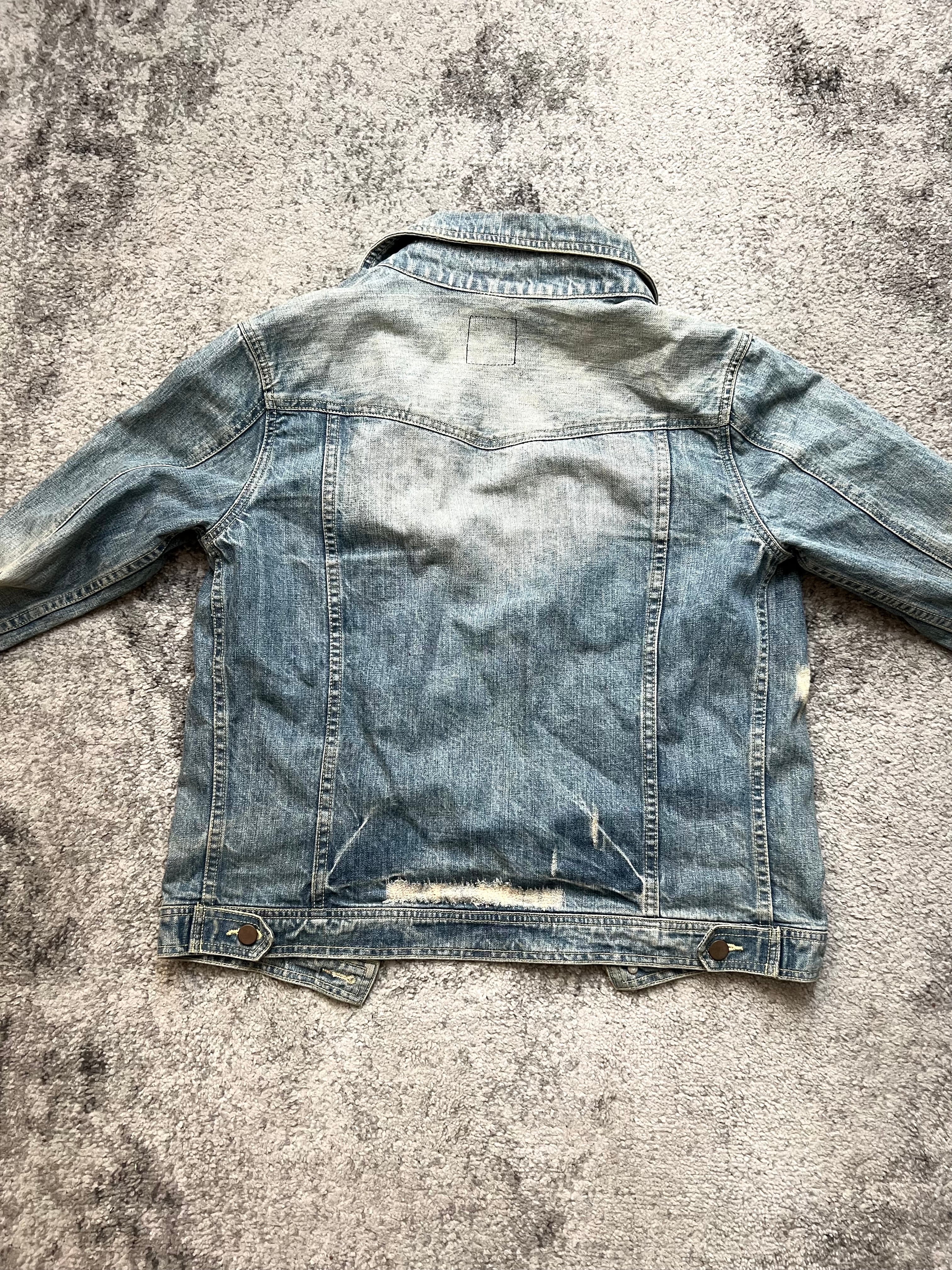Slightly cropped, boxy fit. Button-down front with faded brass hardware. Signature distressing on the left sleeve. Think reimagined Levi’s Type III, filtered through Shibuya grit.