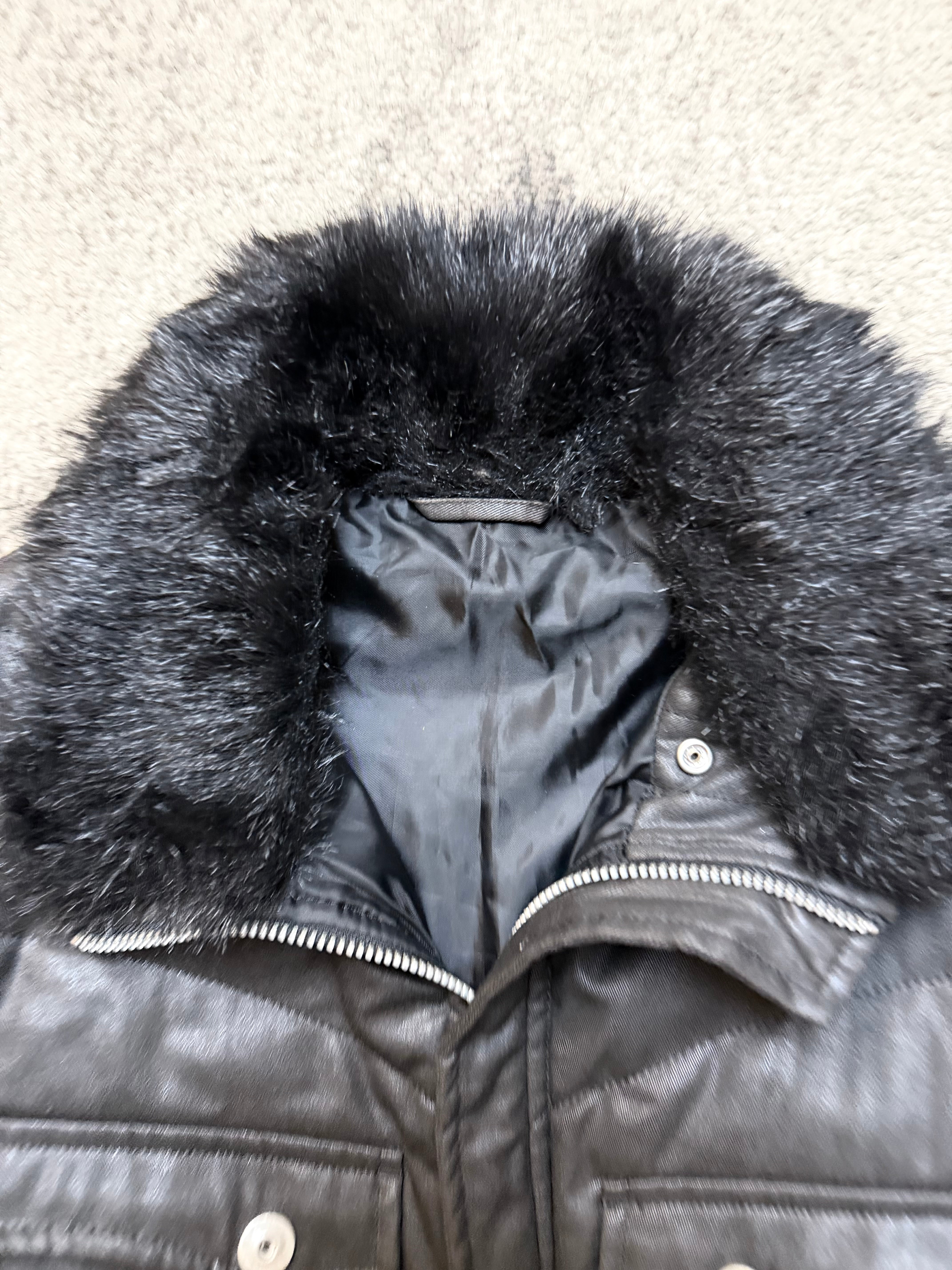 Pre-loved but well kept. Light creasing on the sleeves and body, no major flaws. Fur collar still full, soft, and clean.