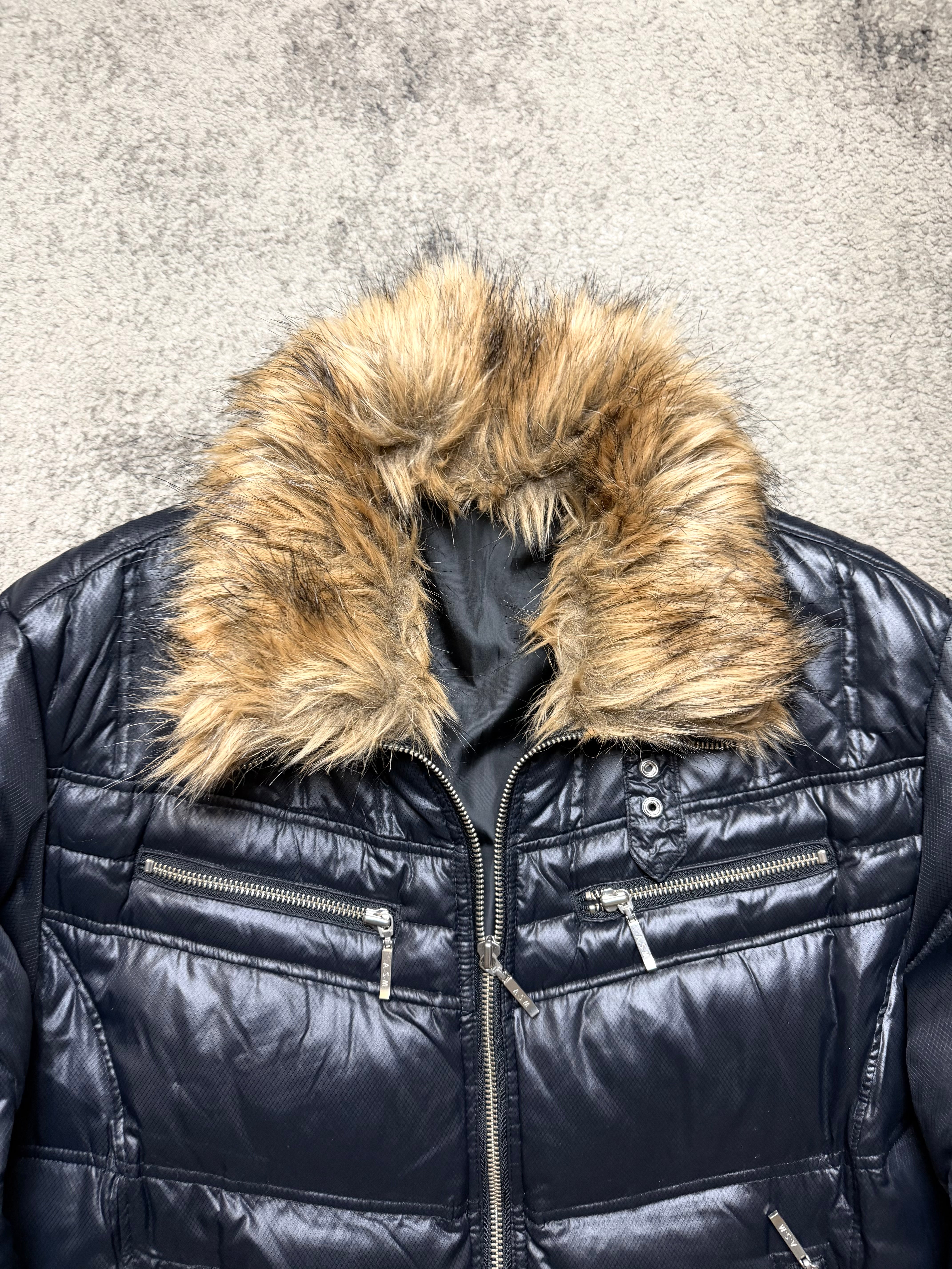 A moody winter staple pulled straight from early-2000s Japanese archive culture. ASM balances high-shine black with plush fur texture, creating a jacket that feels protective, intimate, and slightly dramatic. This is the kind of piece that lives between Number (N)ine melancholy and ifsixwasnine edge.