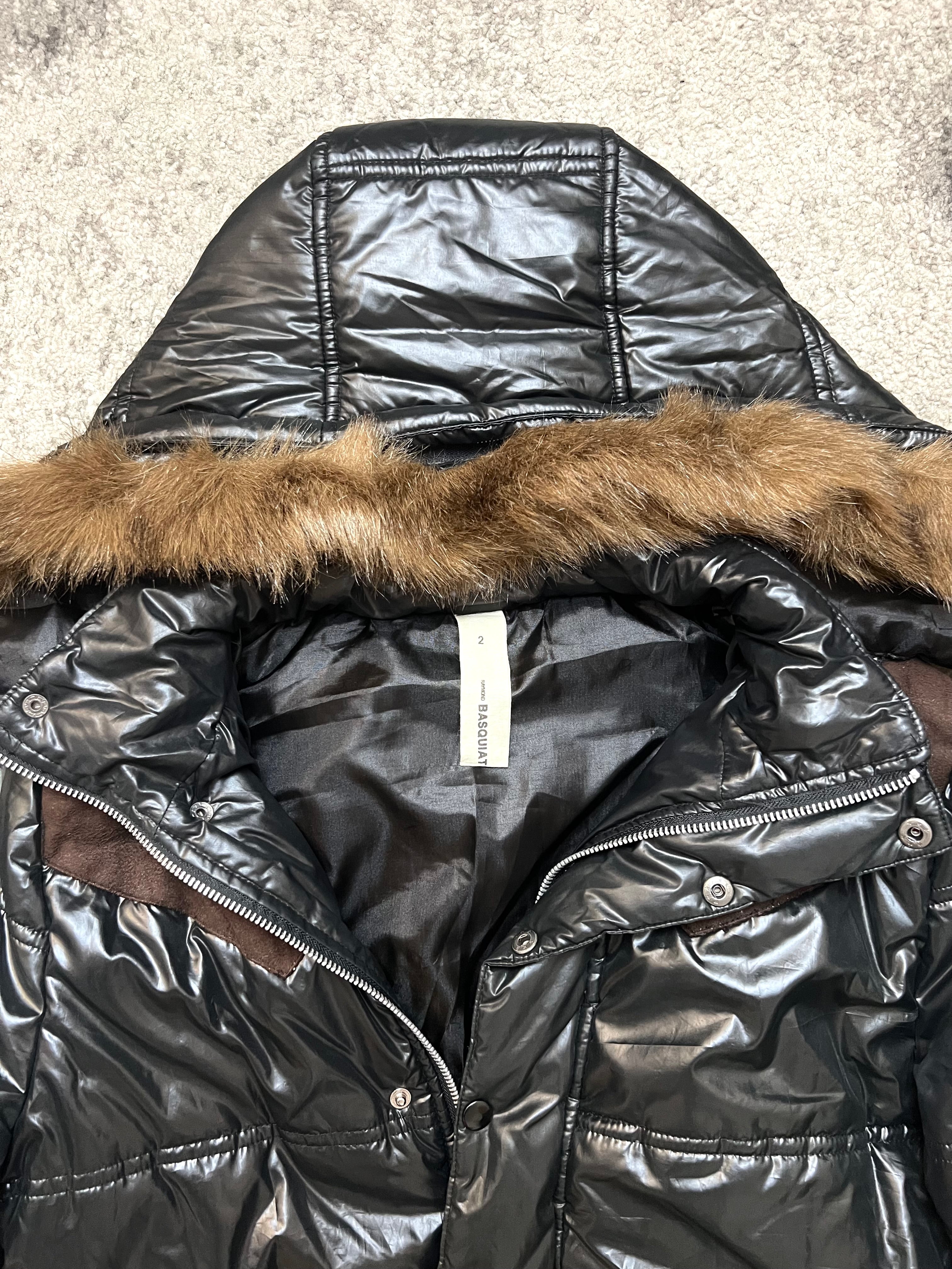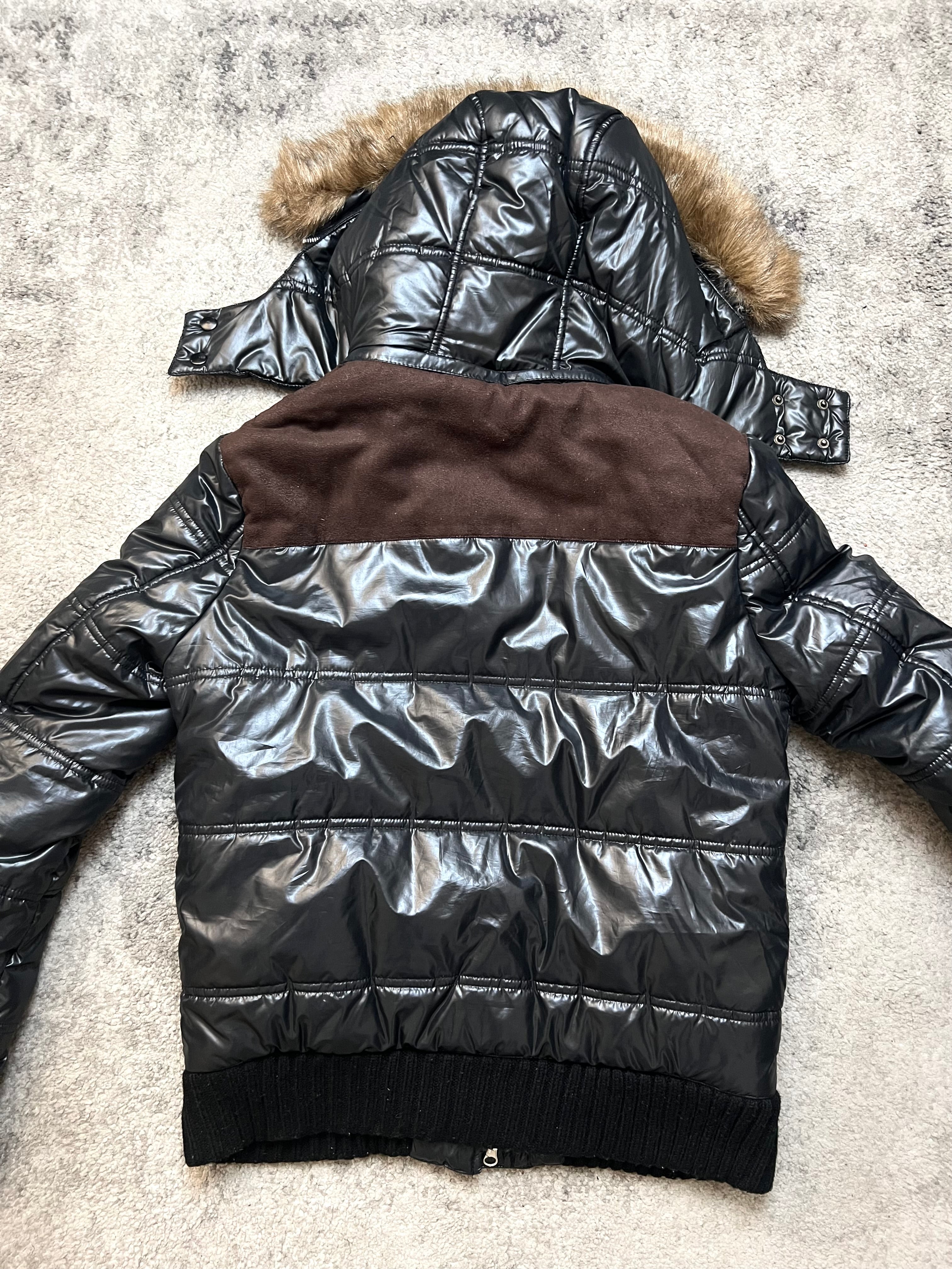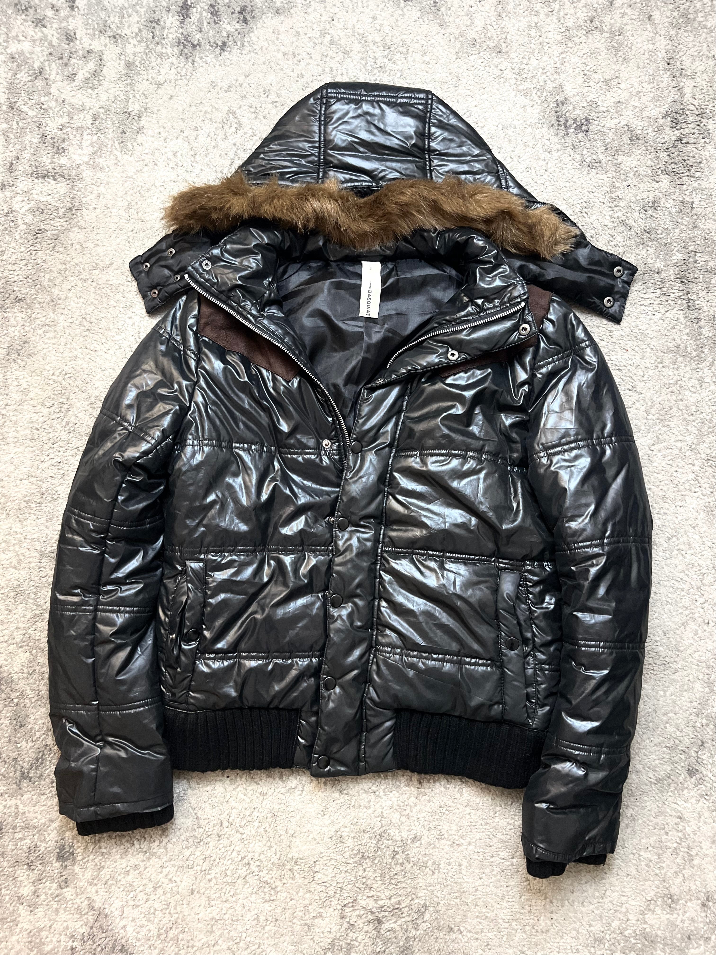 From BASQUIAT Japan, this piece channels that unmistakable early-2000s Tokyo street aesthetic — bold, sleek, and full of texture. Crafted from glossy black nylon with a deep brown suede shoulder panel, the jacket strikes a perfect balance between luxury and edge. The detachable faux fur hood adds a statement touch while keeping the silhouette versatile.