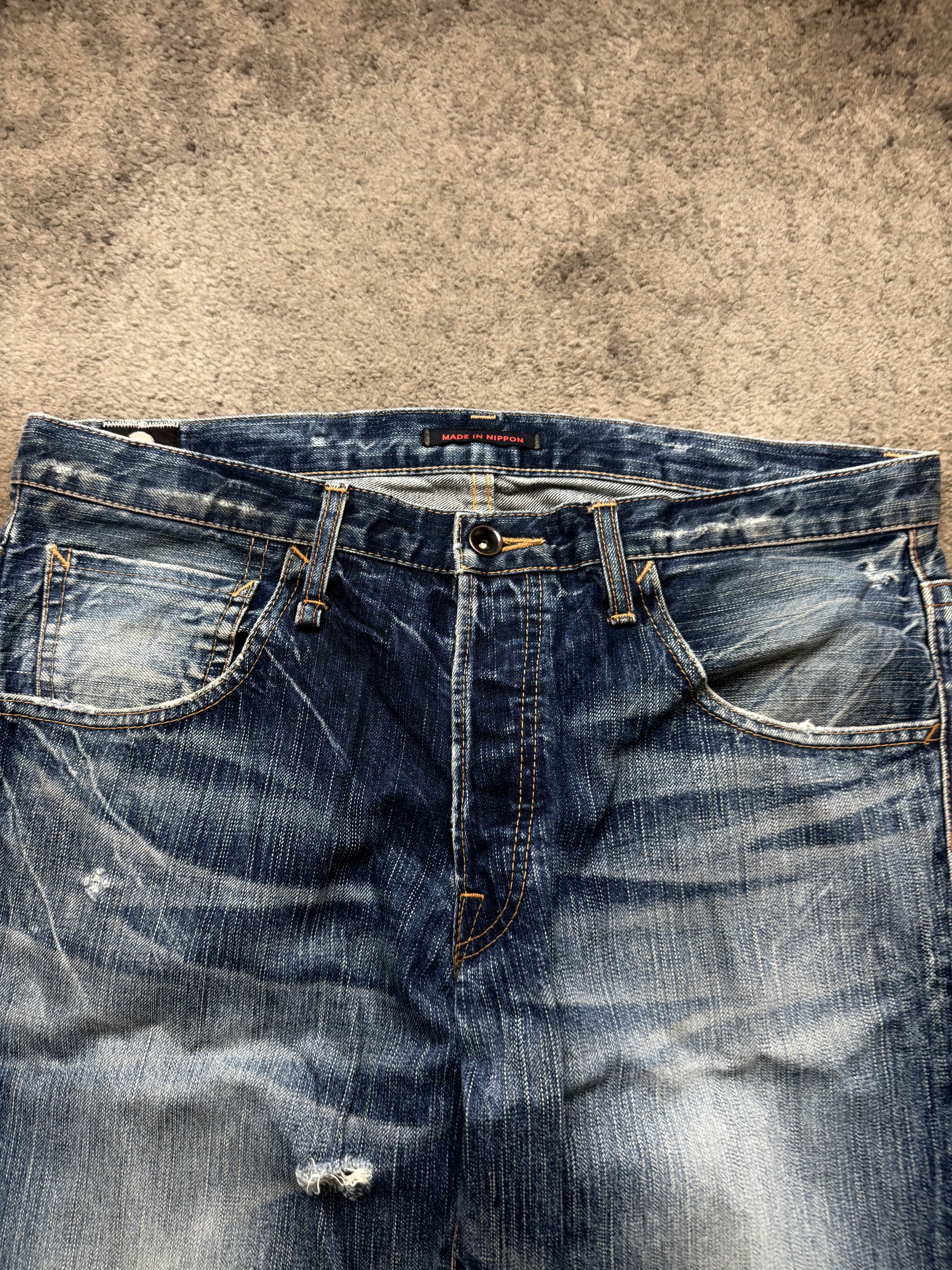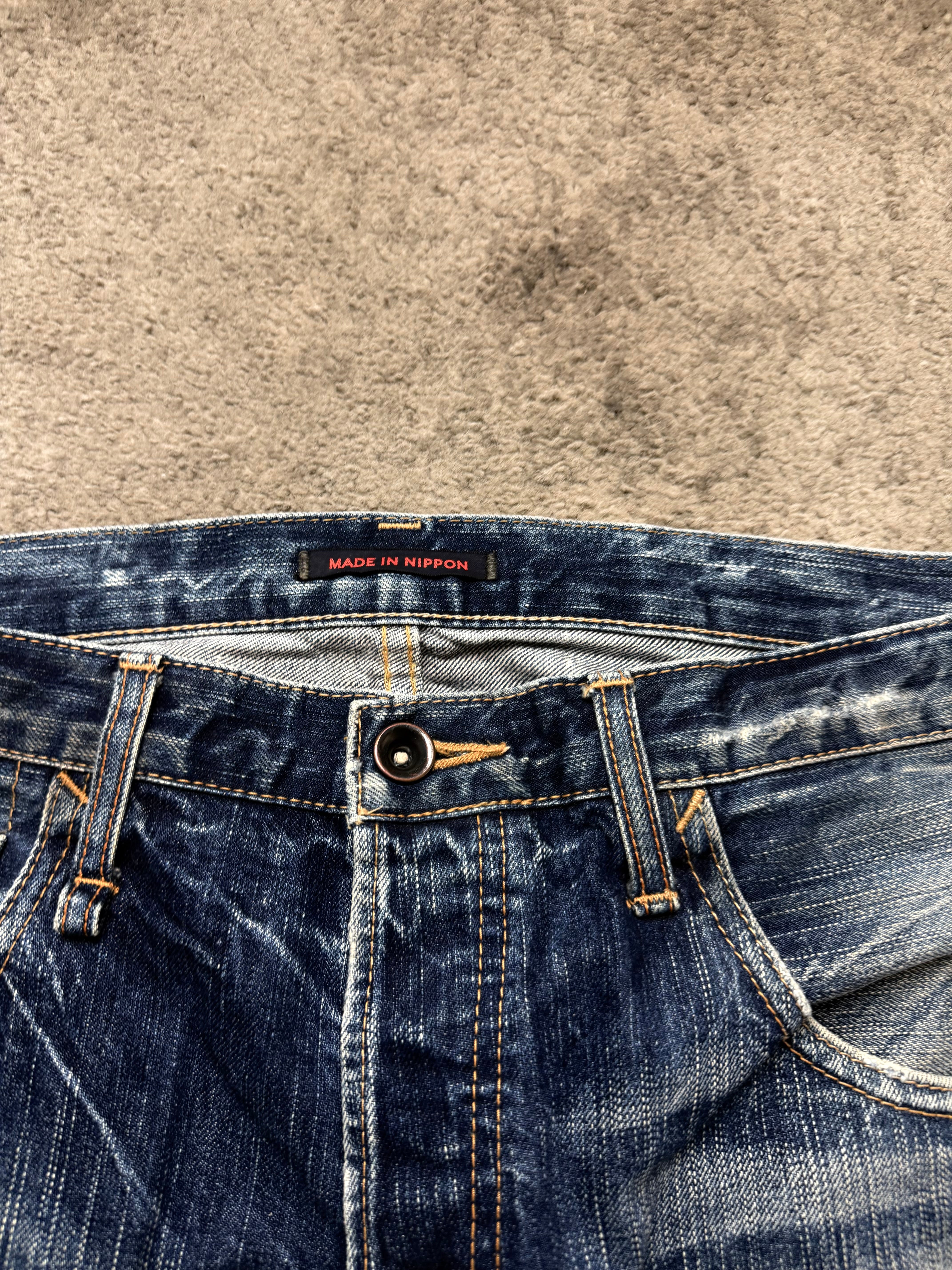 Material: Premium Japanese cotton denim. Solid mid-weight fabric with a softened, broken-in hand feel from real wear.