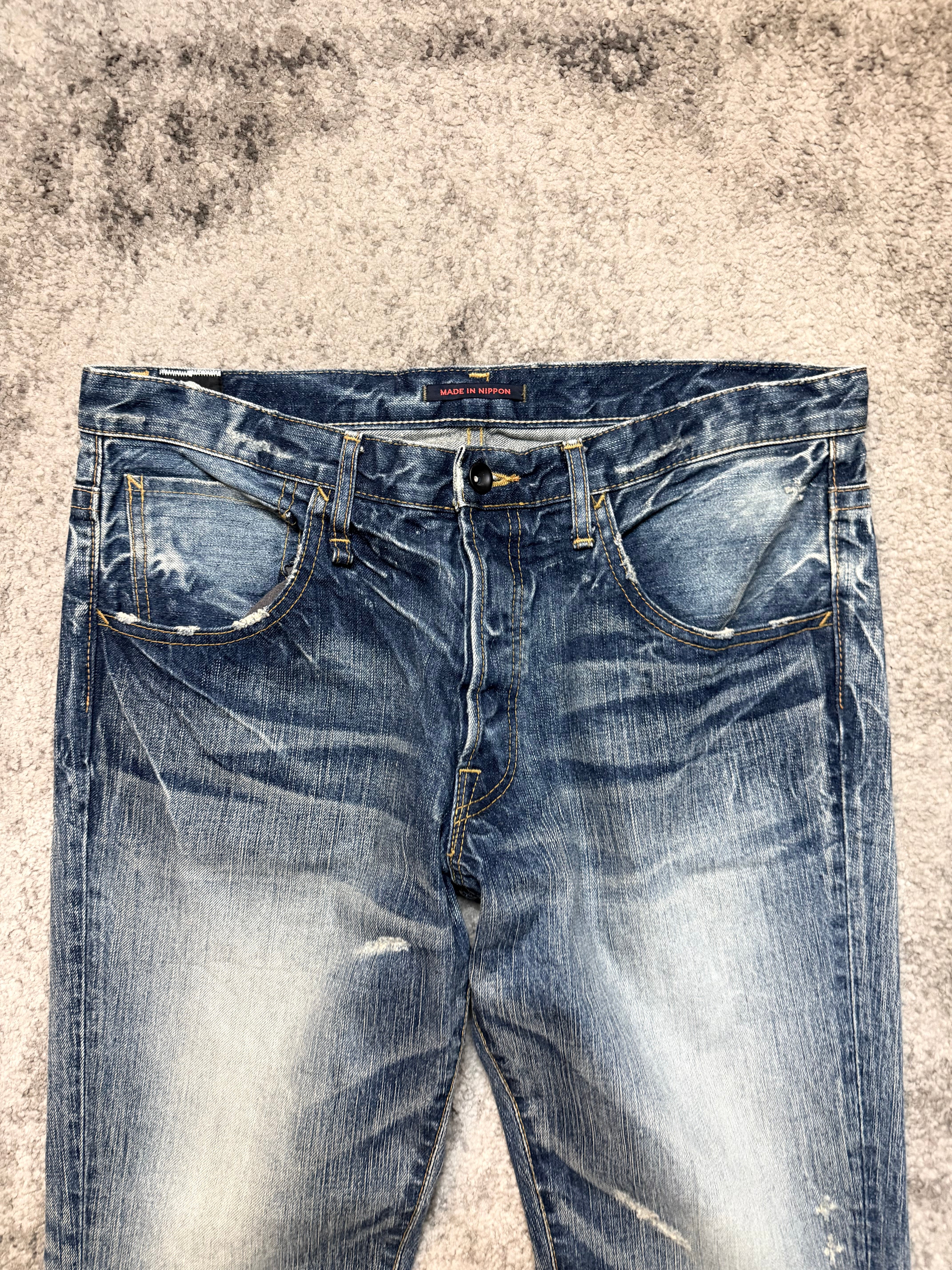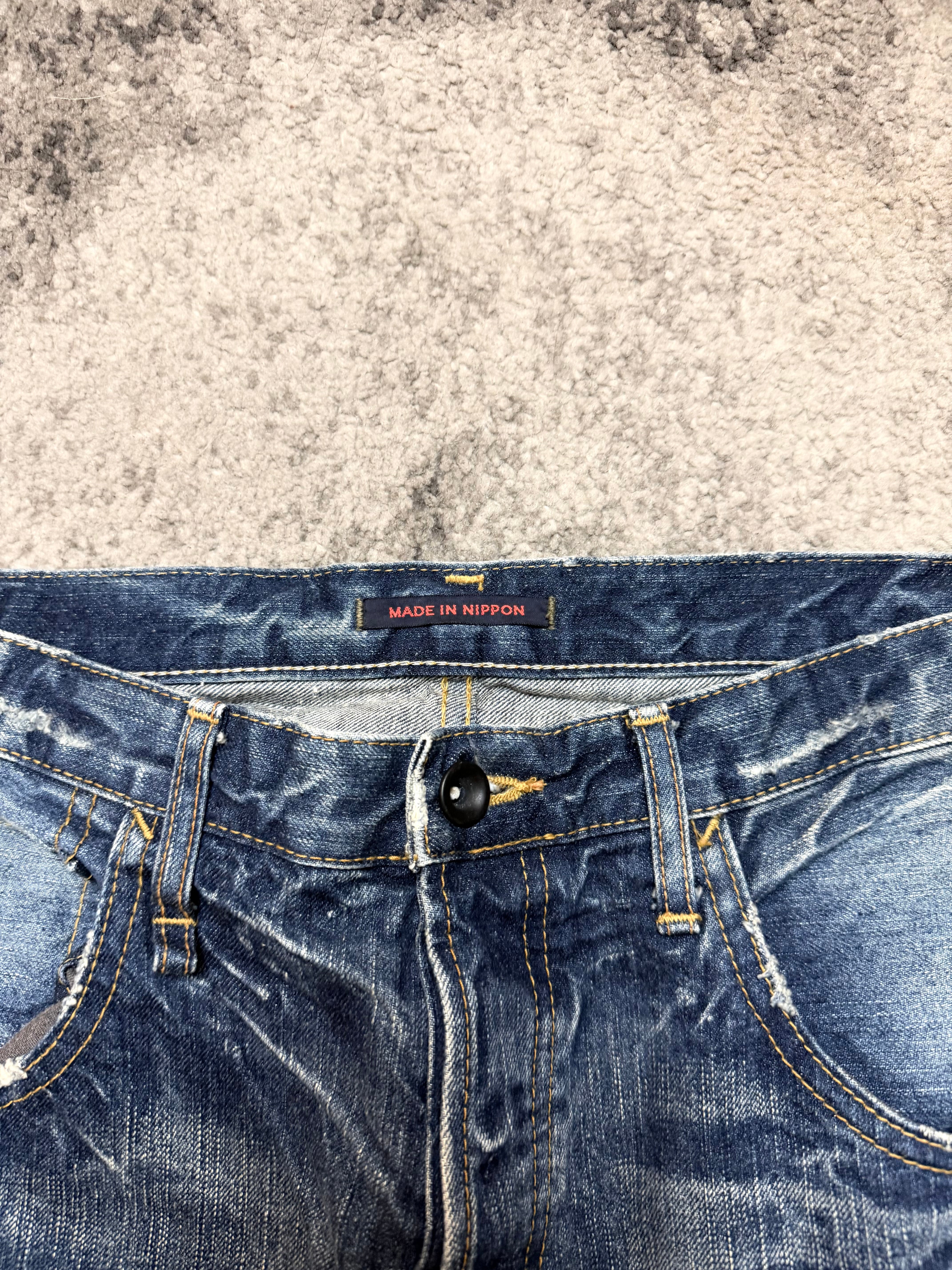 The kind of denim you don’t find twice — experimental wash, Japanese craftsmanship, and a silhouette that instantly reads underground archive. A piece for collectors and anyone chasing that emotional, imperfect, beautifully lived-in aesthetic.