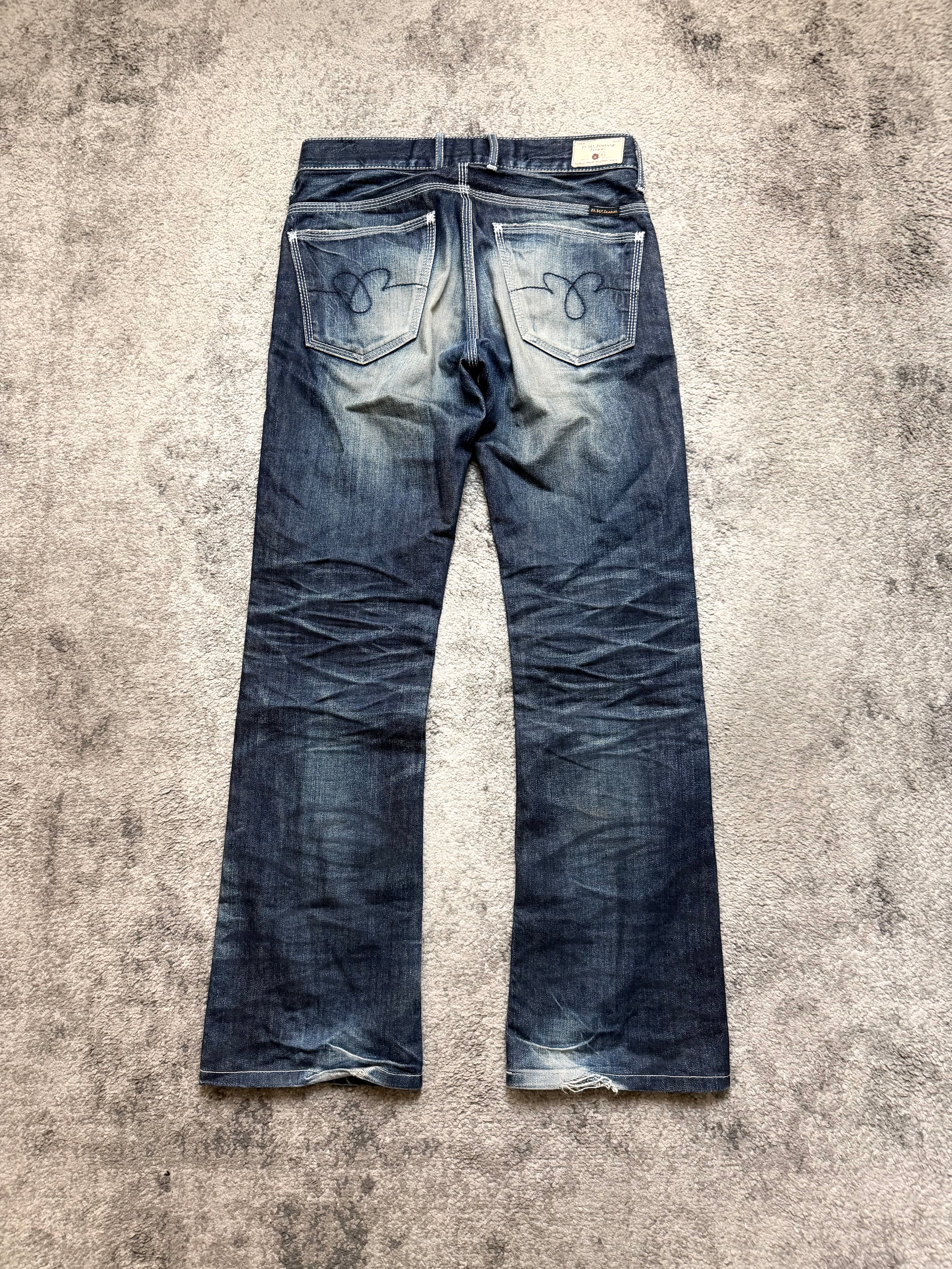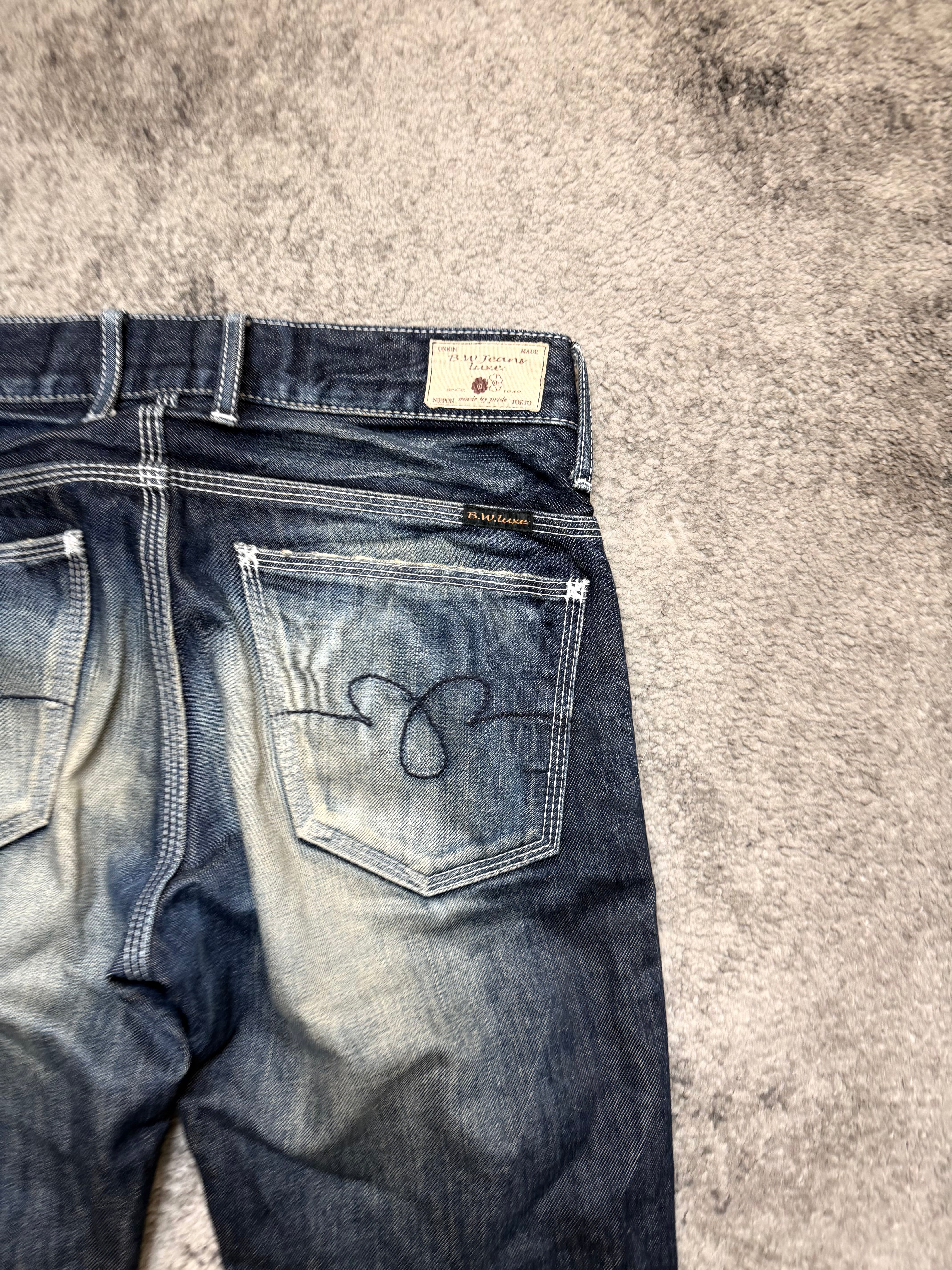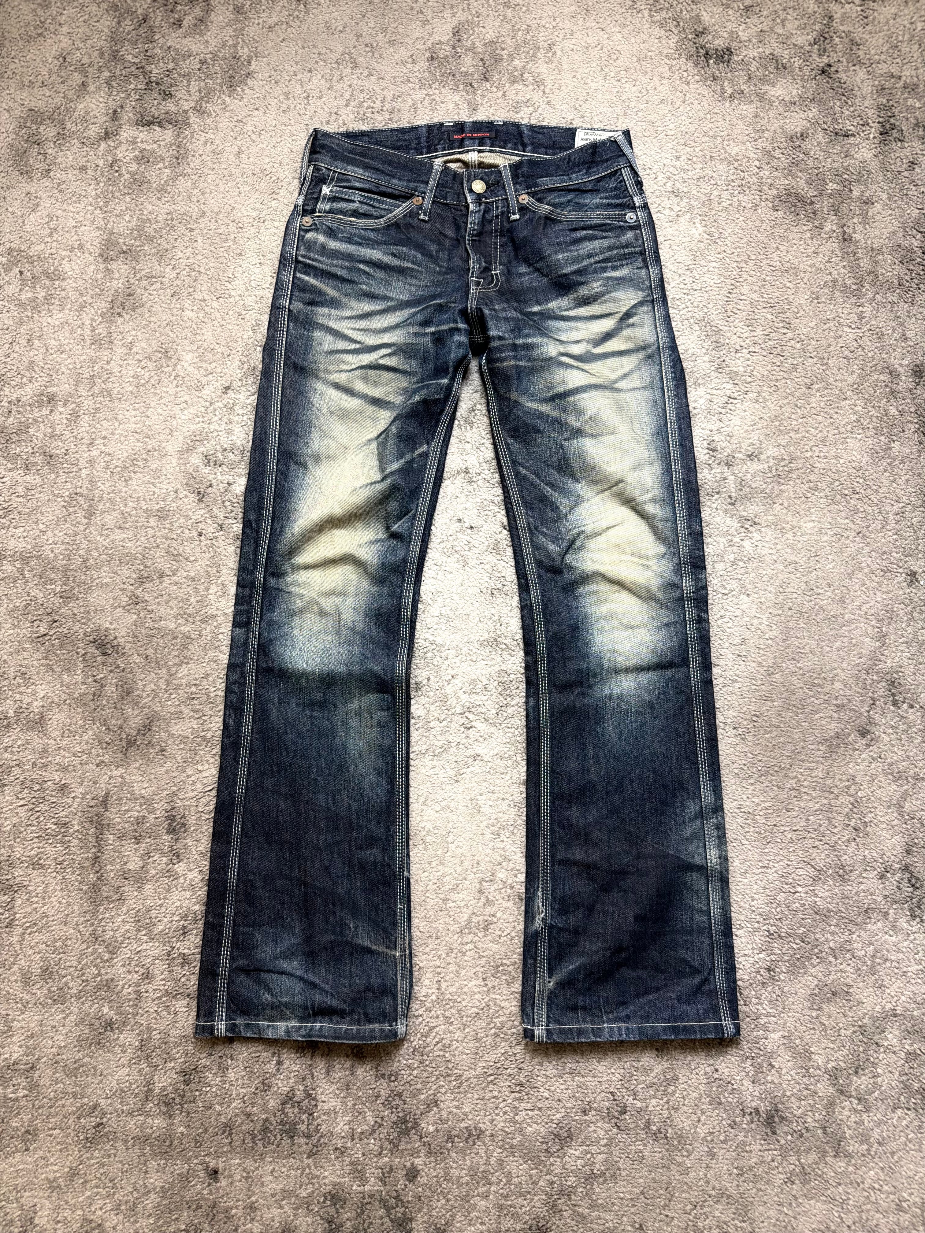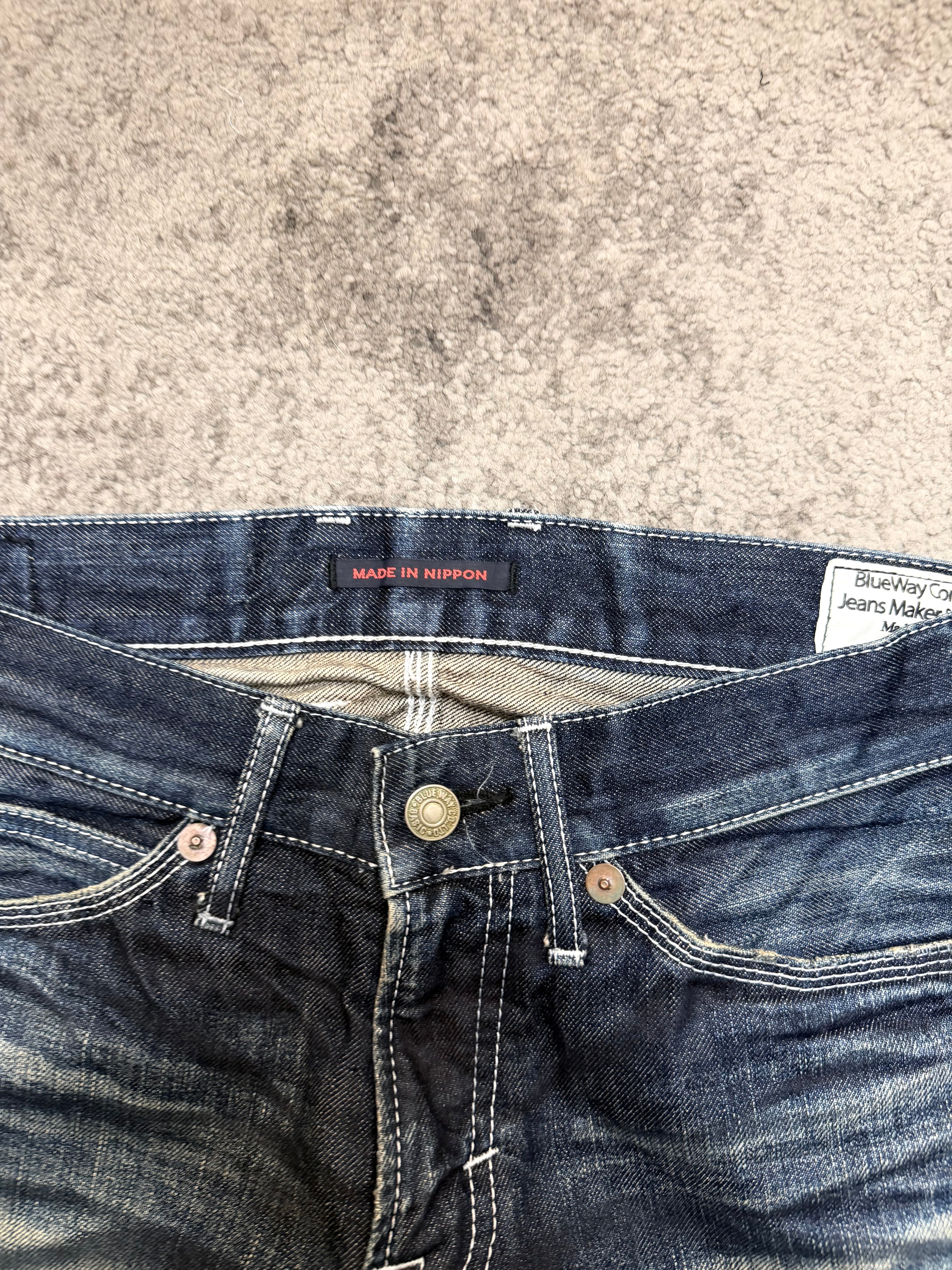 BLUE WAY “Midnight Fade” Japanese Archive Denim – pressure worn into indigo.