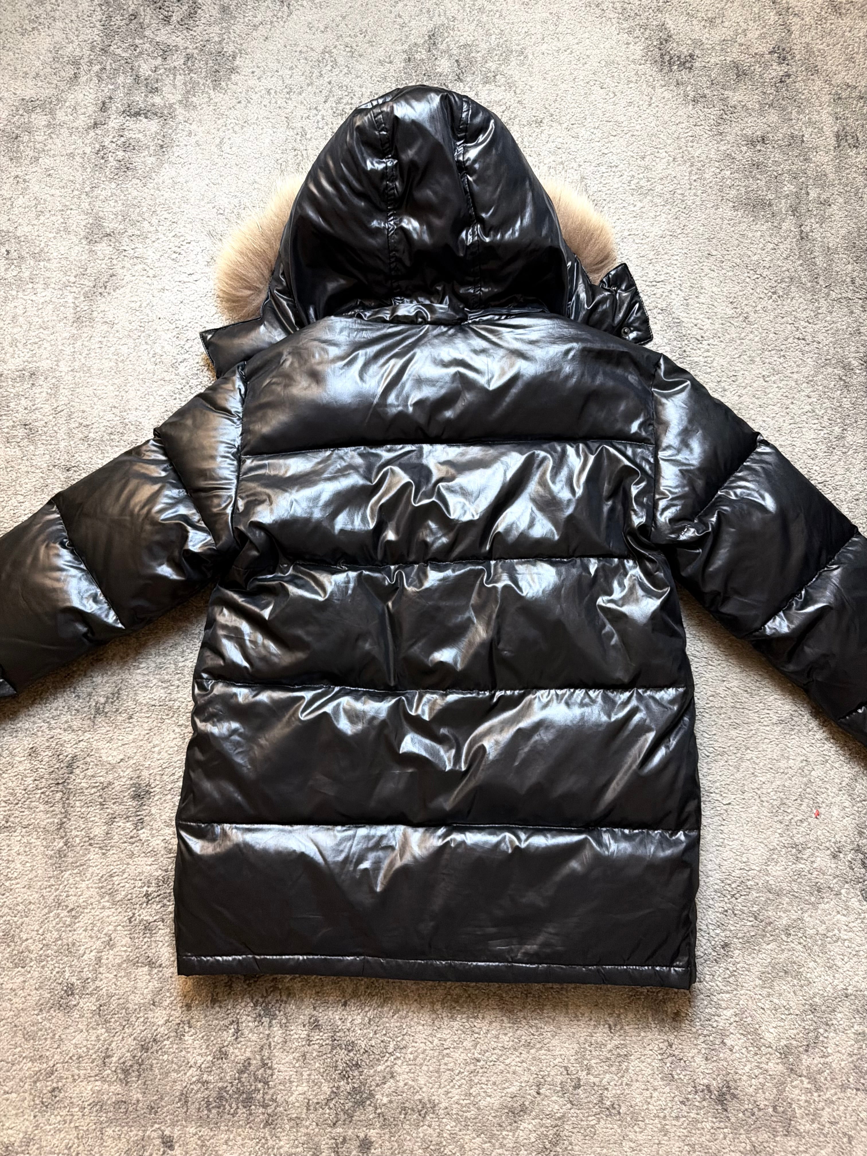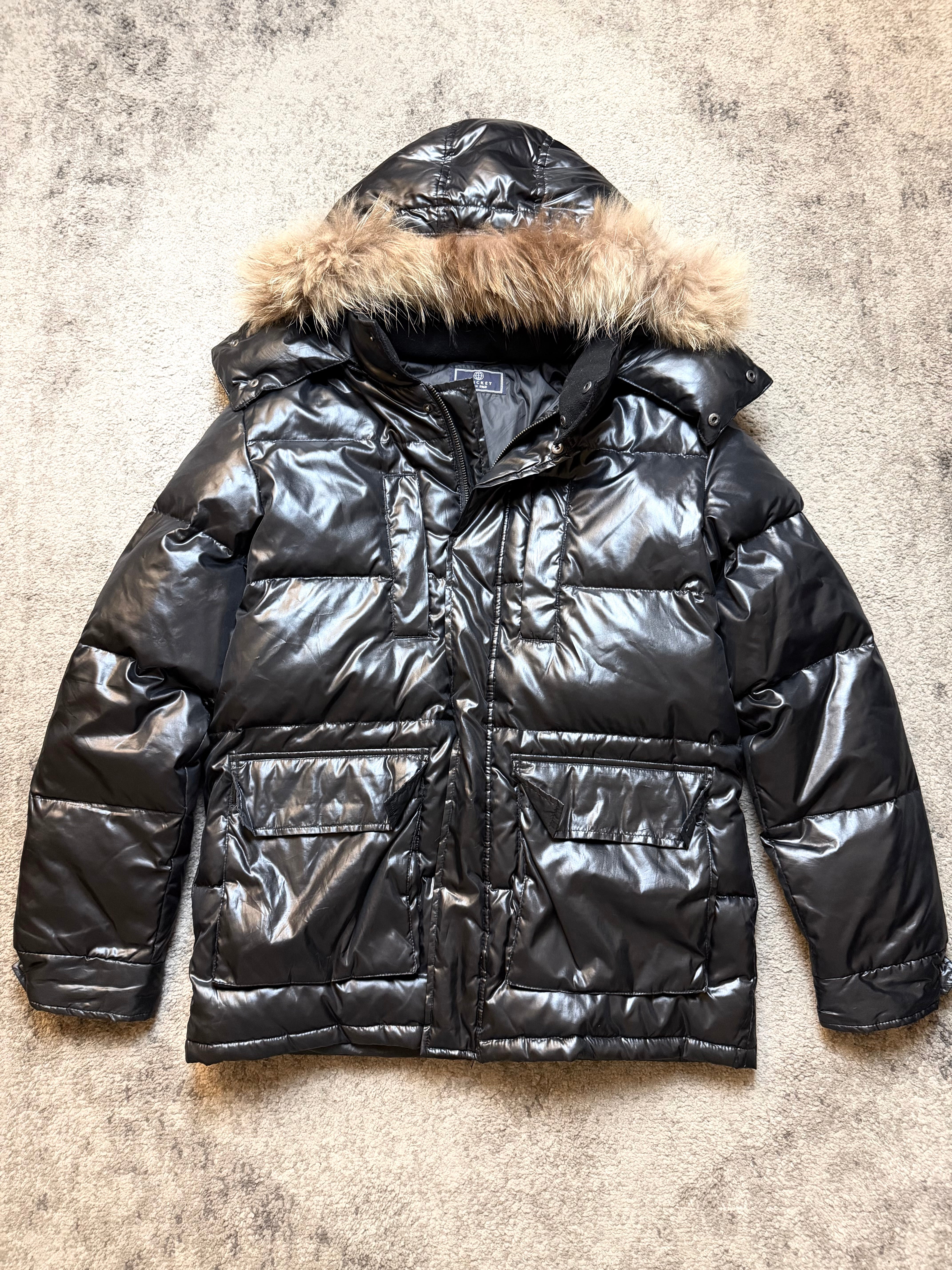 The coat is in great vintage condition, clean and fully functional. The fabric is a high-density nylon shell with a glossy coating, packed with warm down fill for real winter insulation. The detachable faux-fur trimmed hood adds that classic Harajuku / Shibuya outerwear touch, balancing utility with attitude.