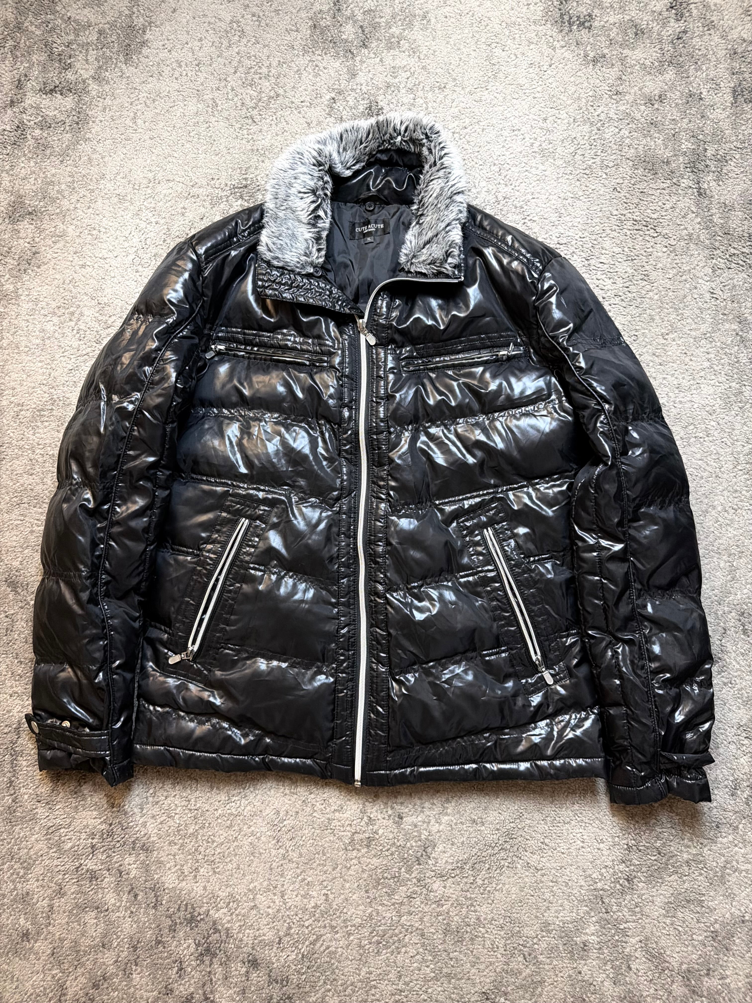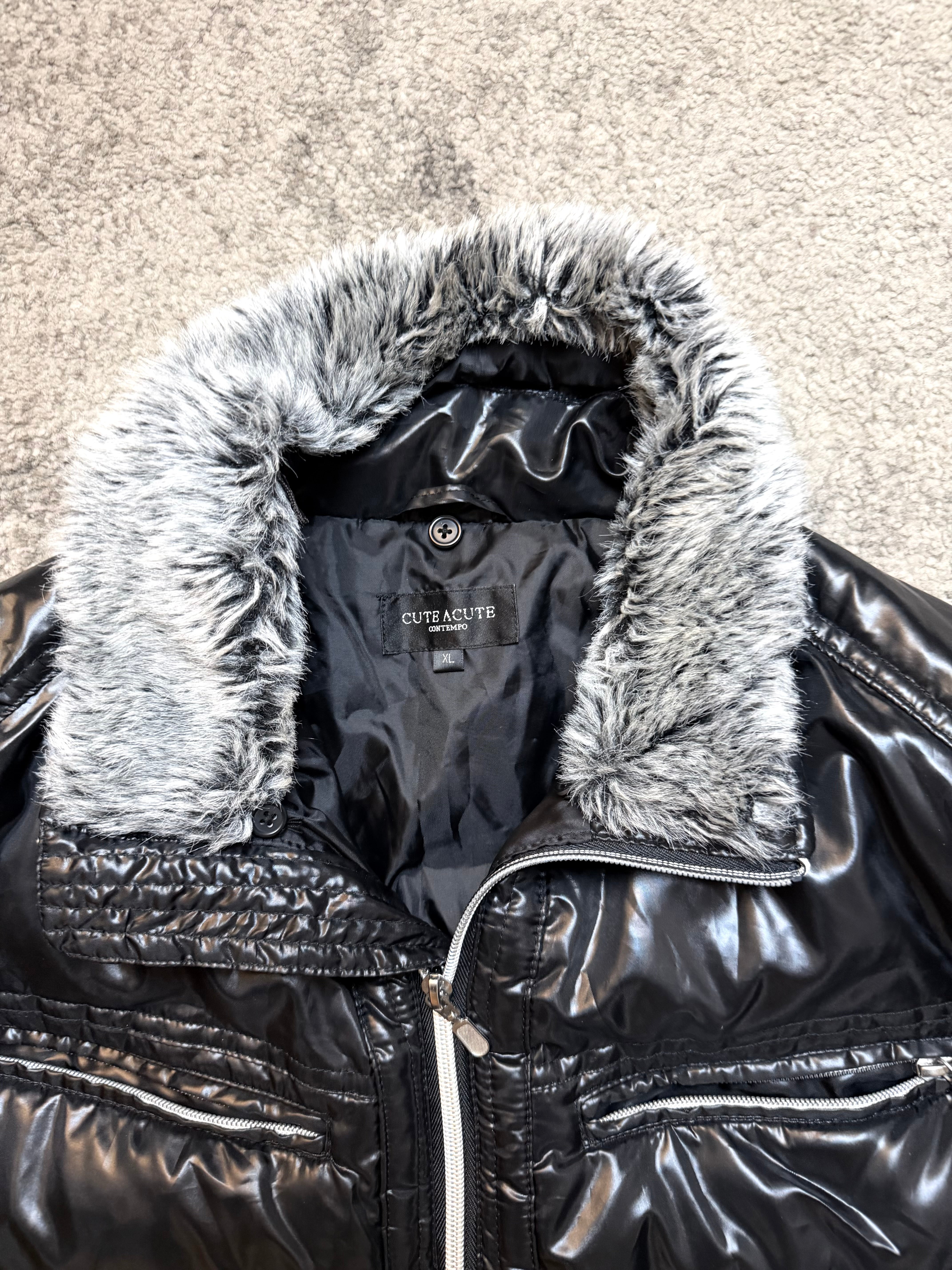 High-shine quilted shell with thick insulation — warm without feeling bulky. Faux-fur collar lining for extra comfort and that iconic Japanese street-lux touch.