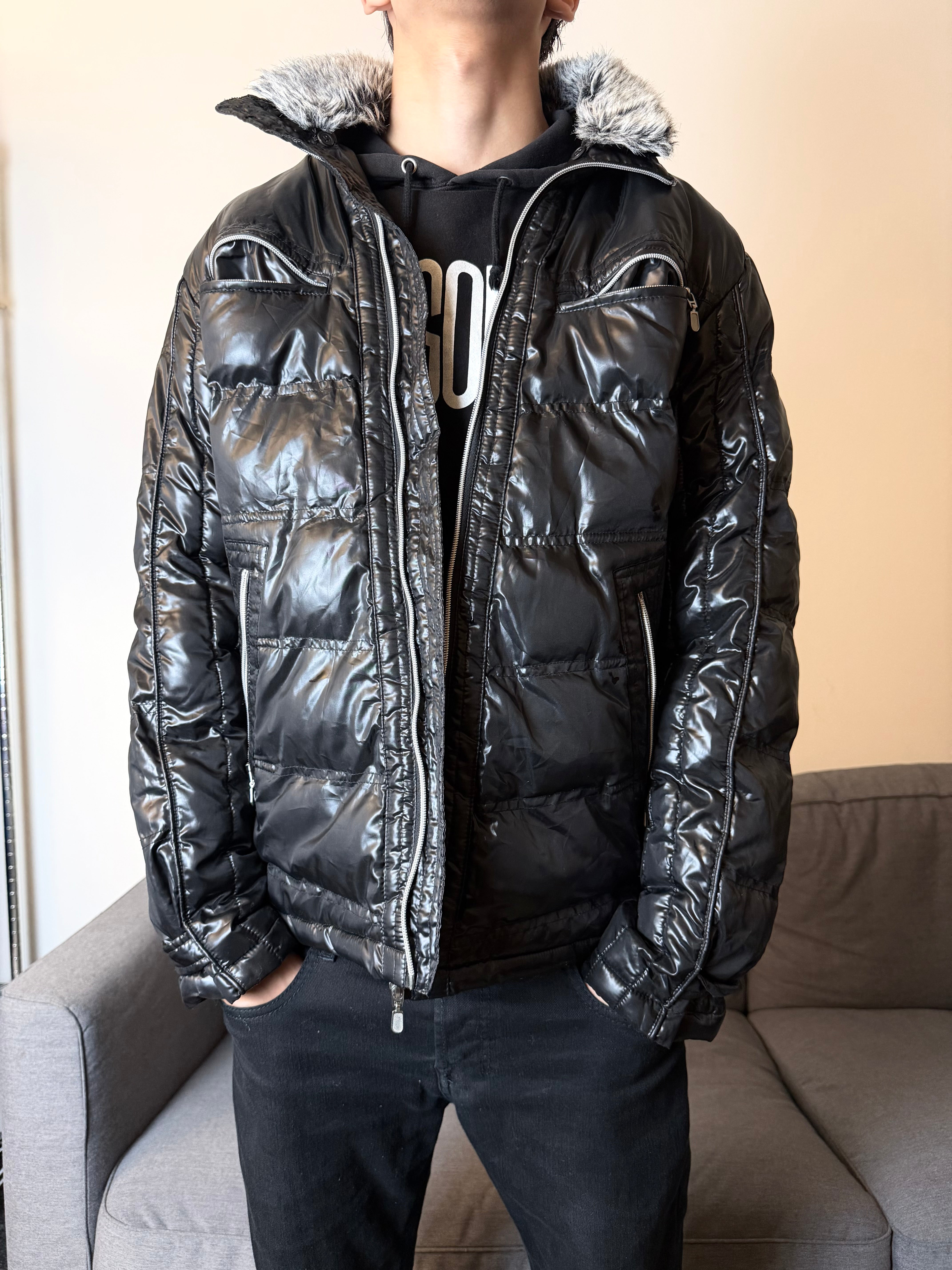 This is winter armor for the ones who love a little chaos in their shine — glossy black, archive attitude, and that unmistakable Y2K rebel warmth.