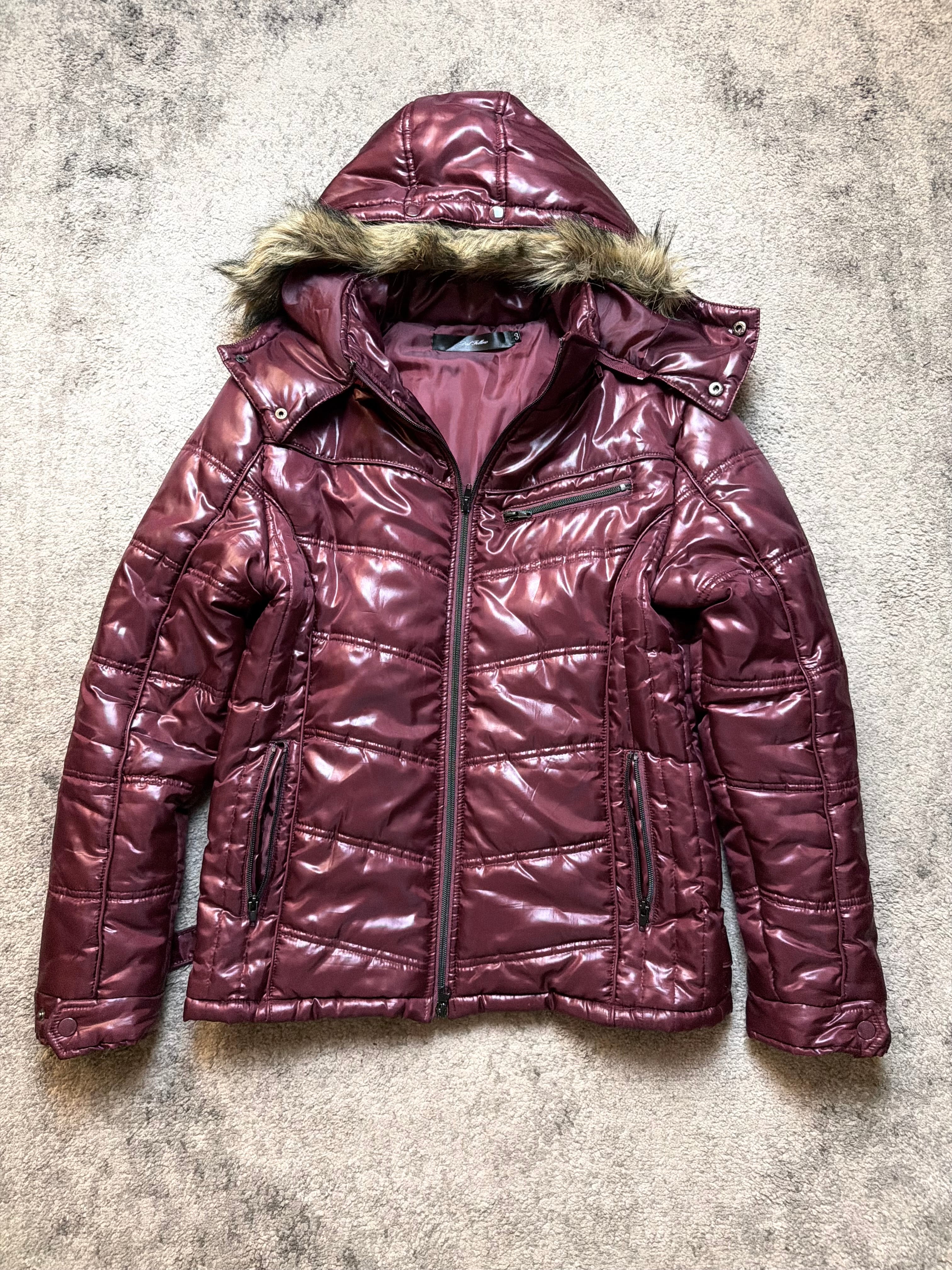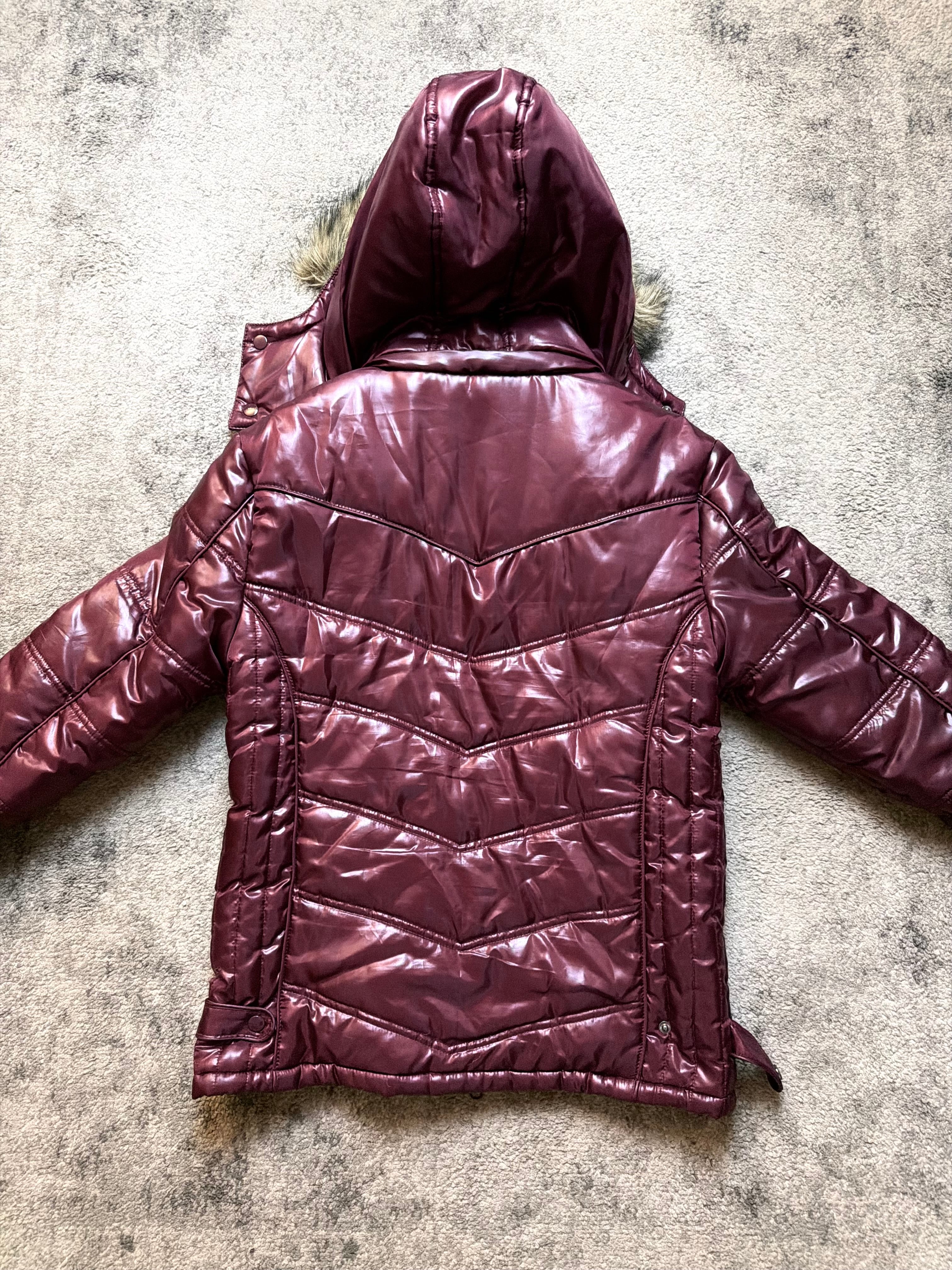Lightweight but heavily insulated synthetic shell with a reflective gloss treatment. Soft faux-fur hood lining adds warmth and a touch of luxury. Comfortable, durable, and built for real winter weather.