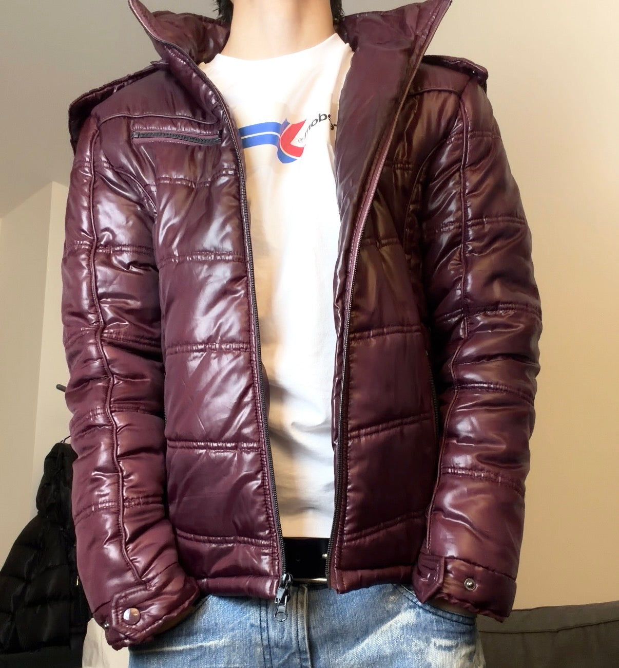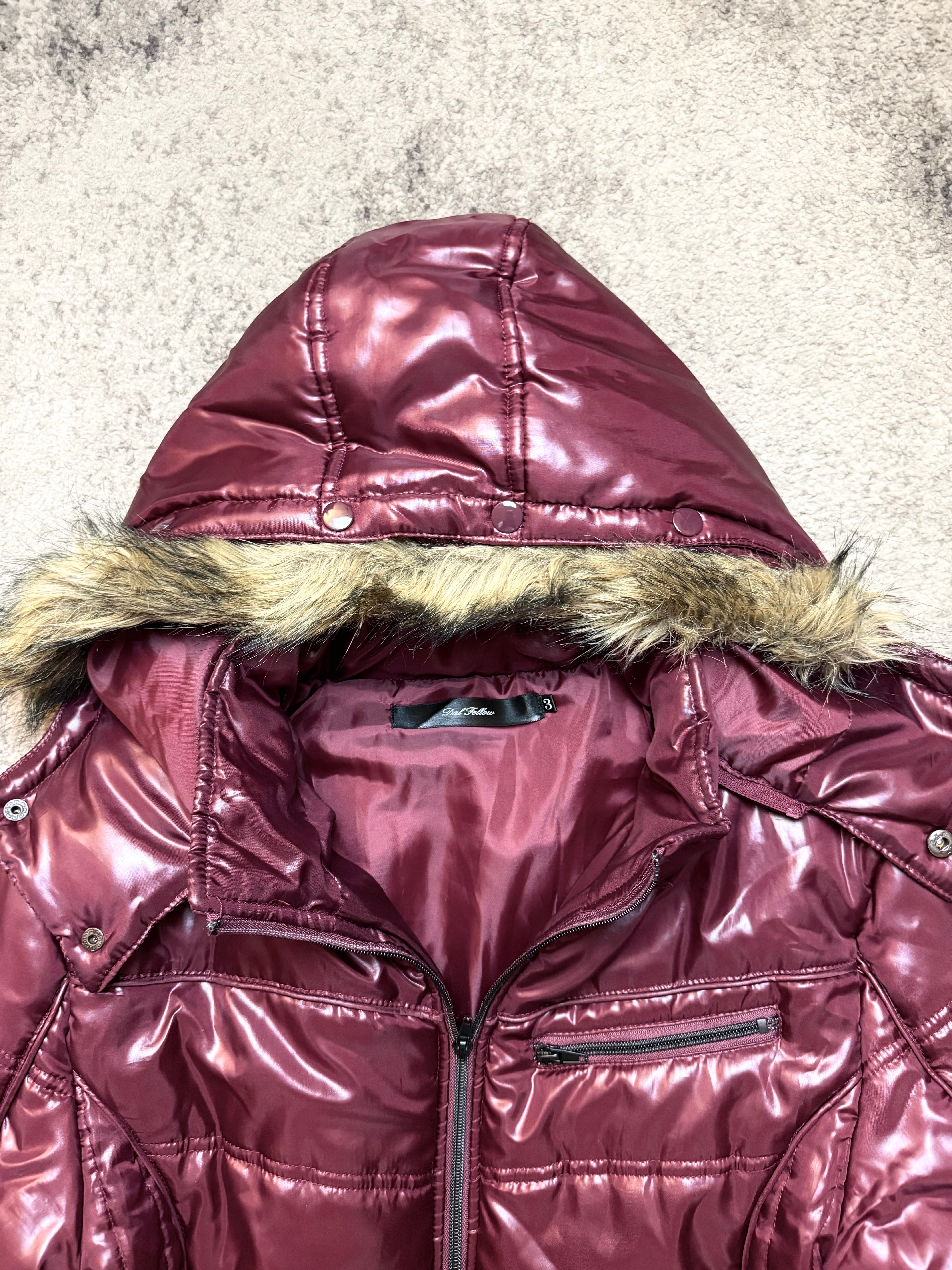 A bold, futuristic winter piece straight out of the Japanese street-archive universe. DAL FELLOW delivers this deep scarlet puffer jacket with a glossy, almost lacquer-like sheen — the kind of finish you’d expect from early 2000s Harajuku outerwear, where fashion meets performance and attitude.