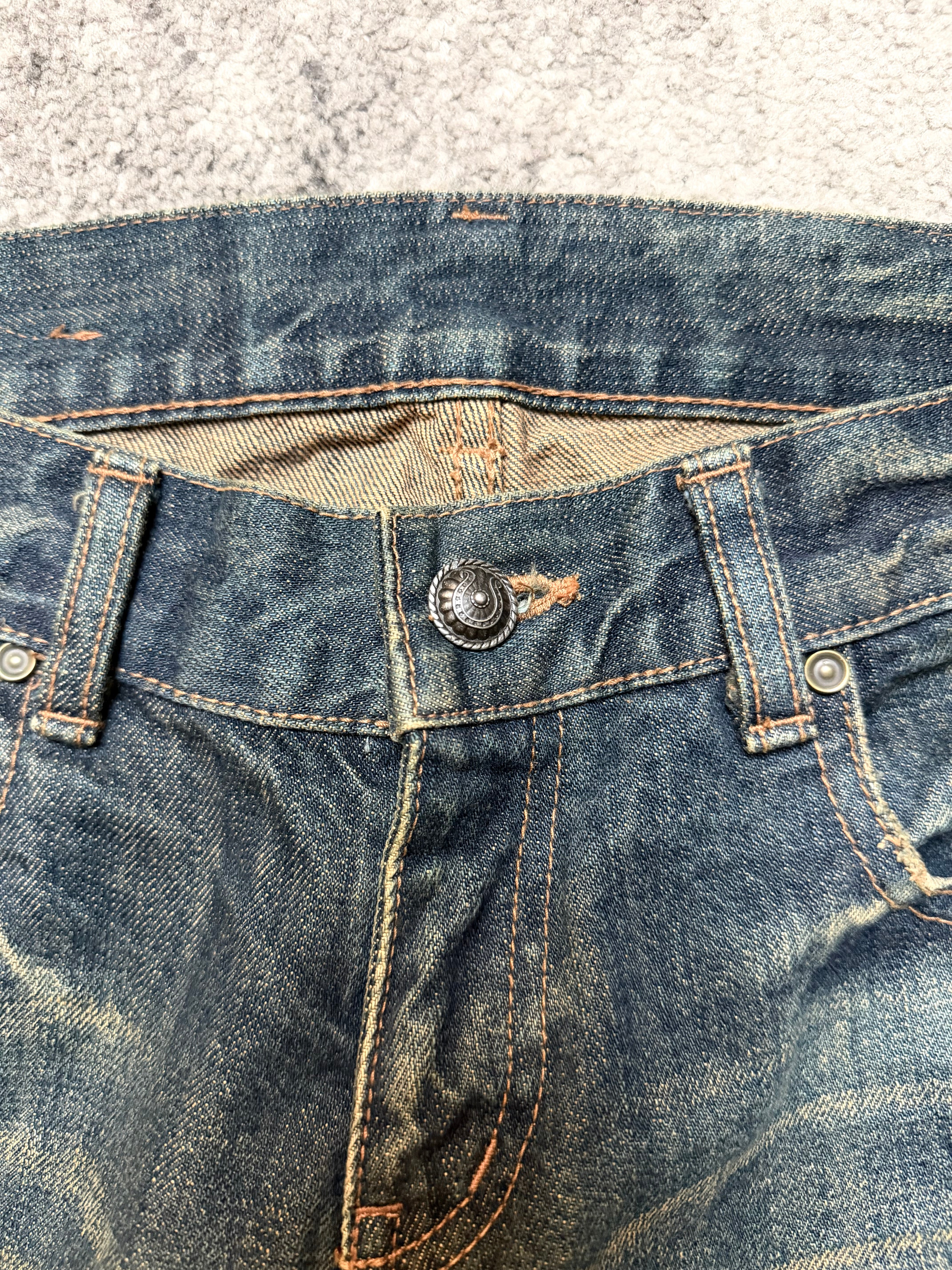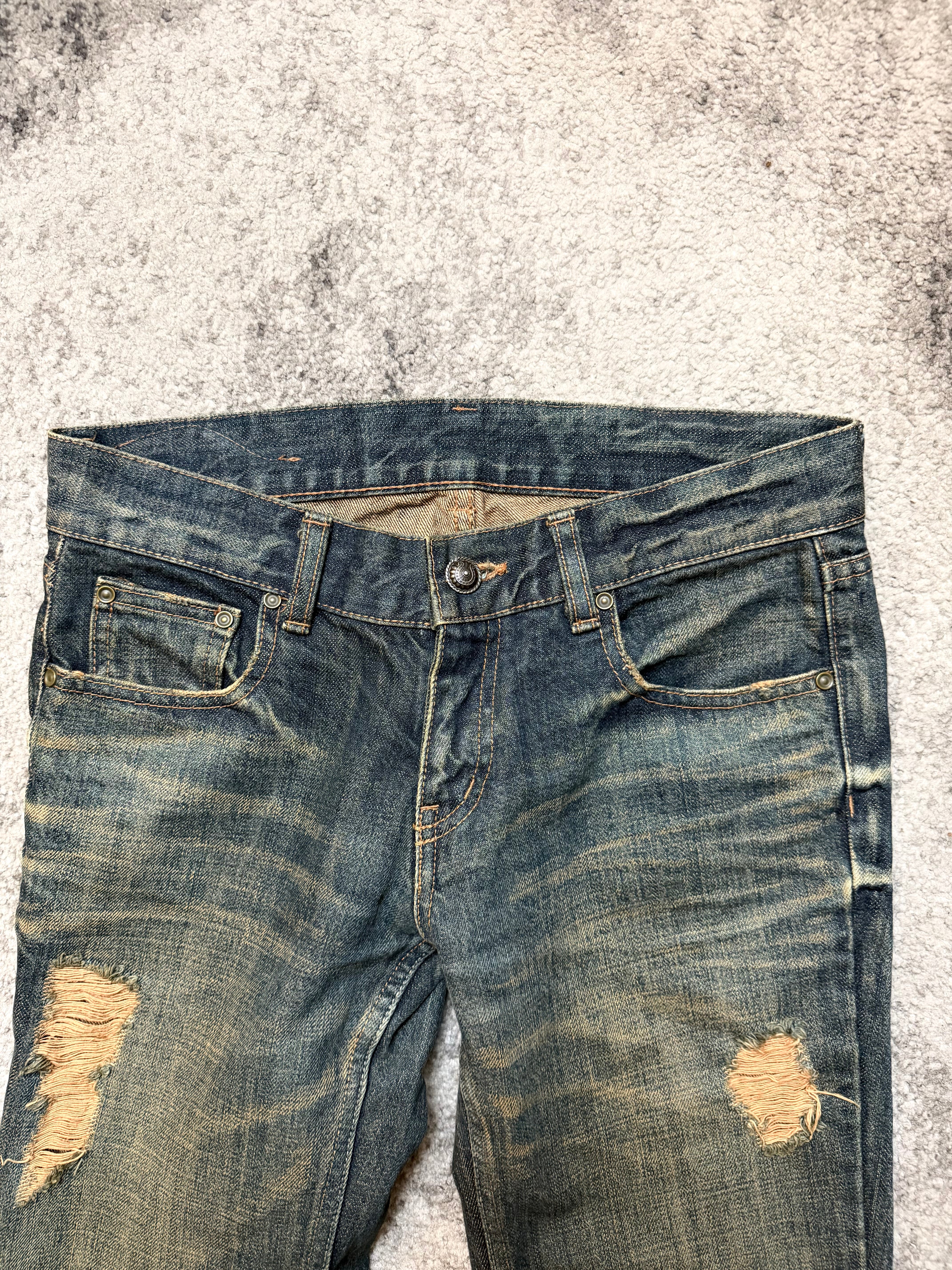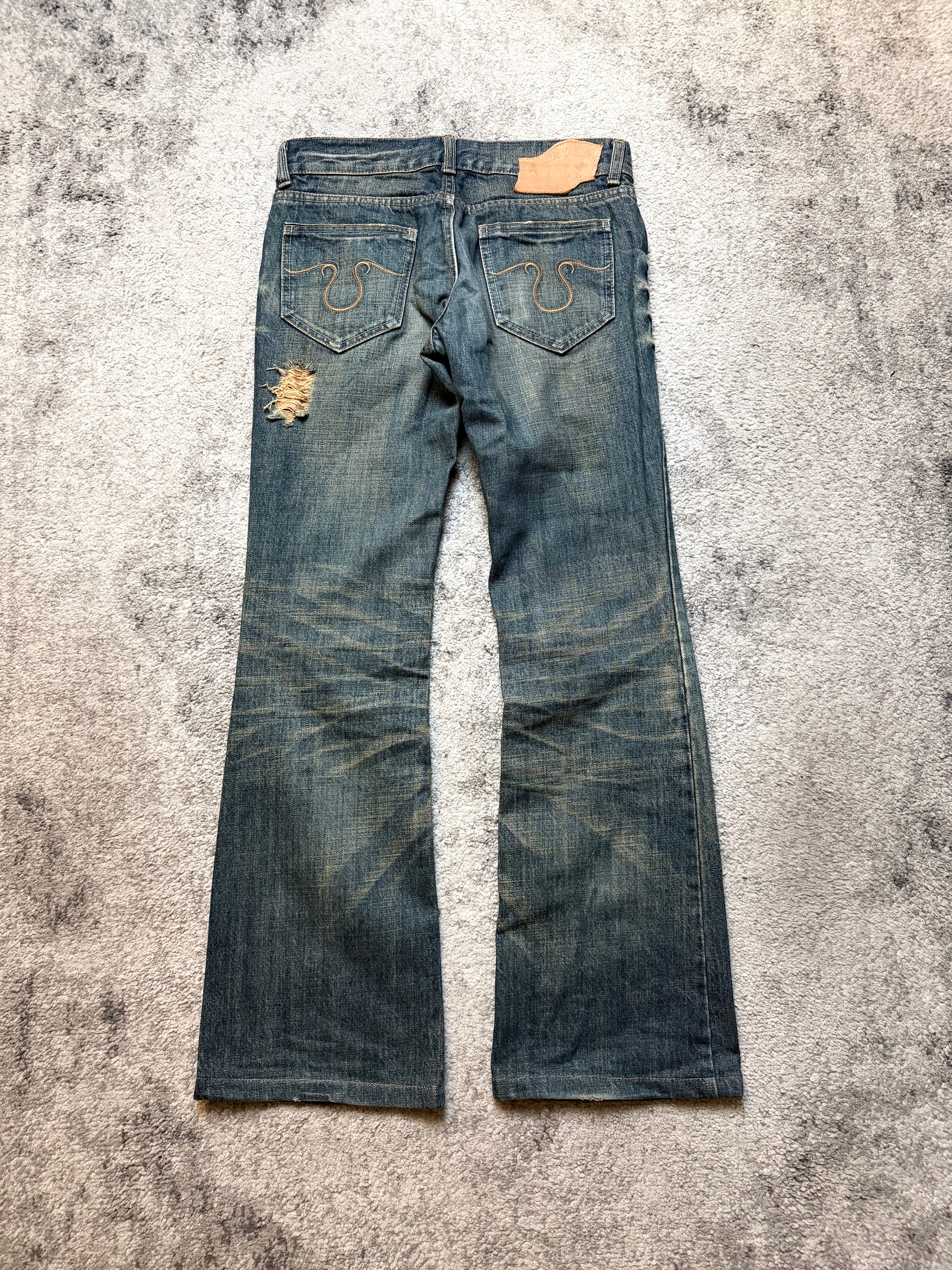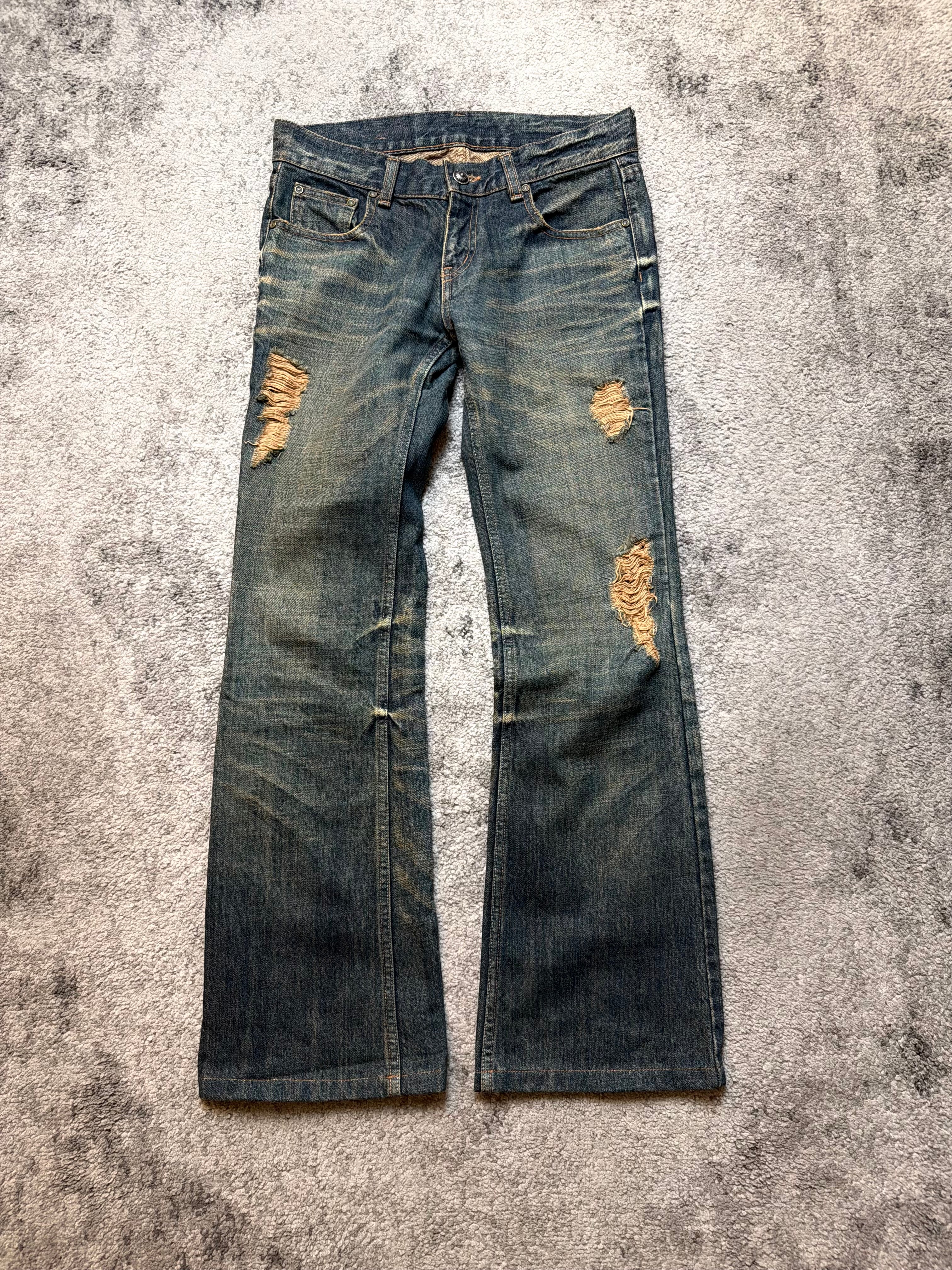 DEXIE “Broken Halo” Distressed Flare Denim — Japanese Archive Cut (S)
