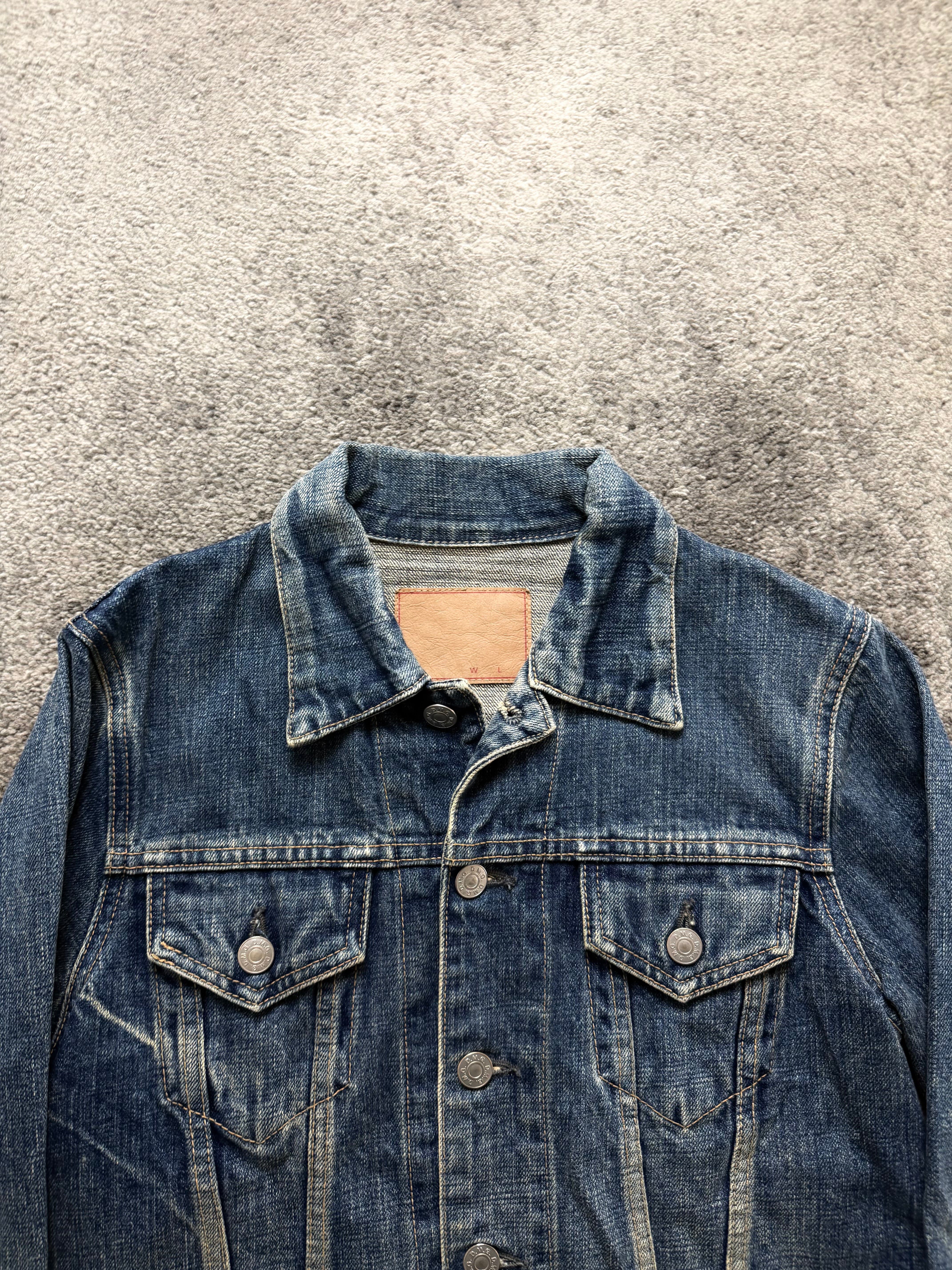 Material: Midweight Japanese cotton denim. Firm structure with a softened hand feel from wear. Holds shape beautifully while still feeling comfortable and broken-in.