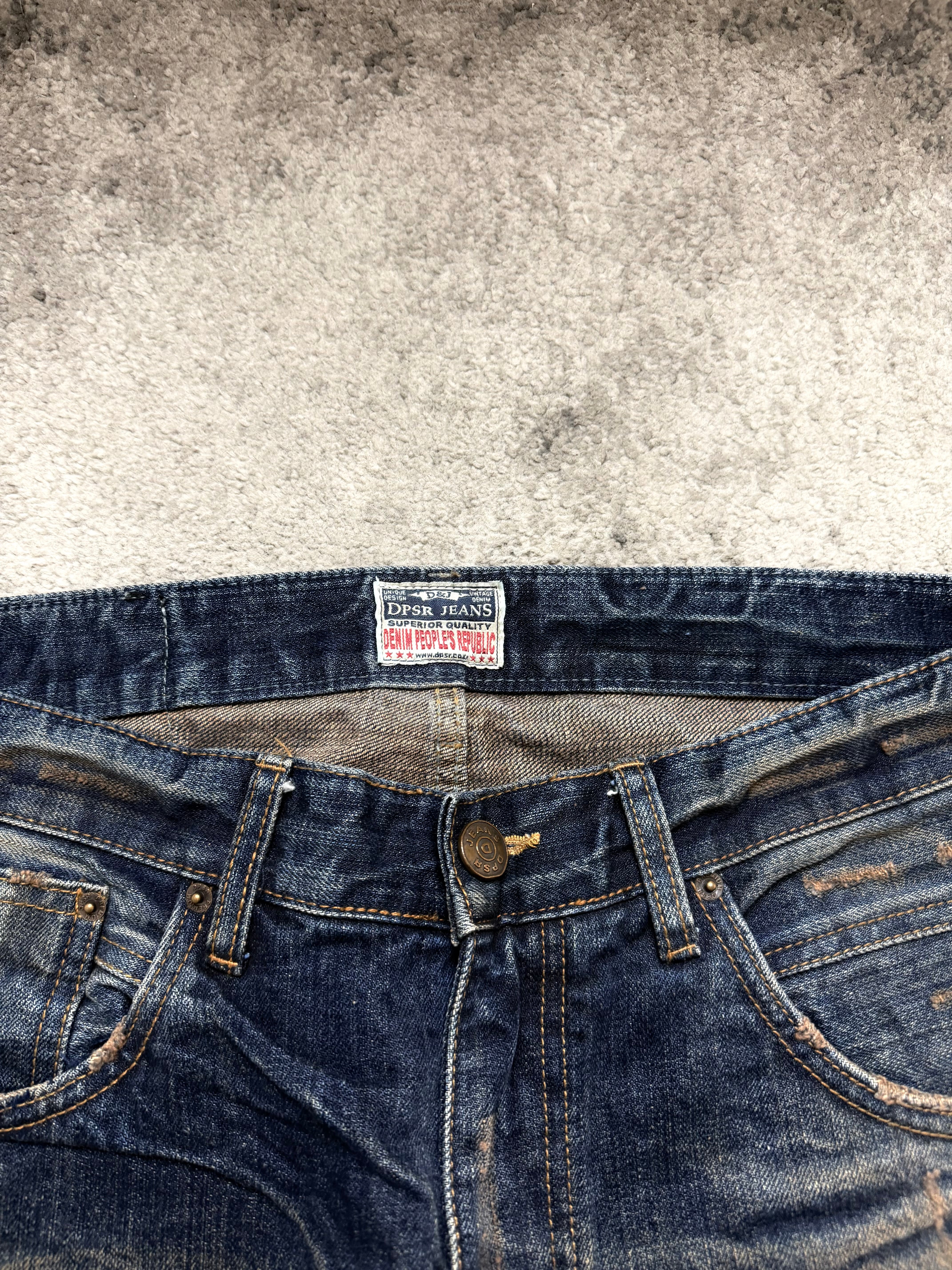 DPSR “Ash Distortion” Denim – Japanese archive grit at full volume. This isn’t clean or careful – it’s raw, worn, and emotionally charged. DPSR leans into that early-2000s underground aesthetic: heavy abrasion, dusty fades, and a silhouette that feels lived through.