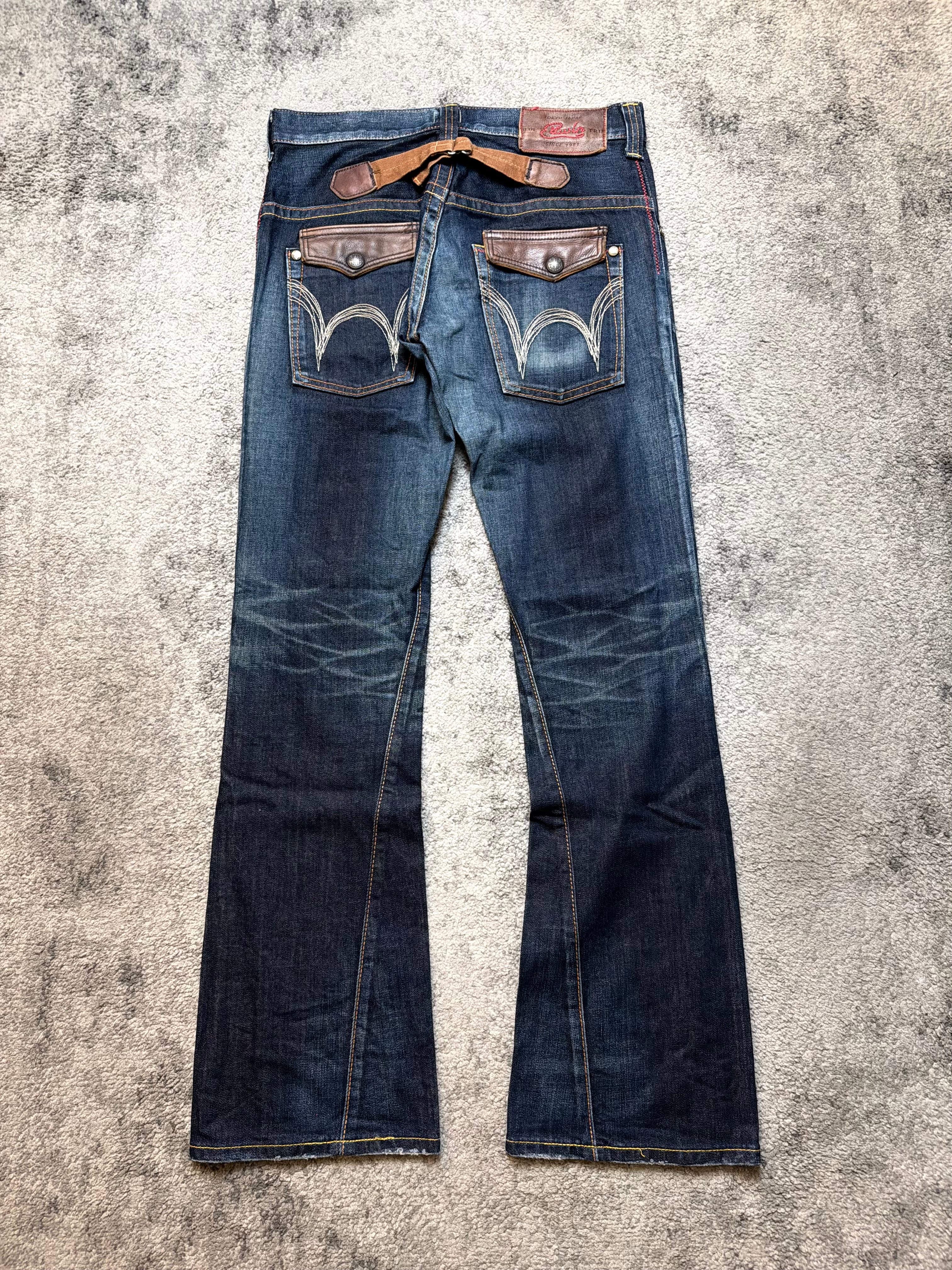 A pair of true Japanese archive-coded denim—faded, worn-in, and quietly rebellious. BLUETRIP’s “Silent Rider Indigo Flare” brings that unmistakable mix of rugged workwear and Tokyo-street poetry.