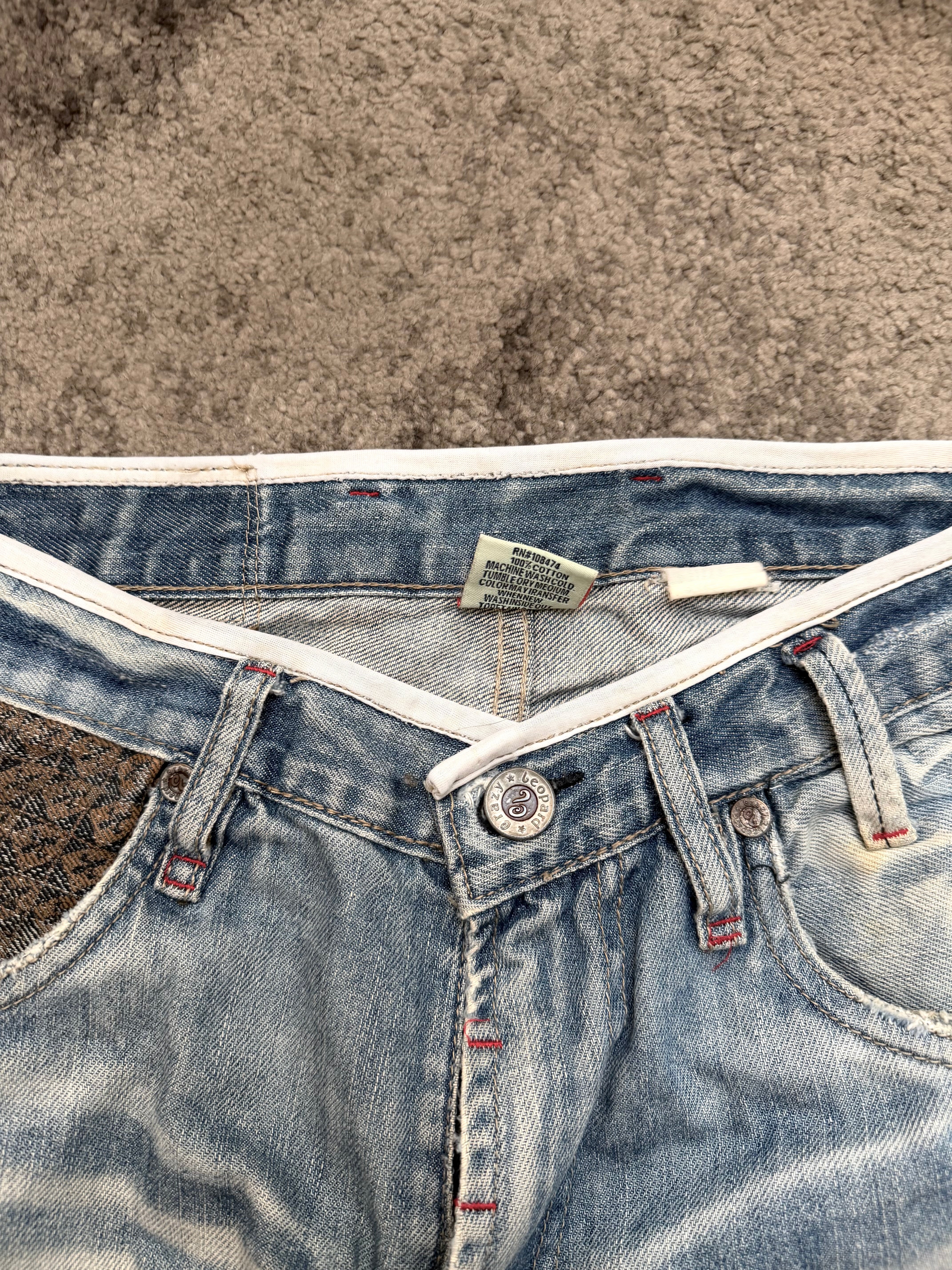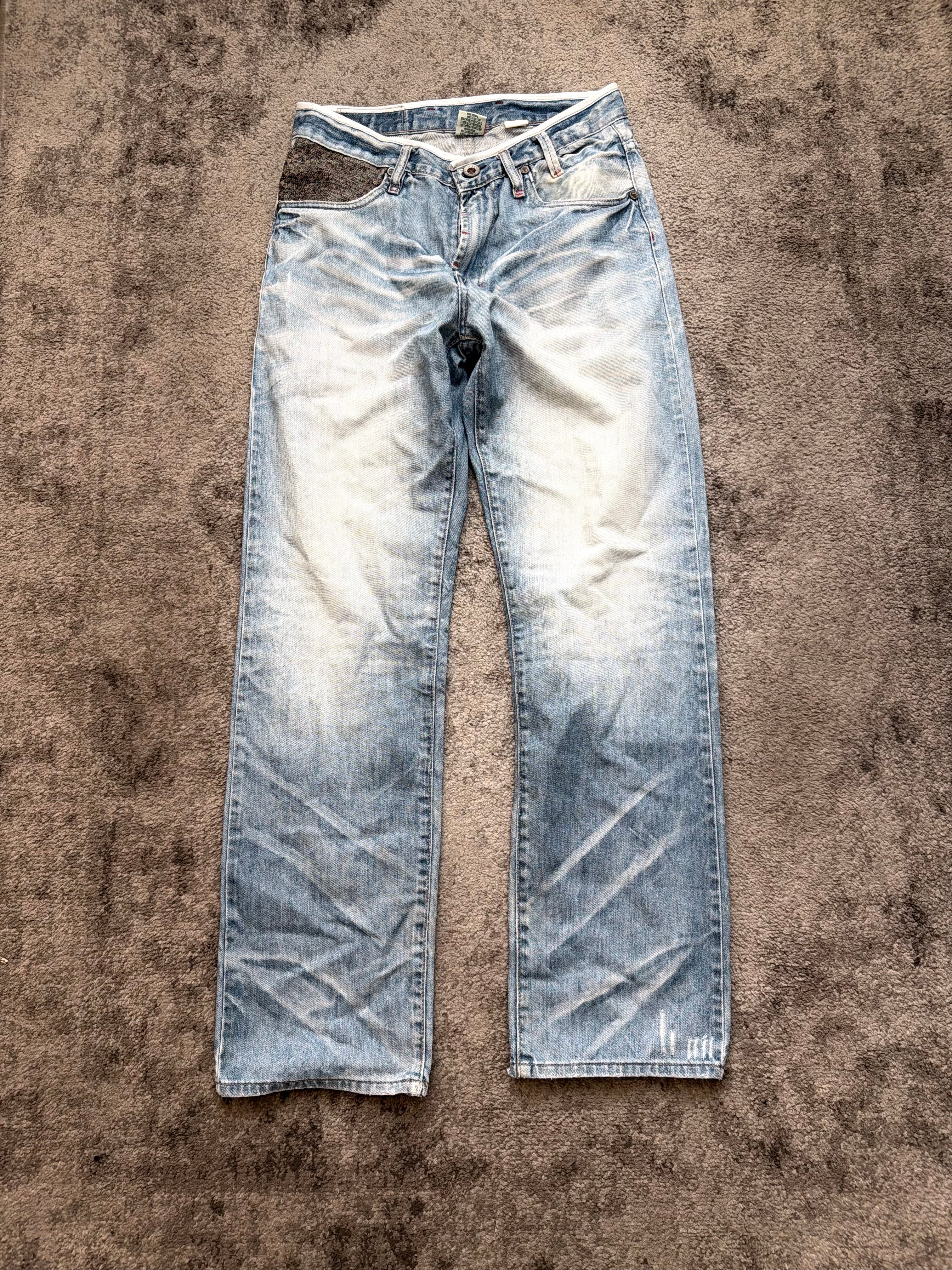A rare slice of Heisei-era denim culture — these HEISEI “Pale Reverie” Jeans carry the soft, washed-out blue that only true Japanese vintage can deliver. Made from medium-weight Japanese cotton denim, the pants show beautiful natural fading, whiskering, and stacking that feel straight out of a 2000s Harajuku street shot.