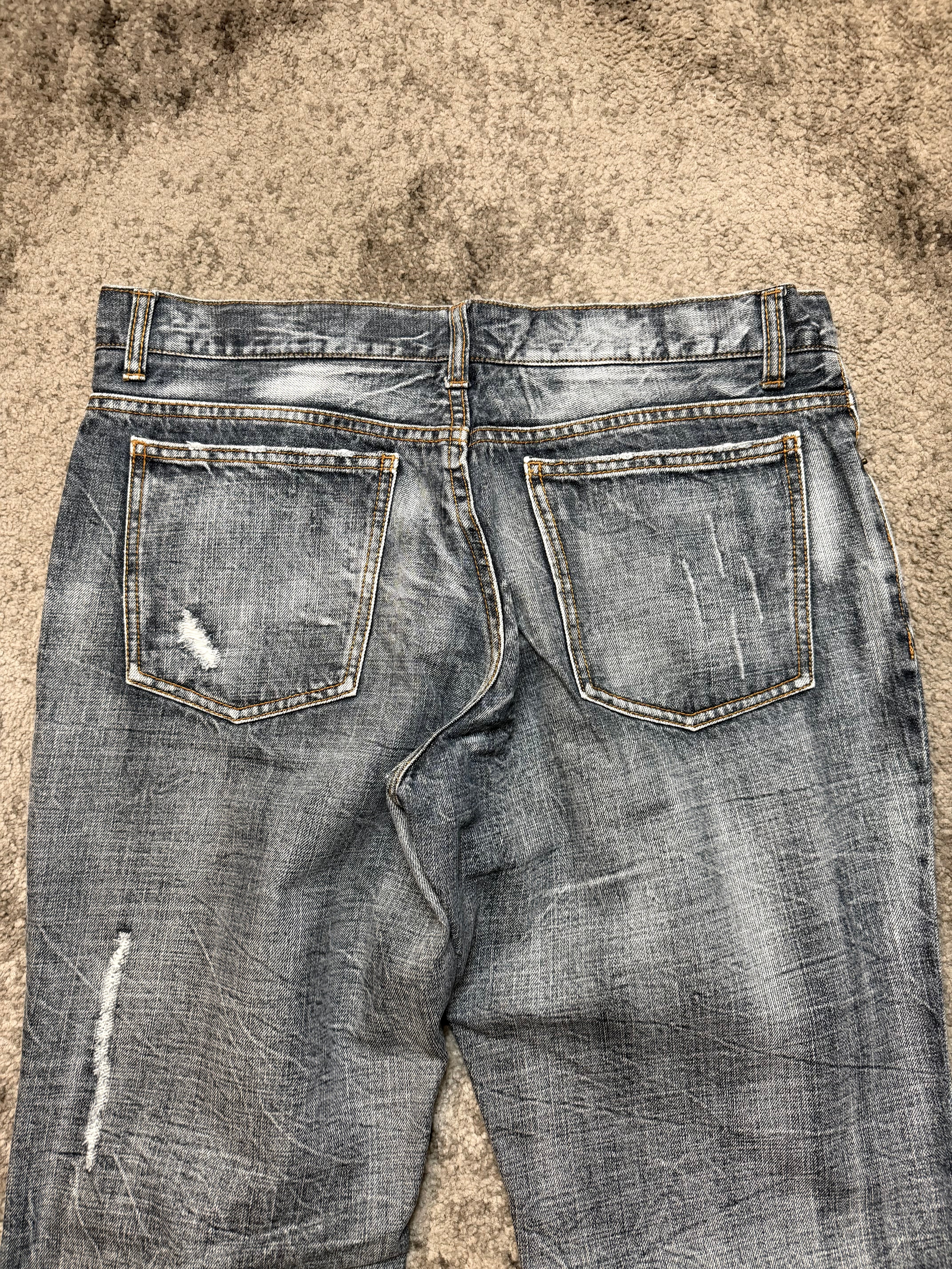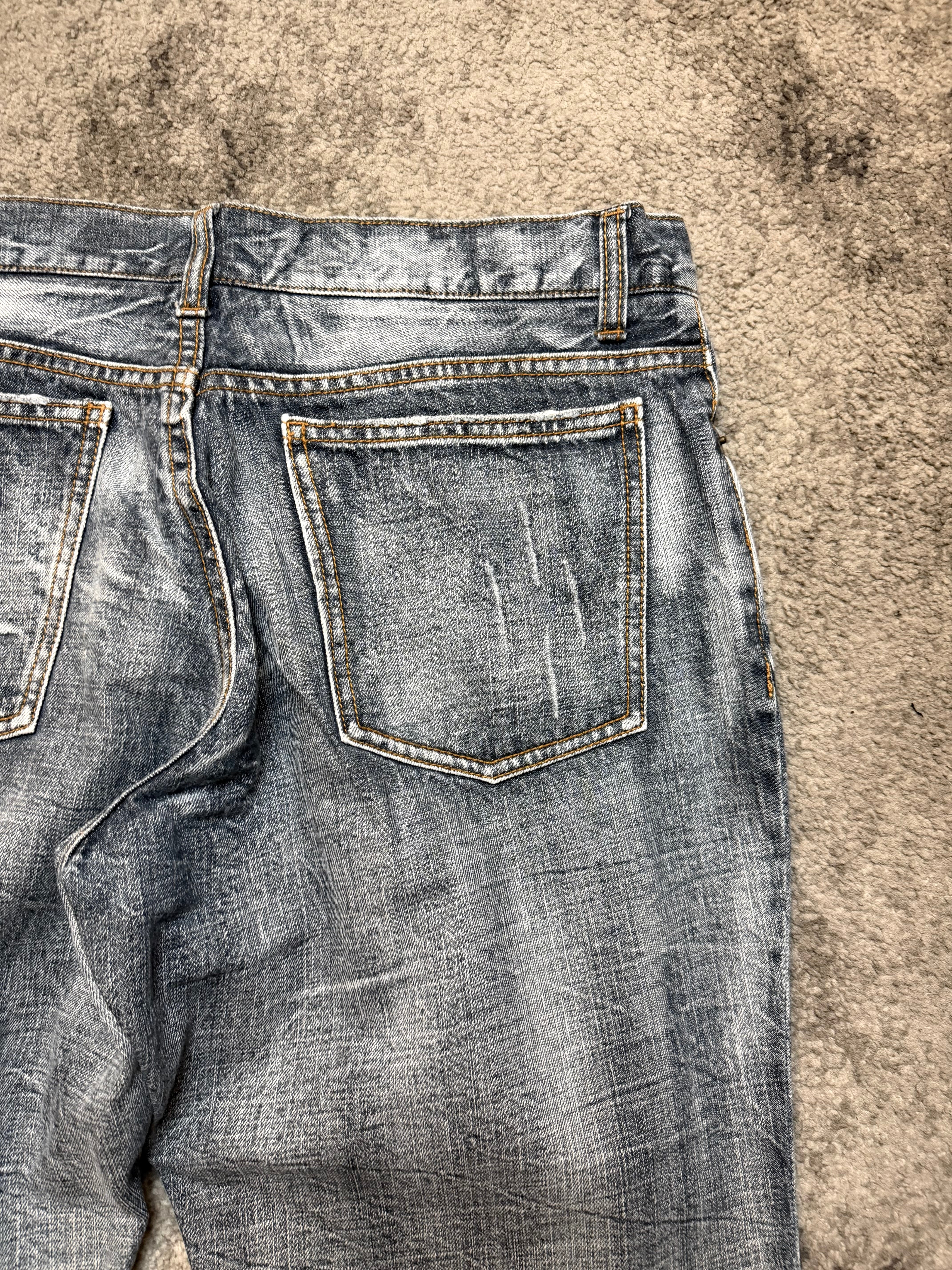 These aren’t just washed denims – they feel like a memory pulled straight from early-2000s Tokyo streets, where host boys, night riders, and Number (N)ine kids drifted through neon fog.