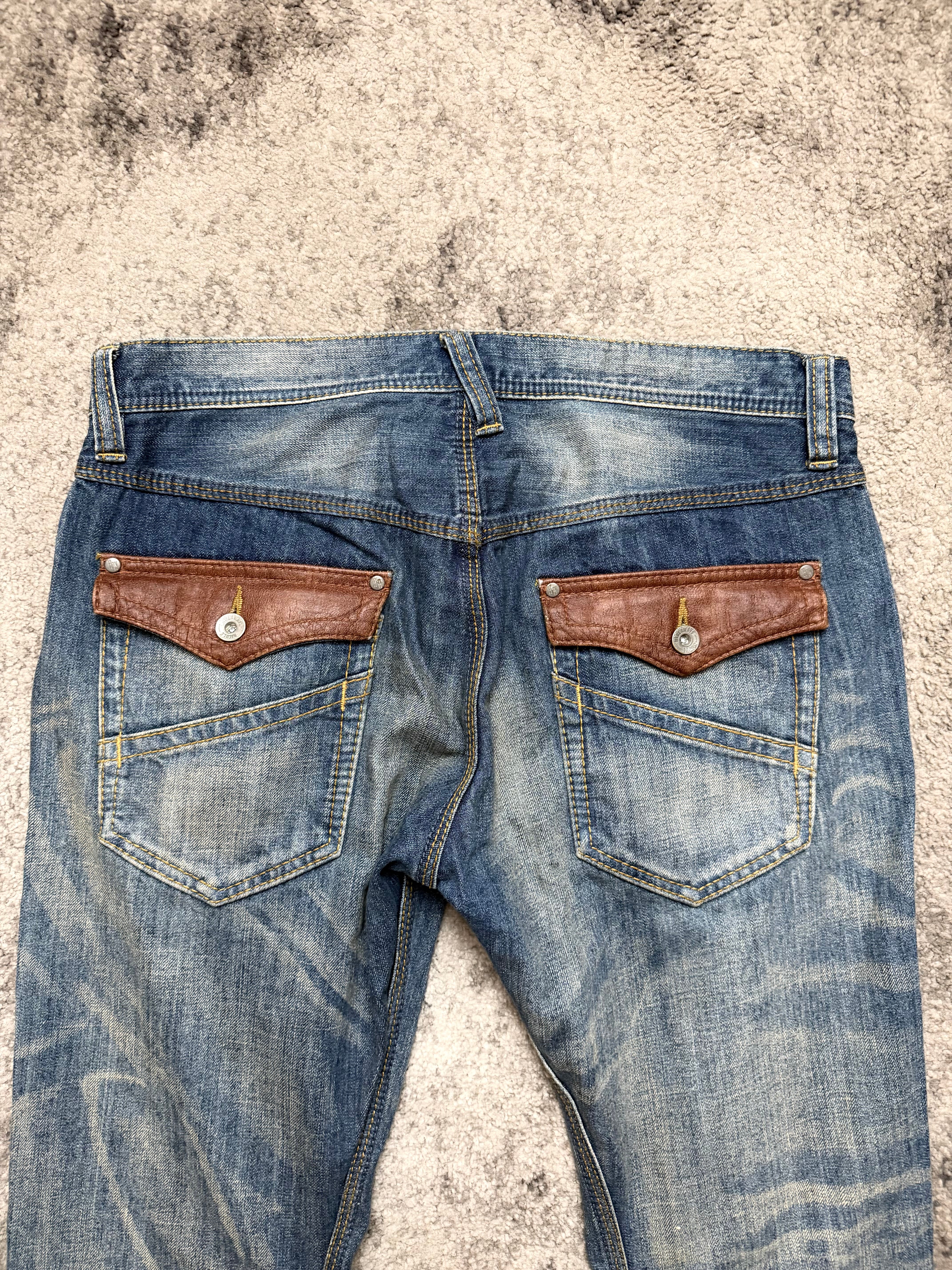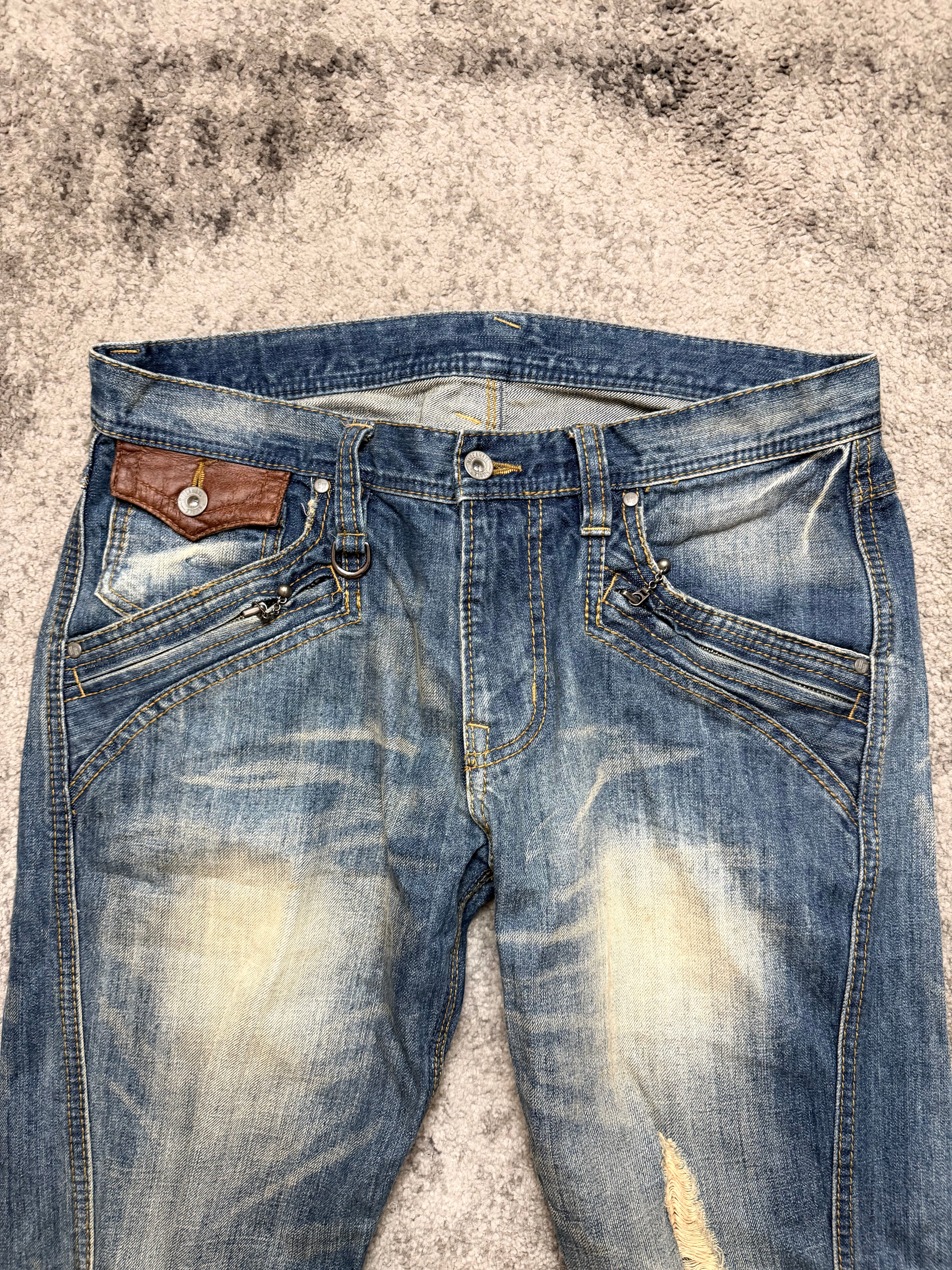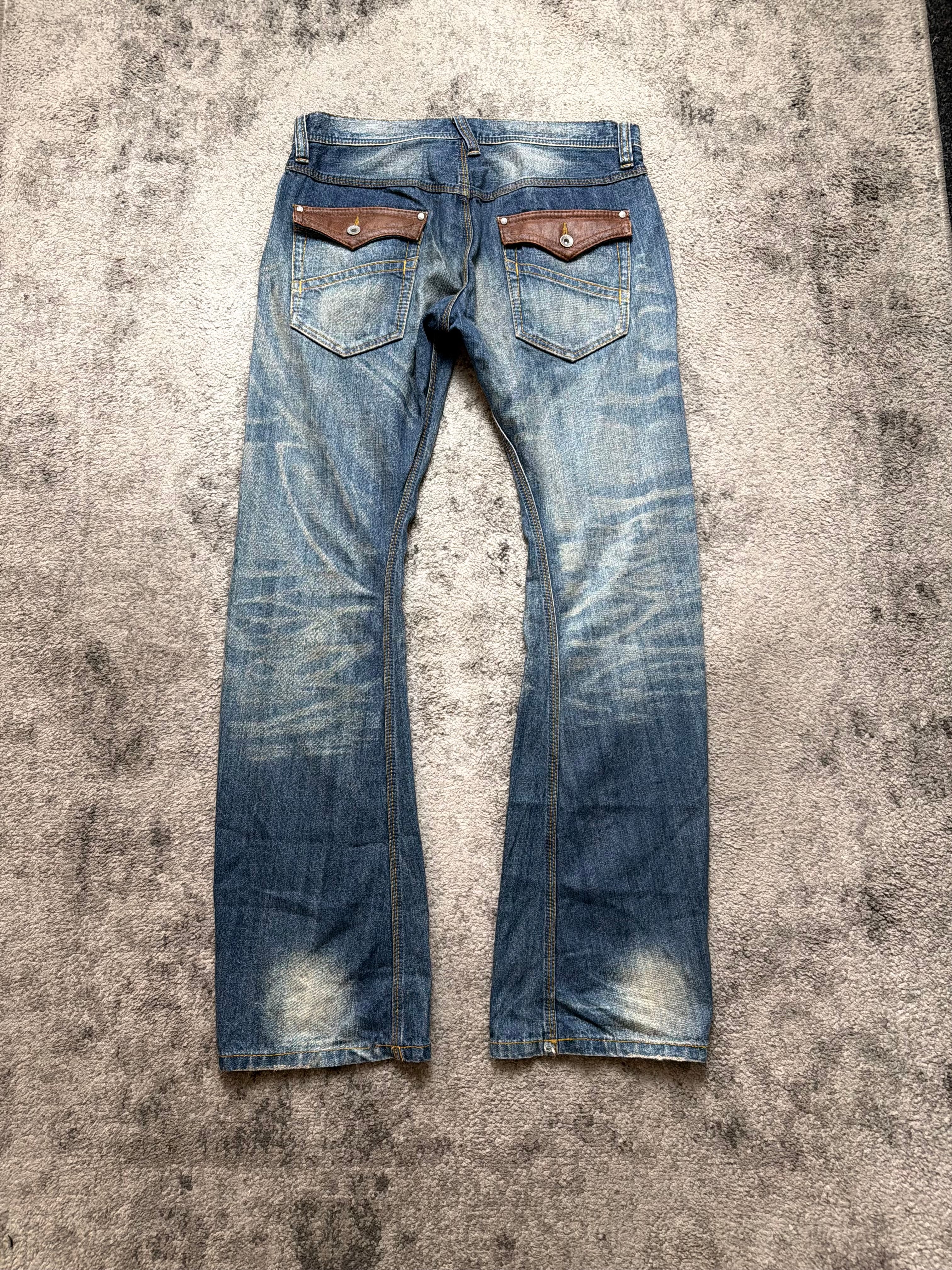 Styling: Asymmetric distressing, sharp panel seams and leather-trimmed coin pockets give it that archive Y2K energy – a little host-core, a little gyaruo rebel. The kind of denim that looks better thrown on than carefully planned.