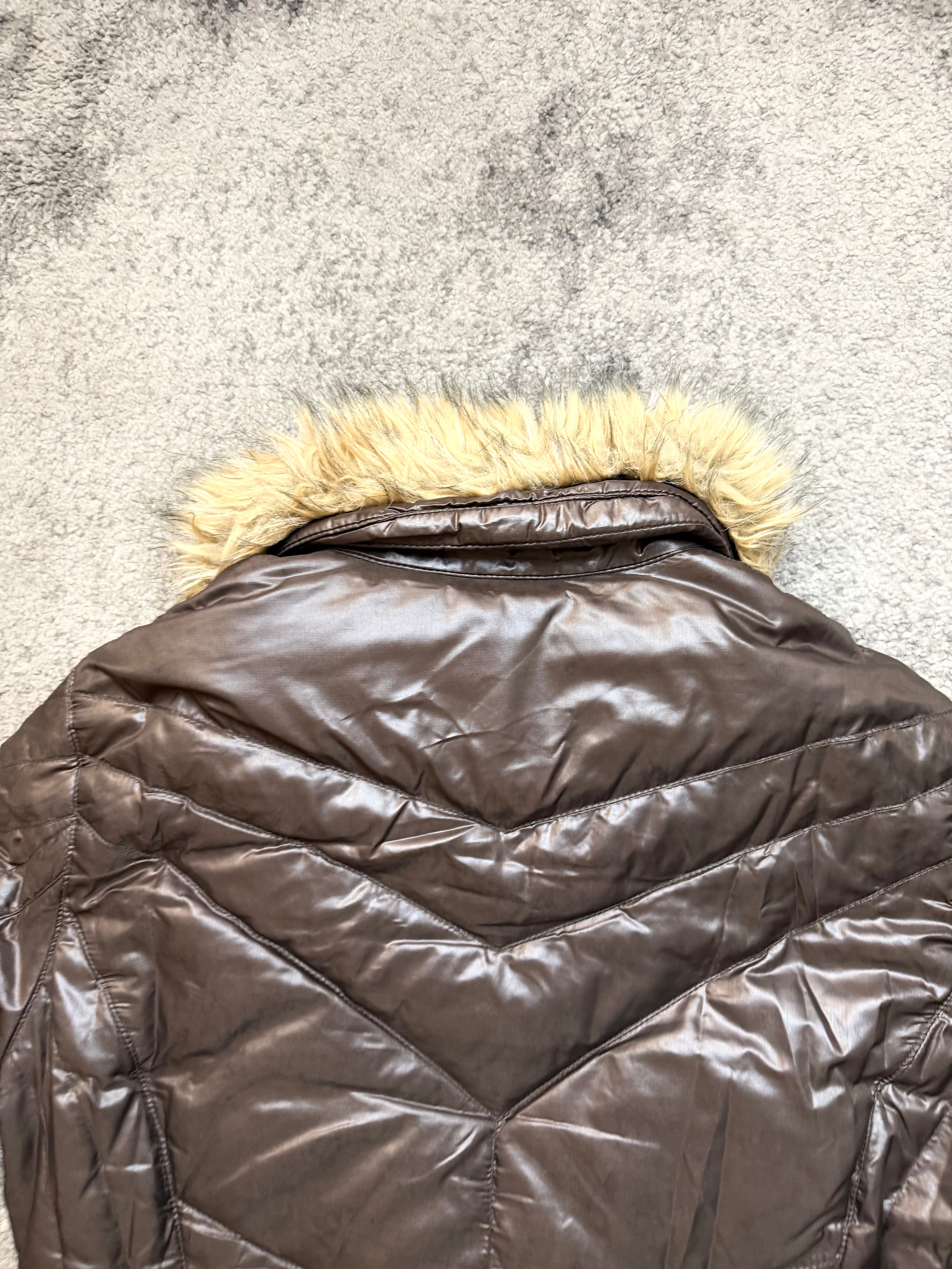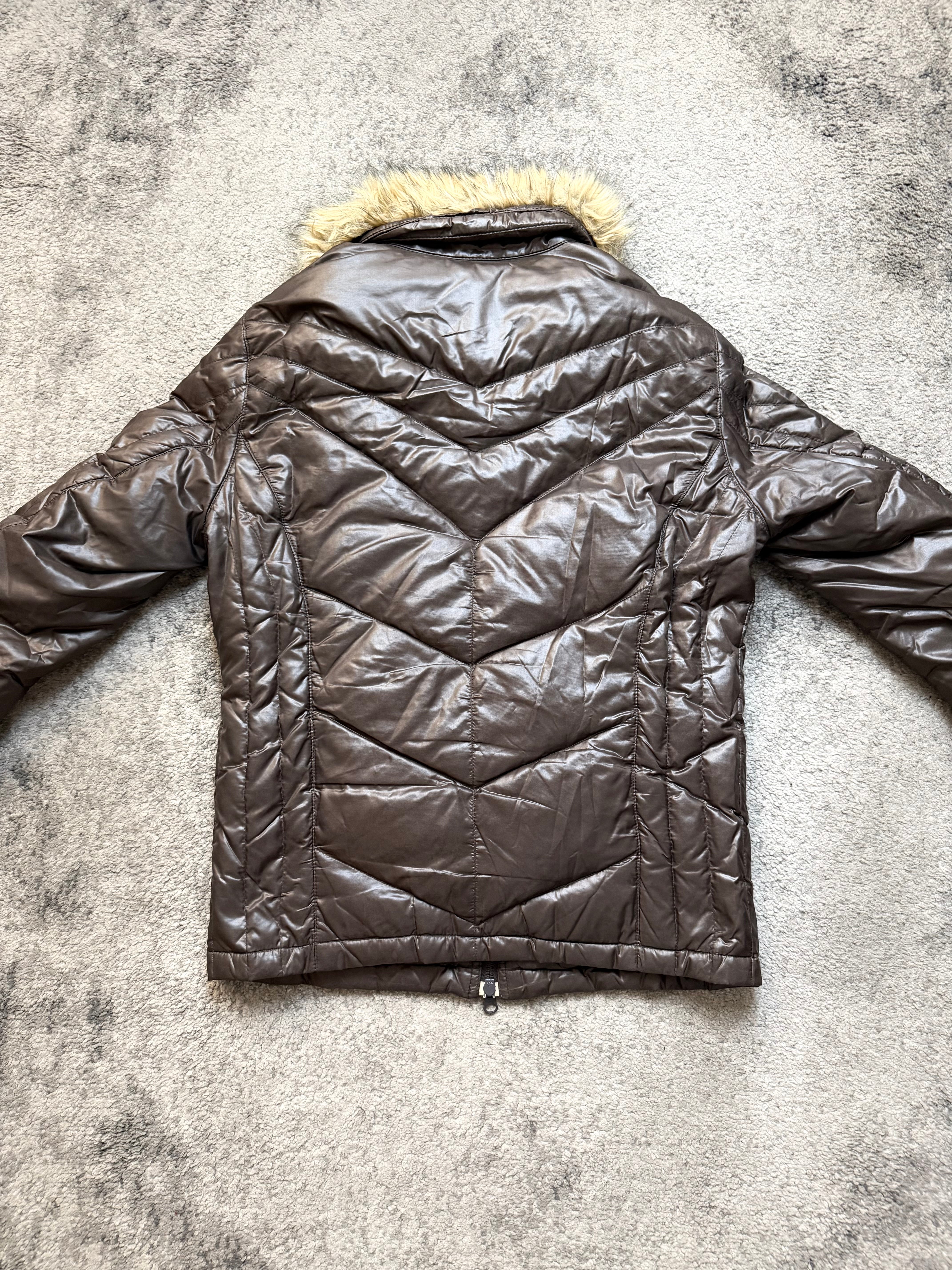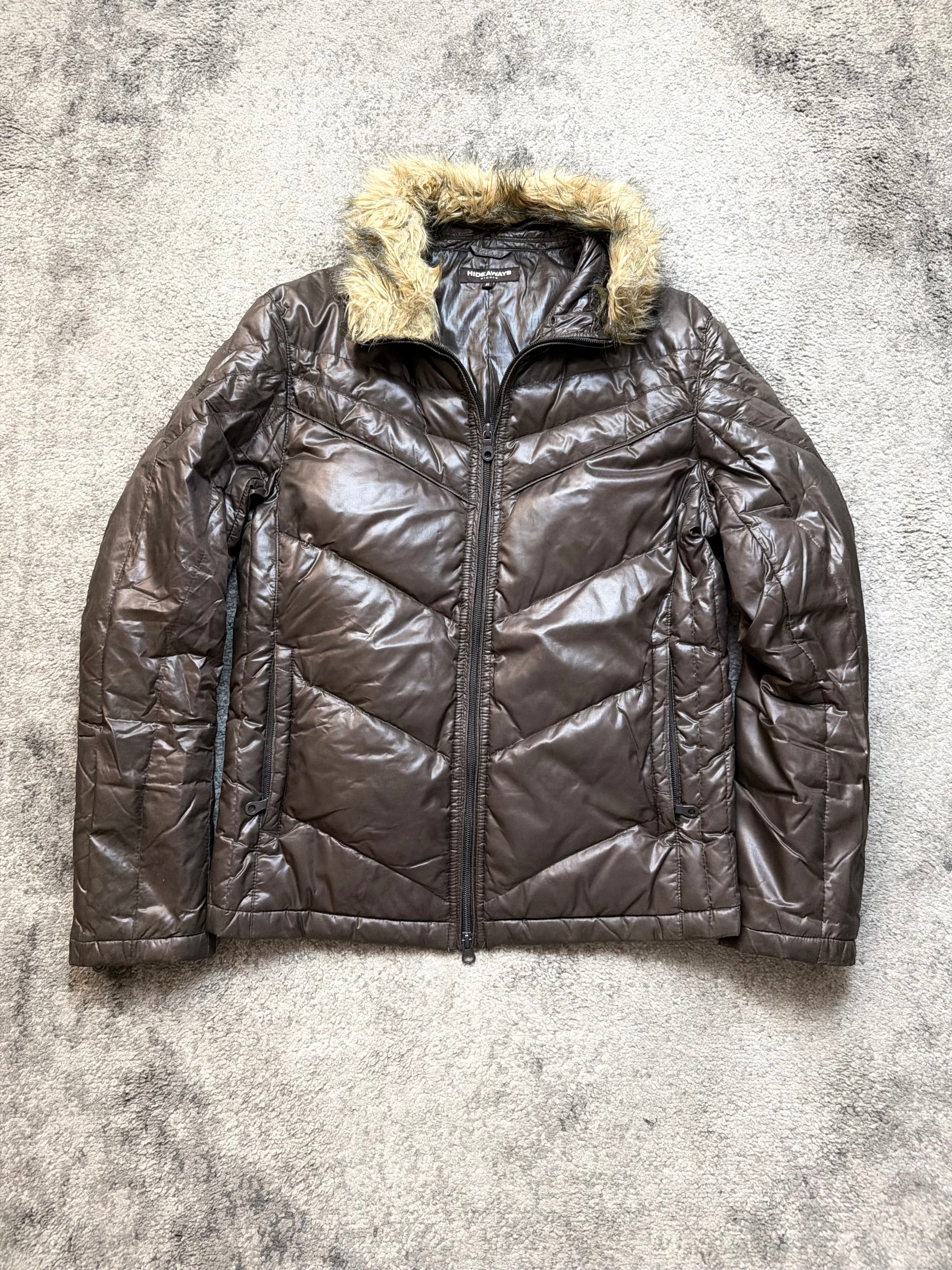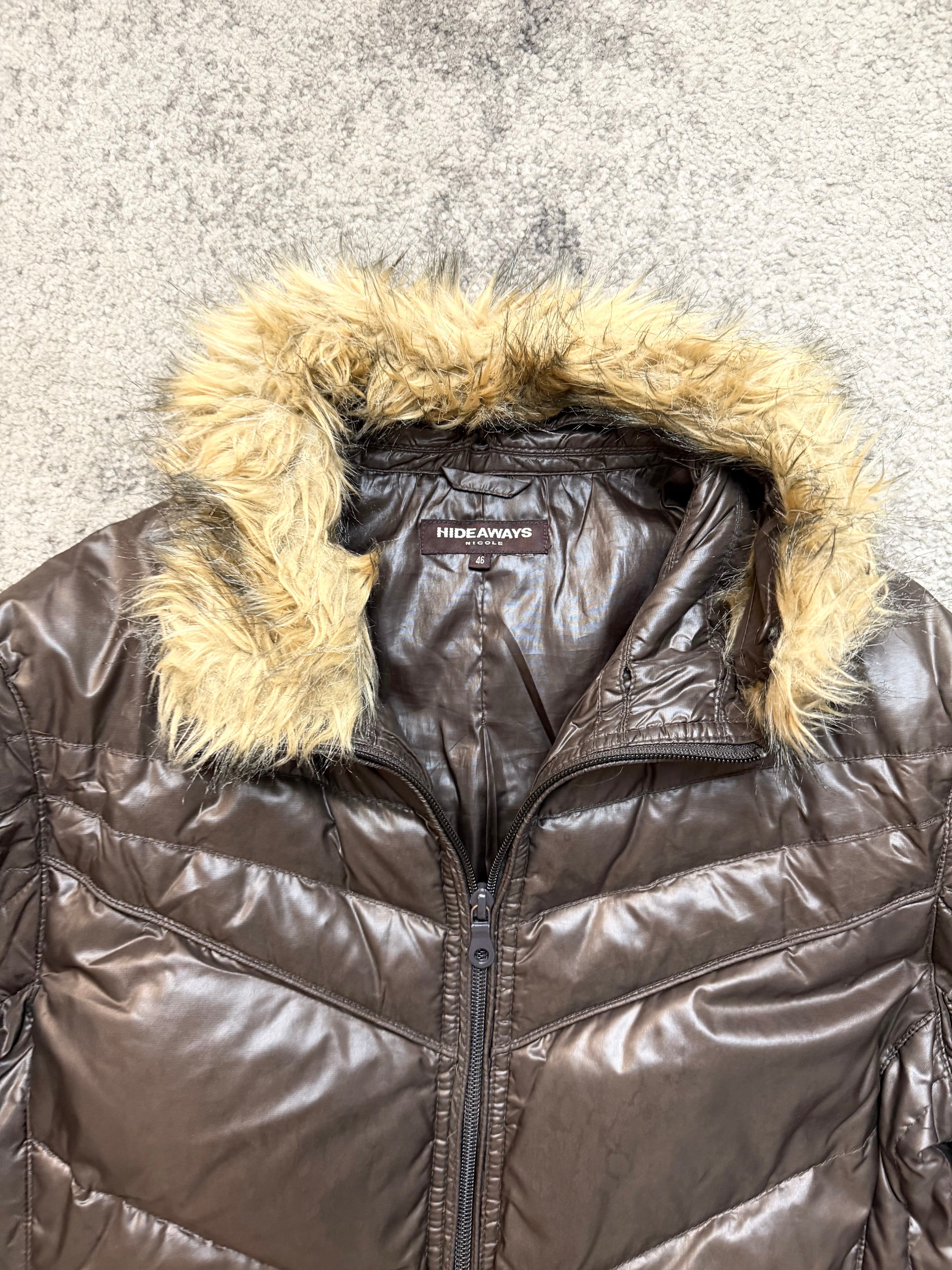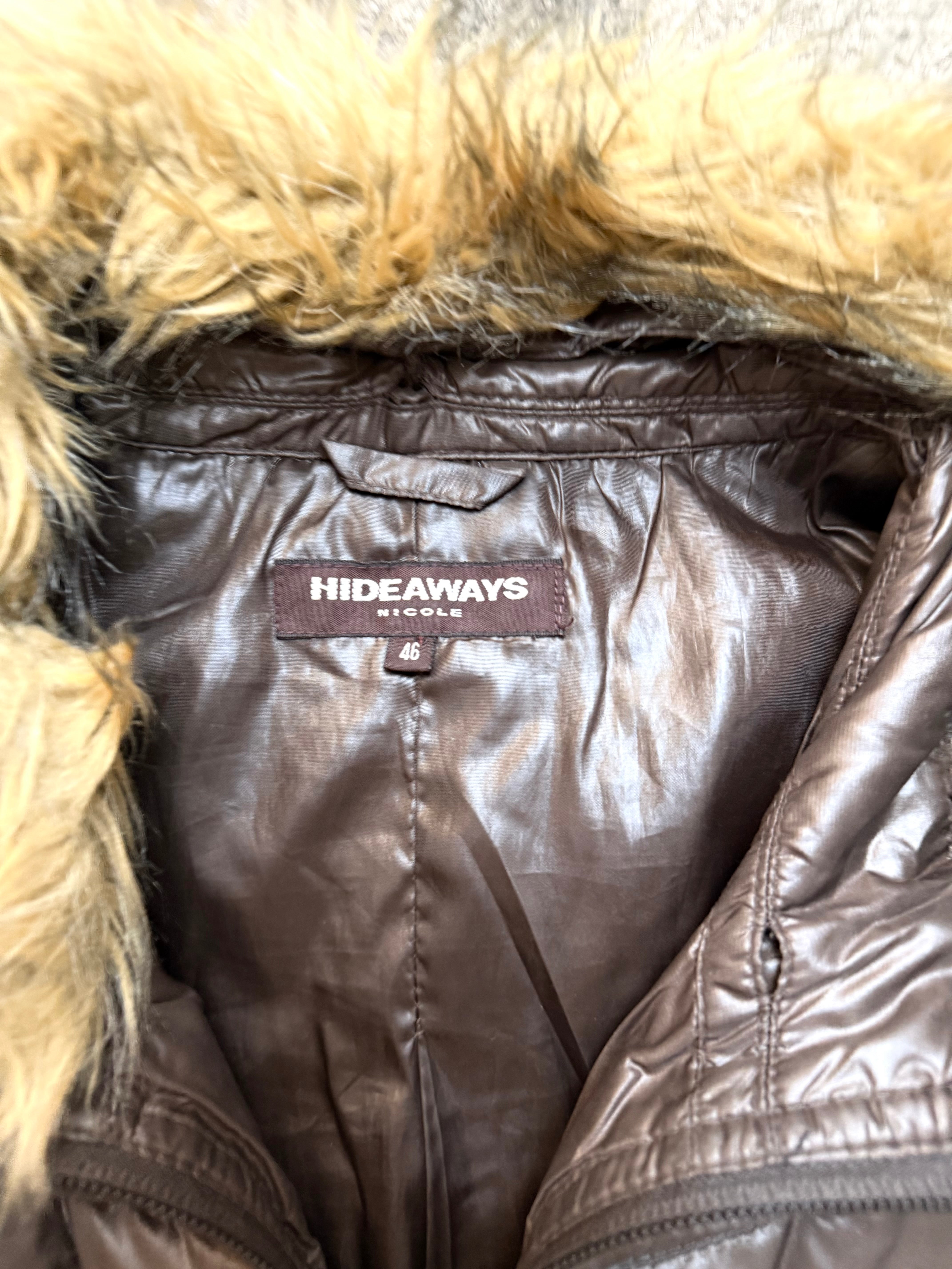 A deep-tone winter shell built with Japan’s quiet obsession for detail. This HIDEAWAYS piece channels that late-90s/early-00s archive sensibility — clean, strong silhouette, subtle attitude, and a texture that feels lived-in yet refined. The rich brown tone with subtle sheen and detachable faux-fur hood trim gives the jacket a moody, cinematic energy — Kyoto alley winters, smoked coffee, breath in the cold air.