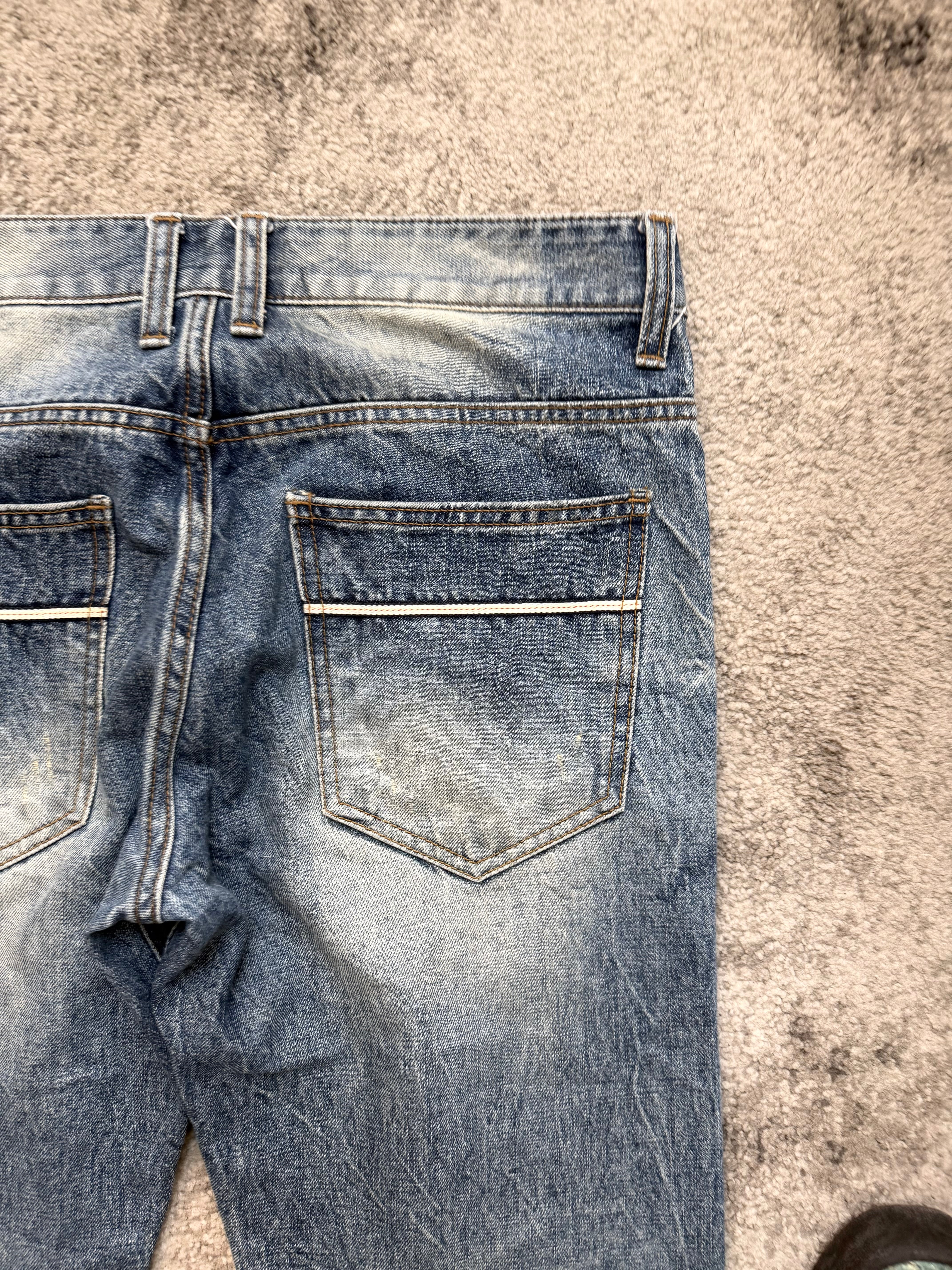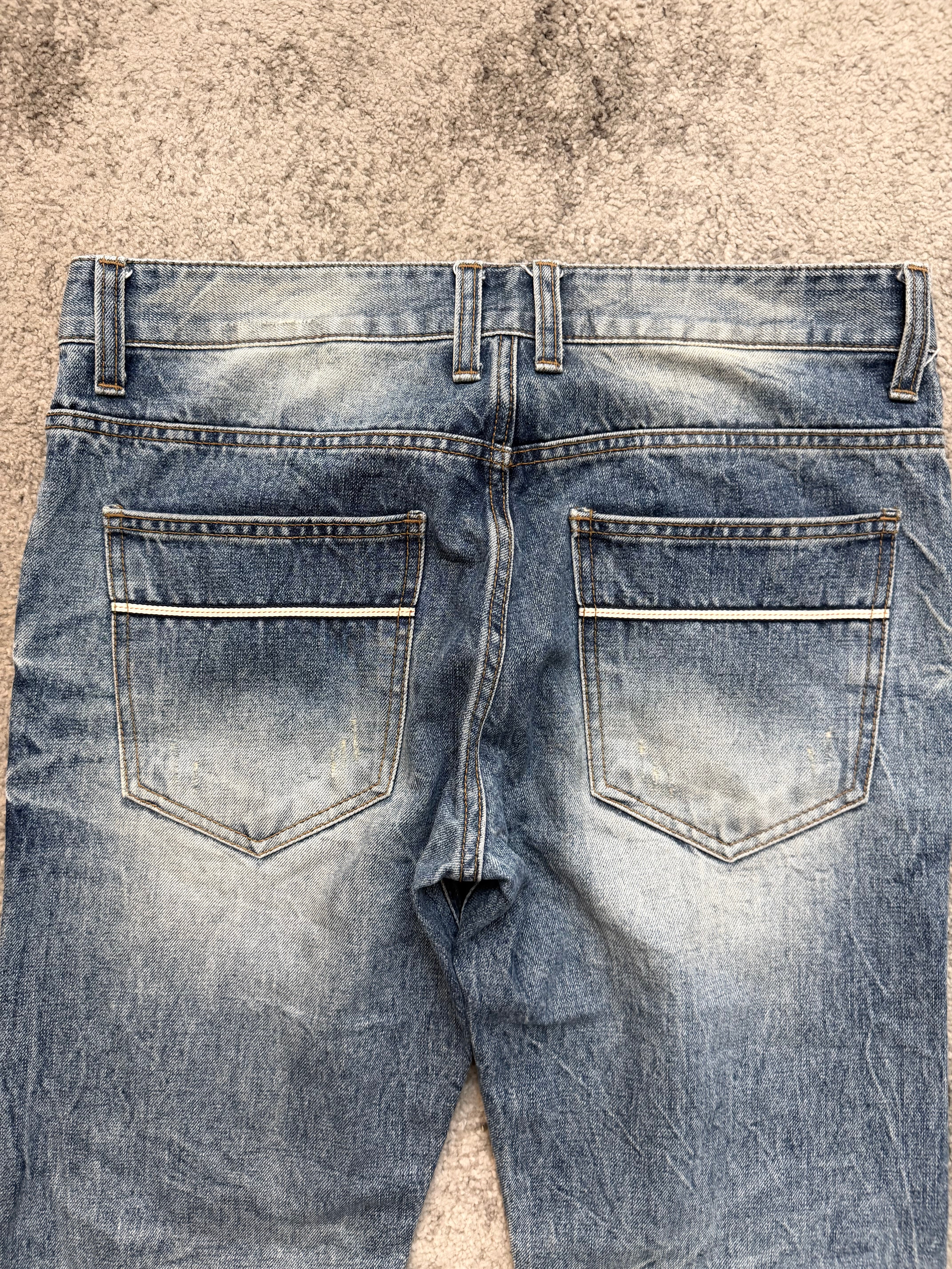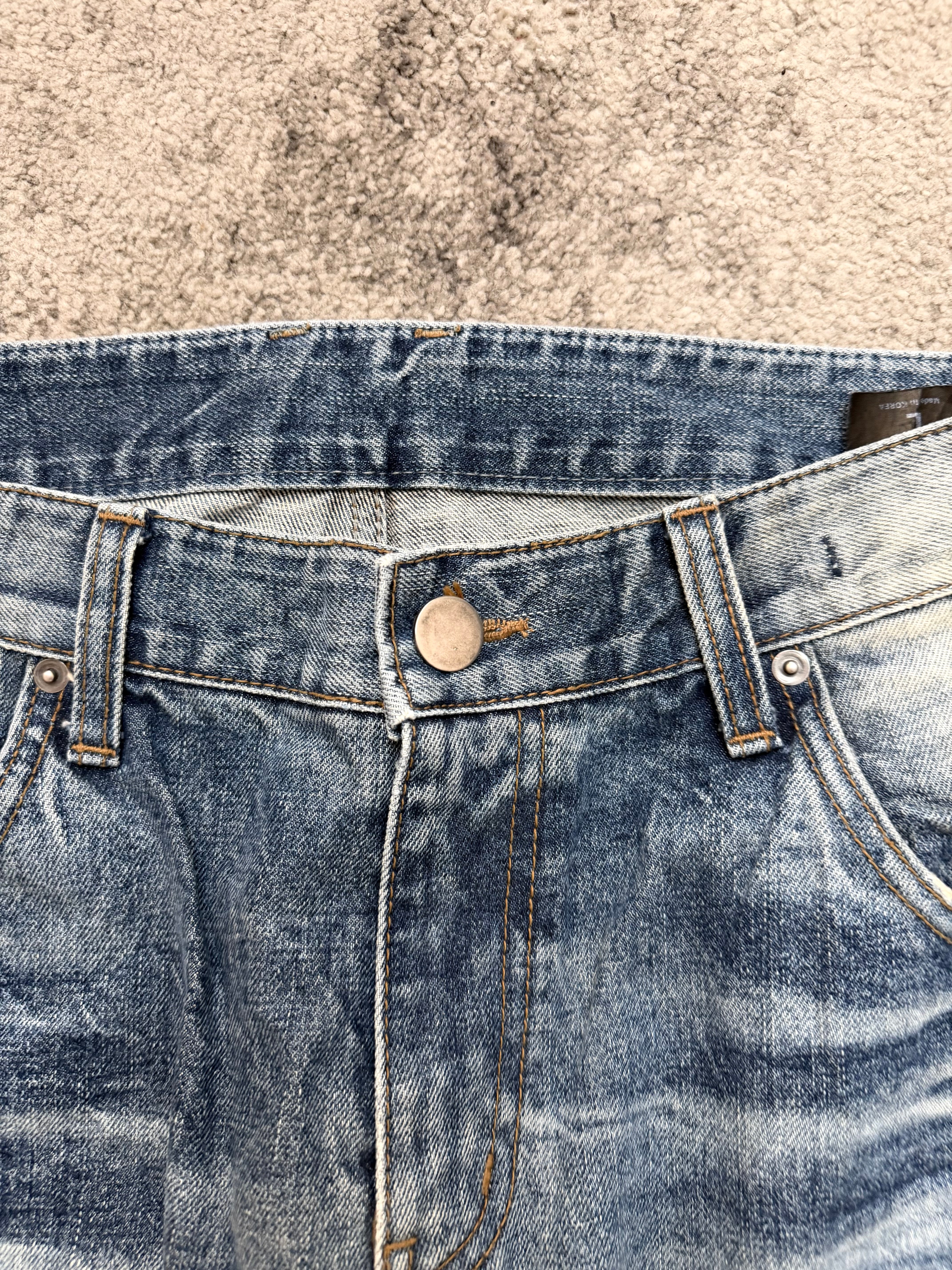 A pair of washed-out, sun-bleached Japanese denim that feels like it’s lived a life in Tokyo’s backstreets and late-night rooftops. Authentic wear patterns, natural creasing and a soft broken-in handle — this pair carries that effortless, lived-in archive energy.