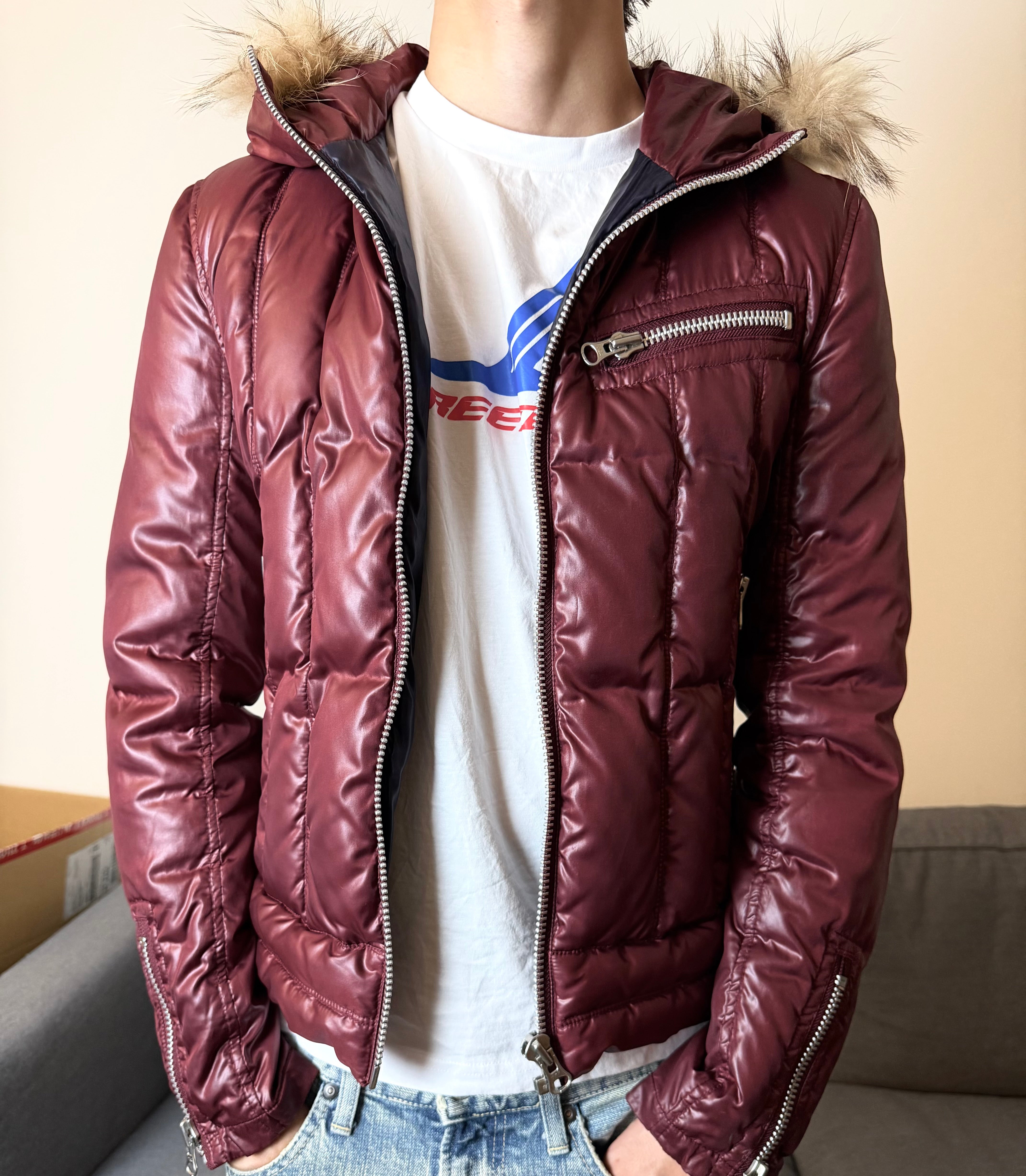 A rare IKKA piece with that unmistakable Japanese archive energy — bold, clean, and quietly rebellious. The deep crimson gloss finish gives the jacket a luxurious sheen, while the structured quilting feels straight out of a Number (N)ine winter runway.