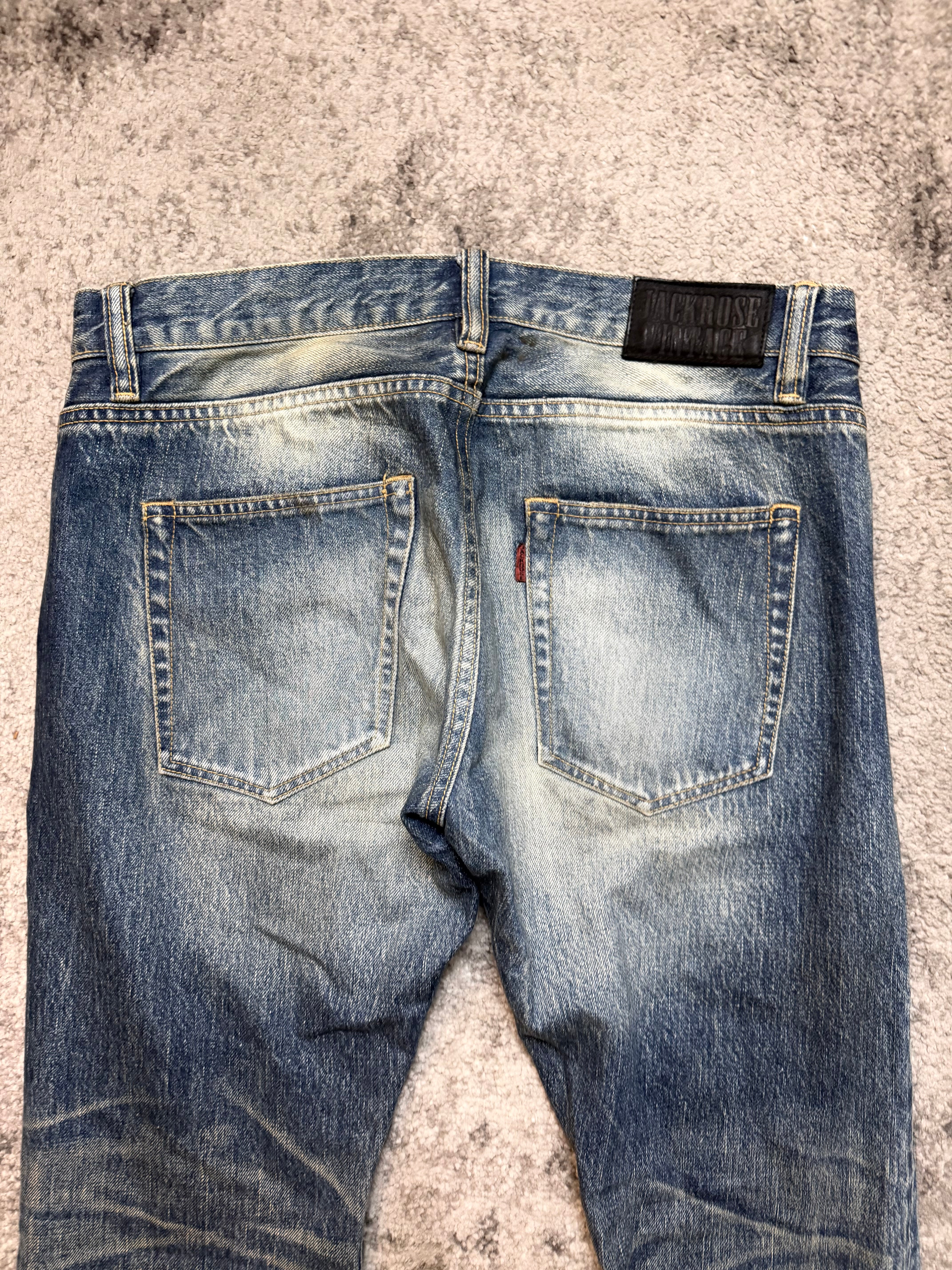 A pair that feels like it’s been sprinting through Tokyo nights for years—sun-bleached thighs, cracked-ice fades at the hem, and that unmistakable JACKROSE attitude. Understated, gritty, and full of motion.