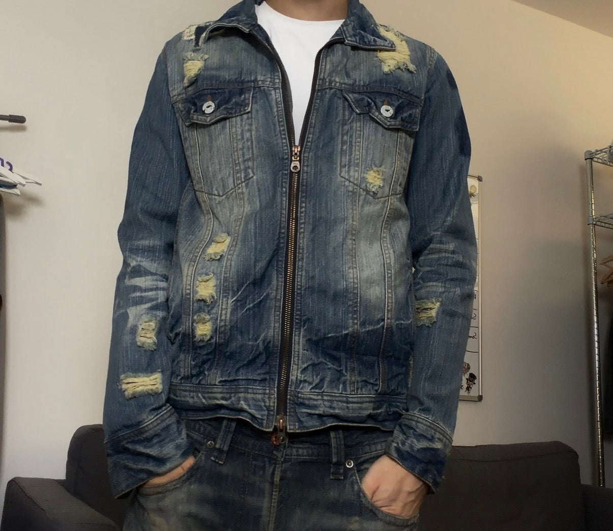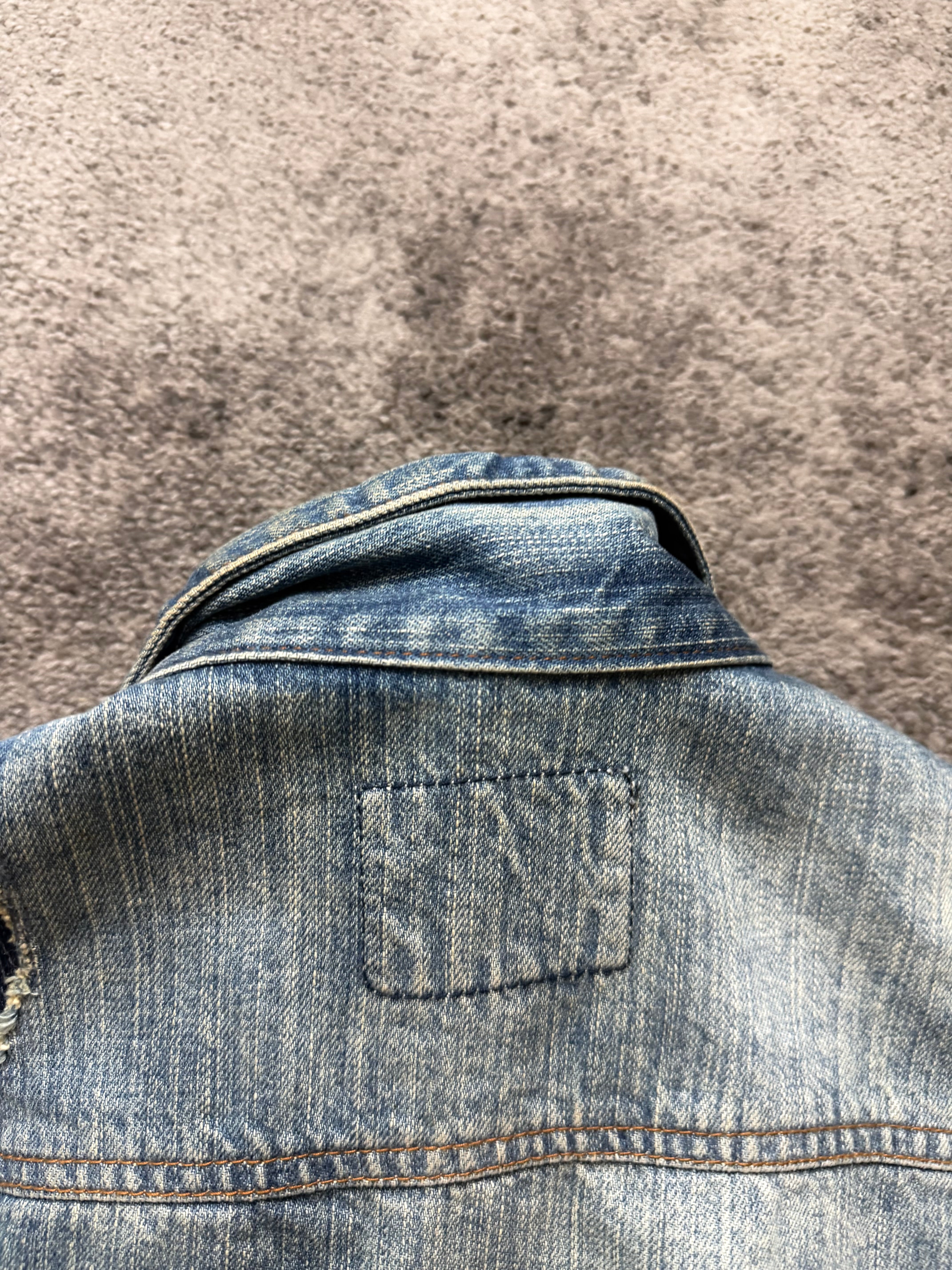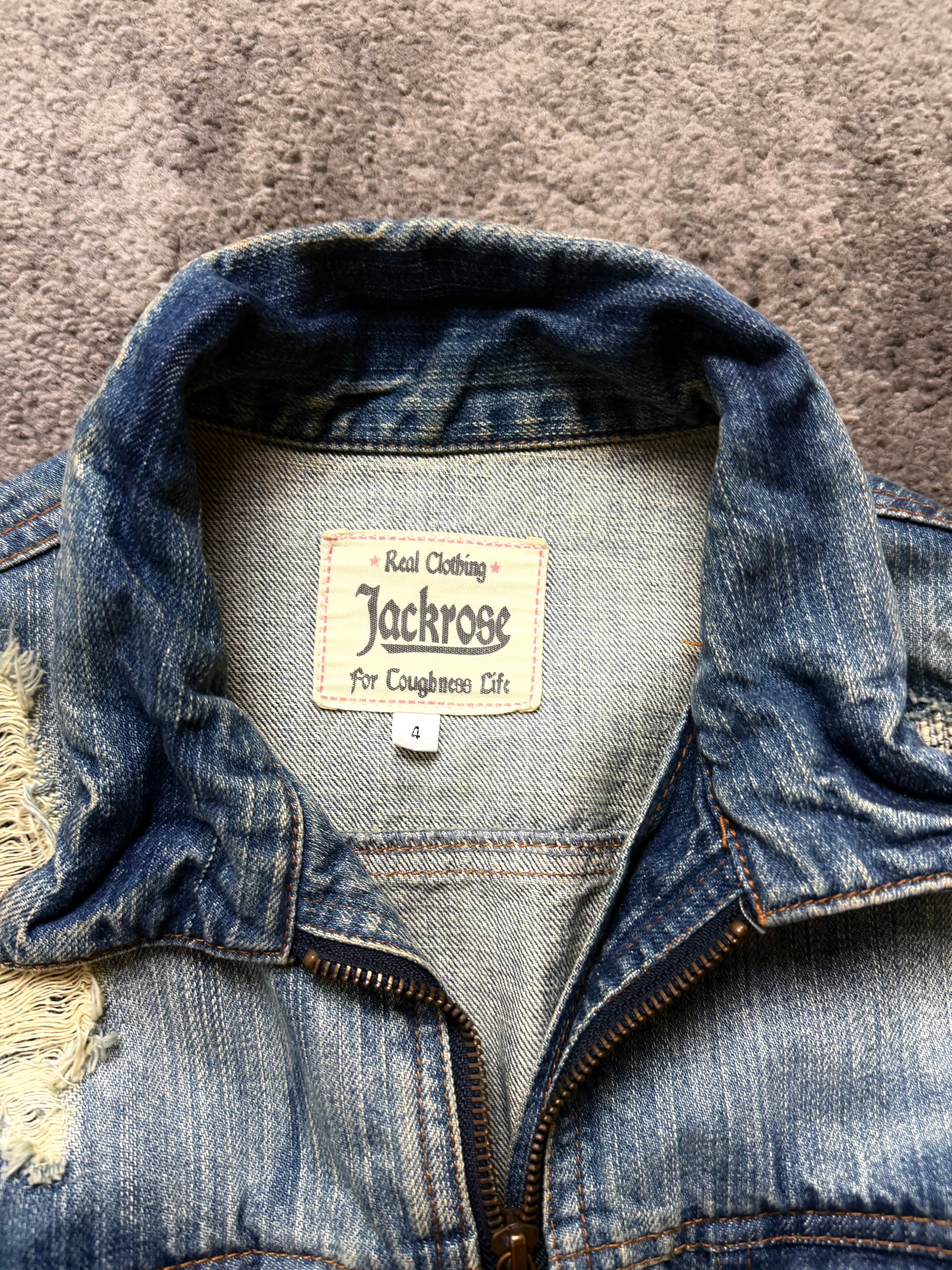 Raw, worn-in, and full of attitude. This JACKROSE denim jacket captures that early-2000s Tokyo underground spirit — somewhere between Number Nine, ifsixwasnine, and true Japanese archive style. Faded, ripped, and unapologetically cool.