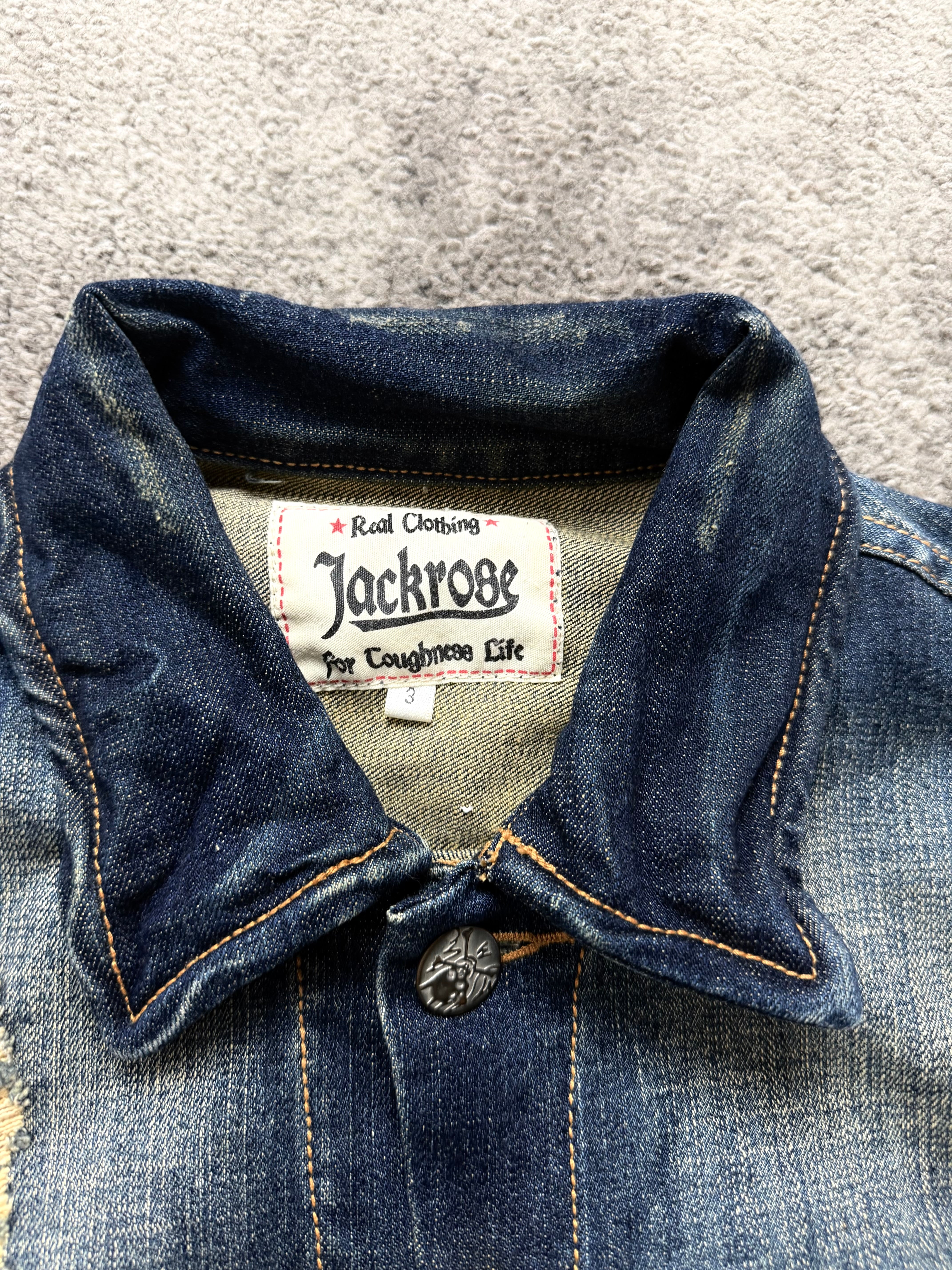 This JACKROSE denim jacket captures that early Number Nine / ifsixwasnine / Japanese archive style spirit — worn-in attitude with sharp structure.