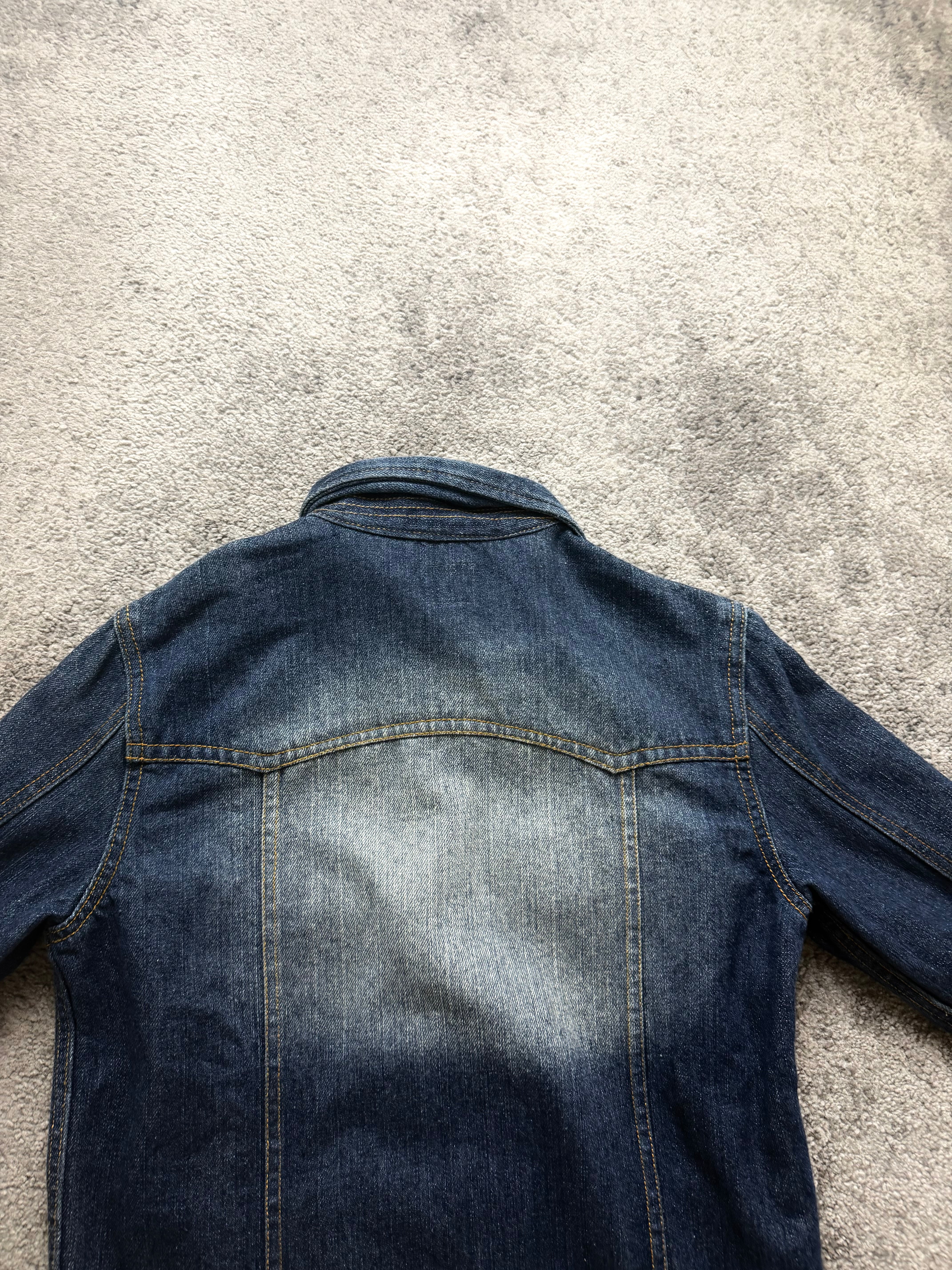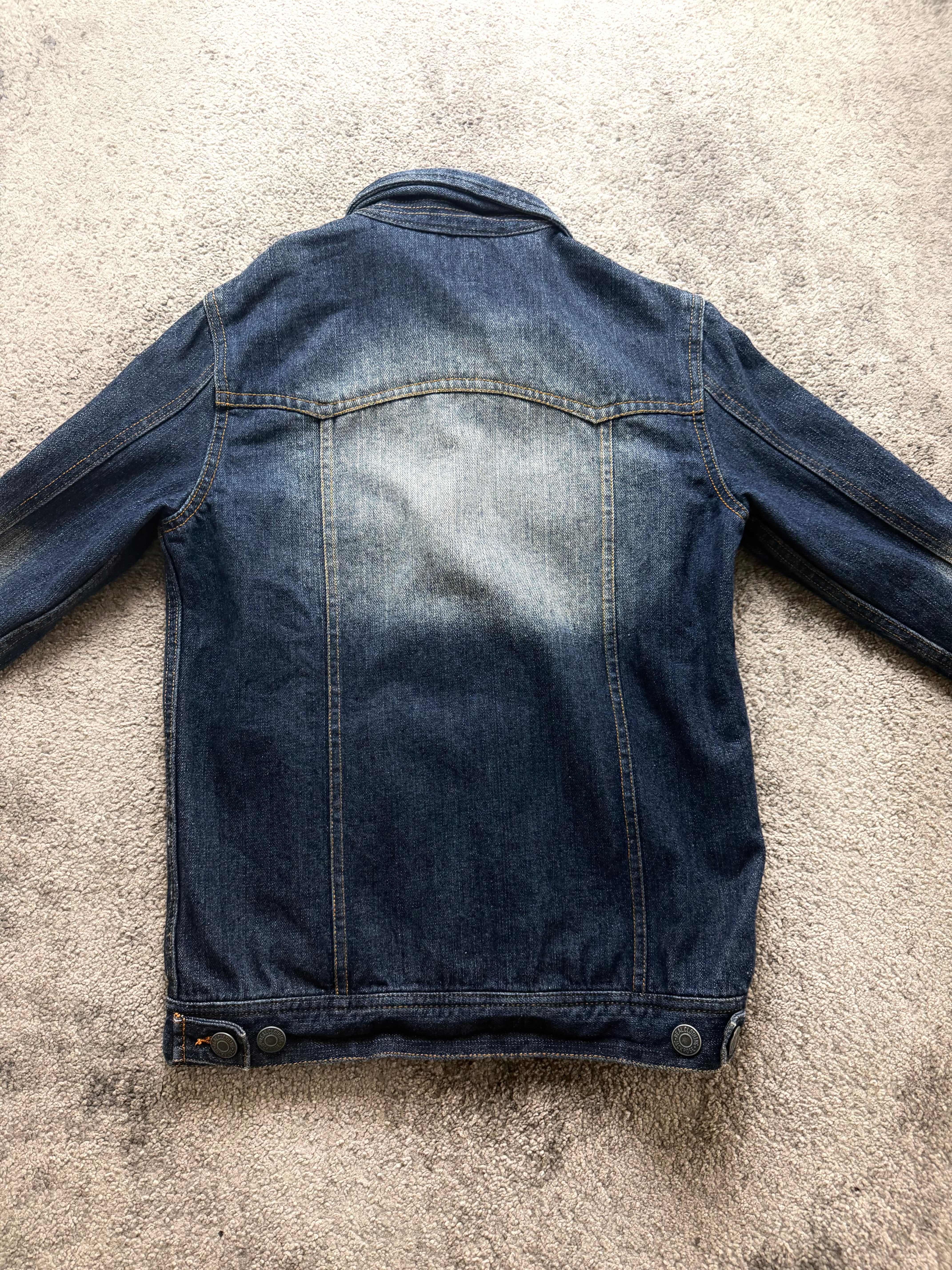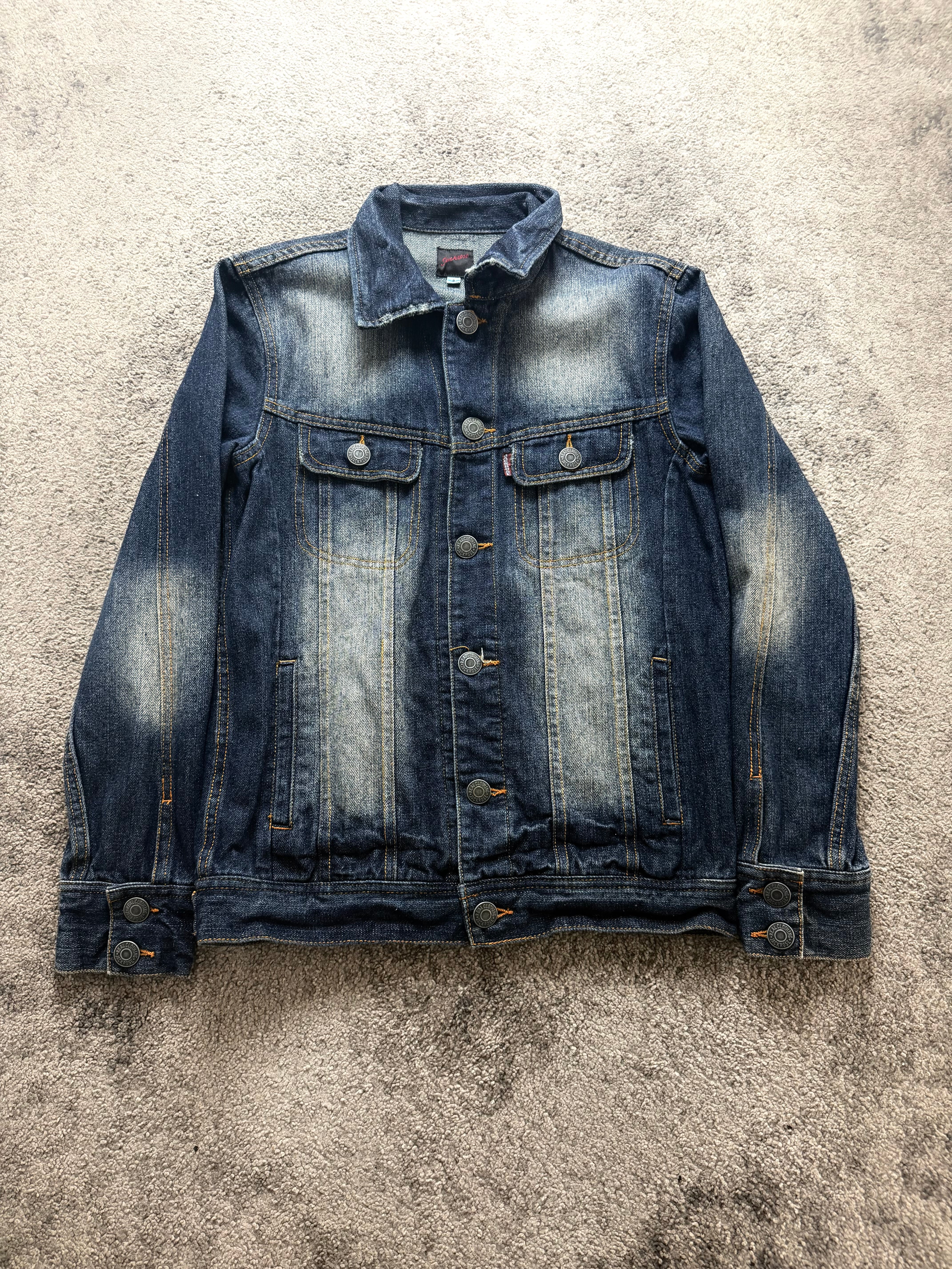 Condition: Very good pre-loved condition with intentional high-contrast fading on chest and sleeves. Natural whiskering and wash effects add character. No major flaws – sturdy and ready to wear.