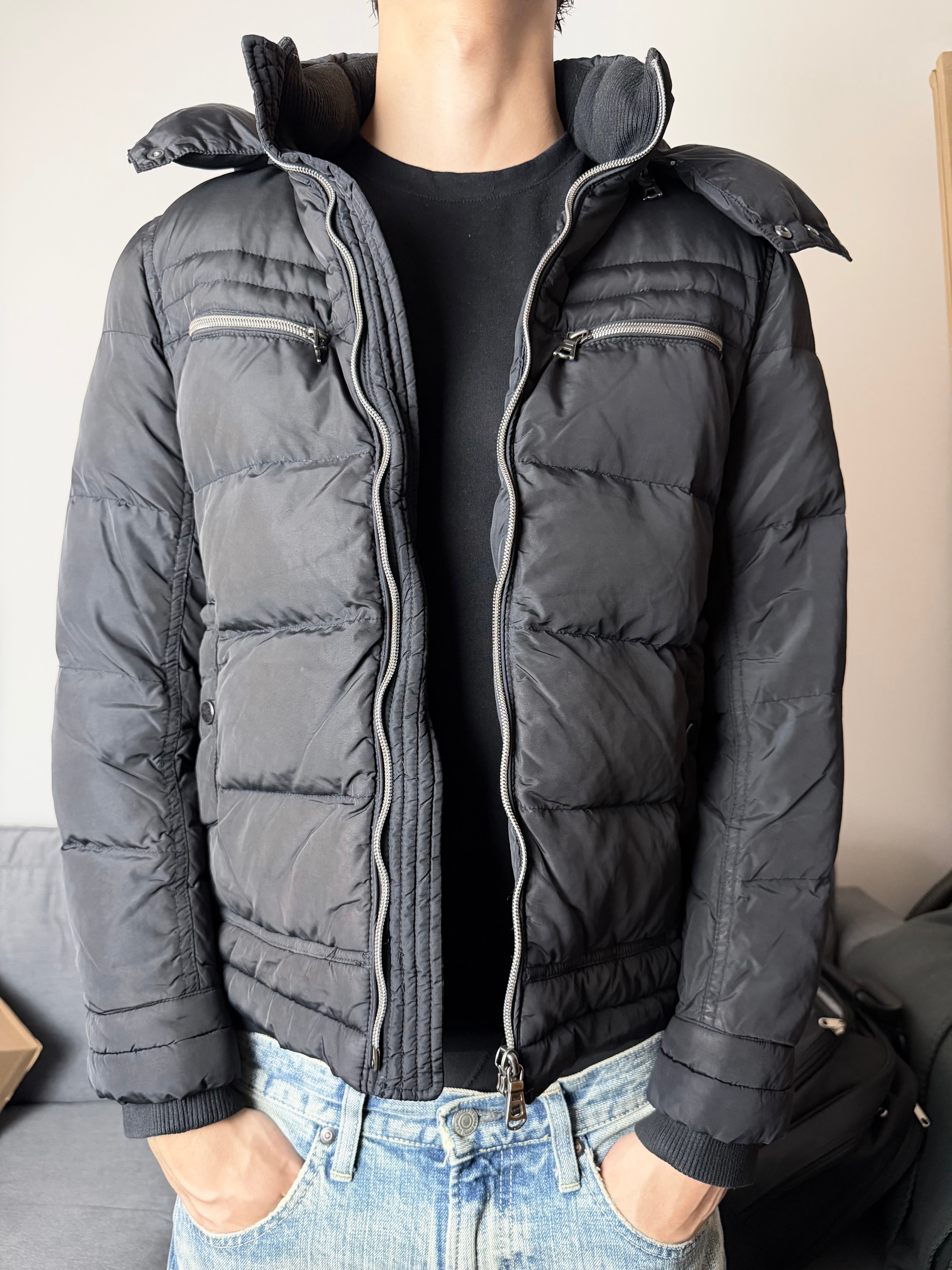 Made from a smooth matte nylon shell, it features a detachable hood, twin chest zippers, and ribbed cuffs for a structured fit. The interior lining adds subtle contrast, while the down filling provides warmth without heaviness. Built for both Tokyo’s chill streets and timeless daily wear.