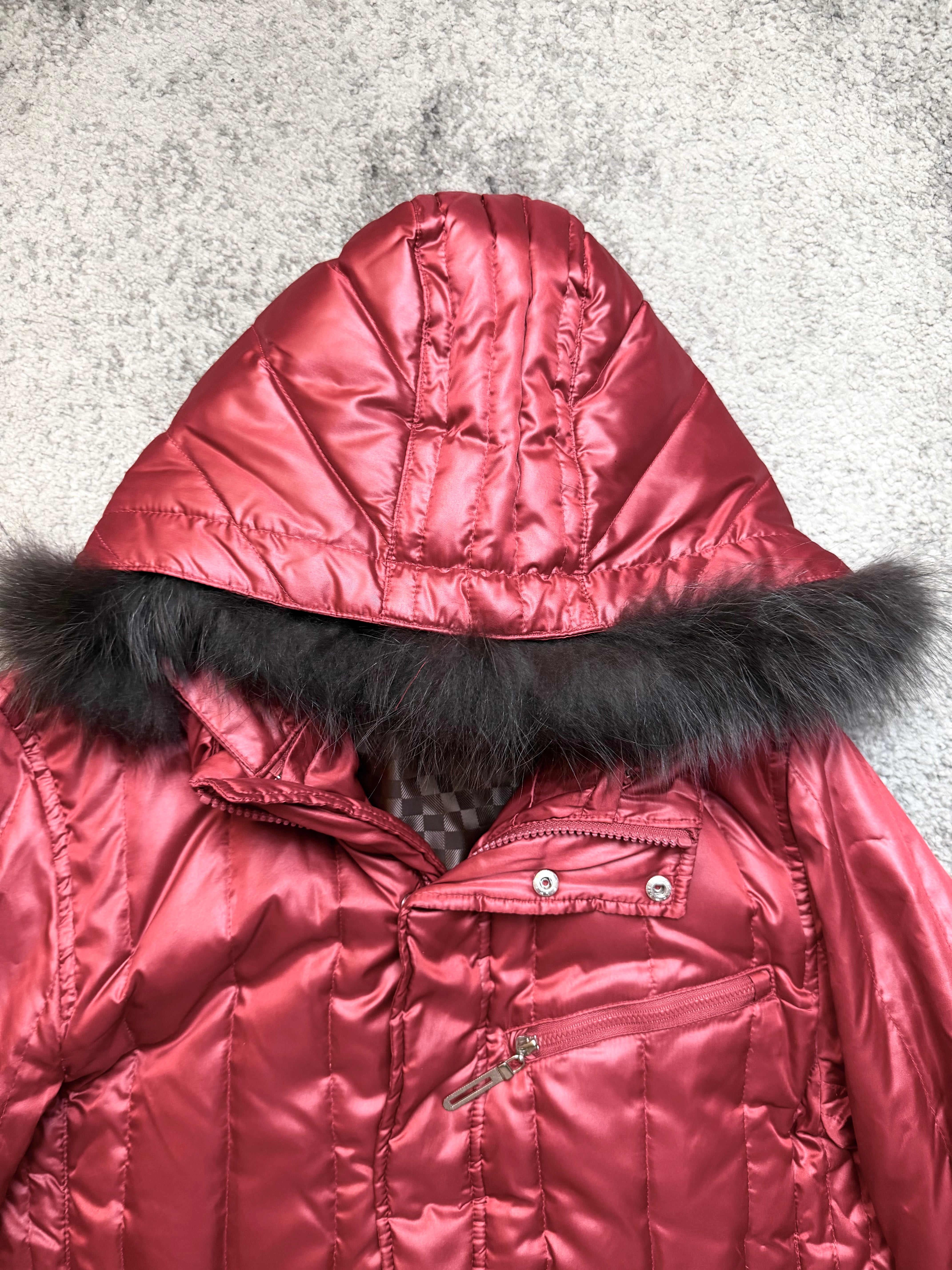 Material: Glossy insulated shell with full quilting, dense winter padding, faux-fur trimmed hood. Lightweight feel, strong protection.