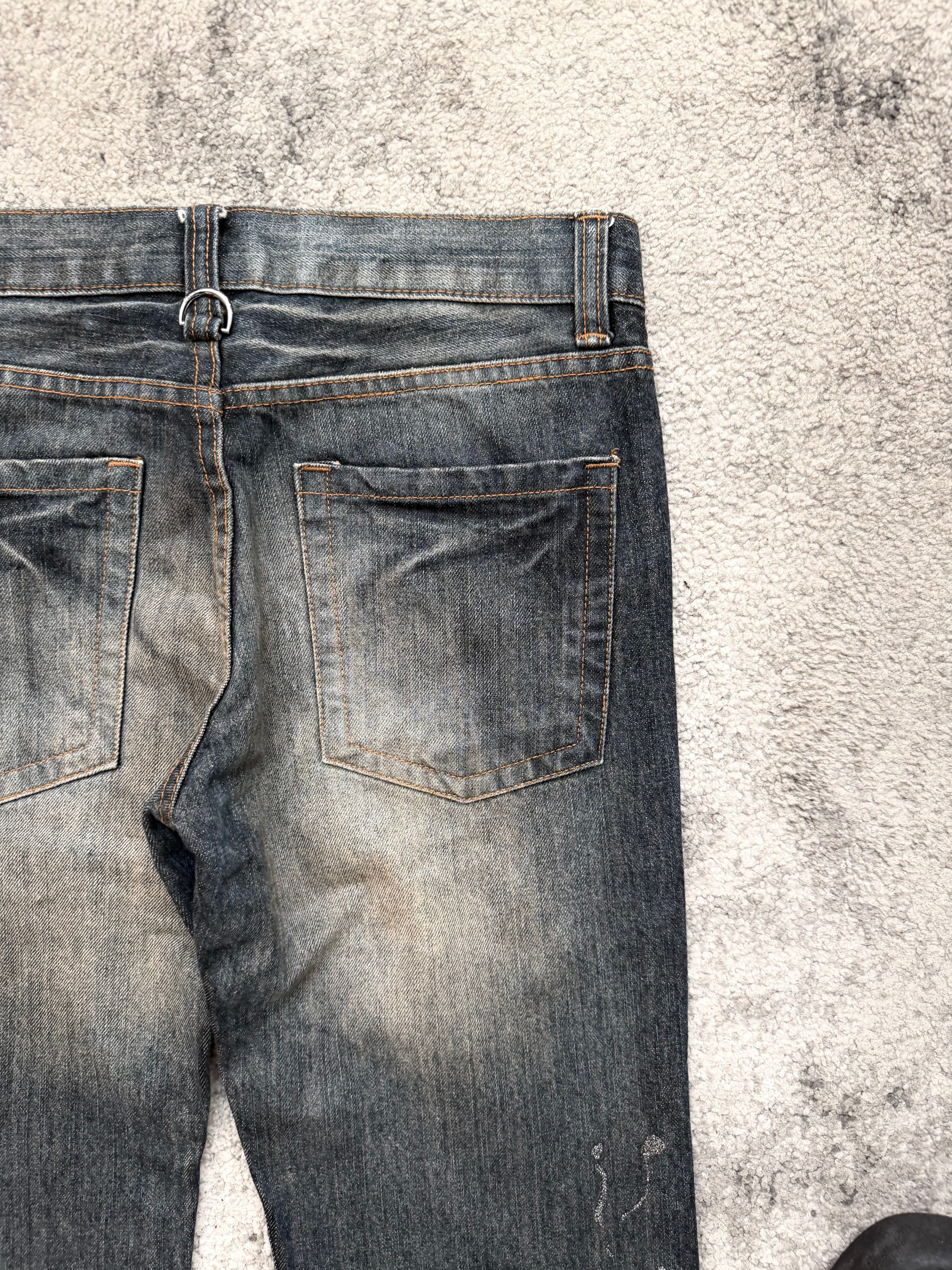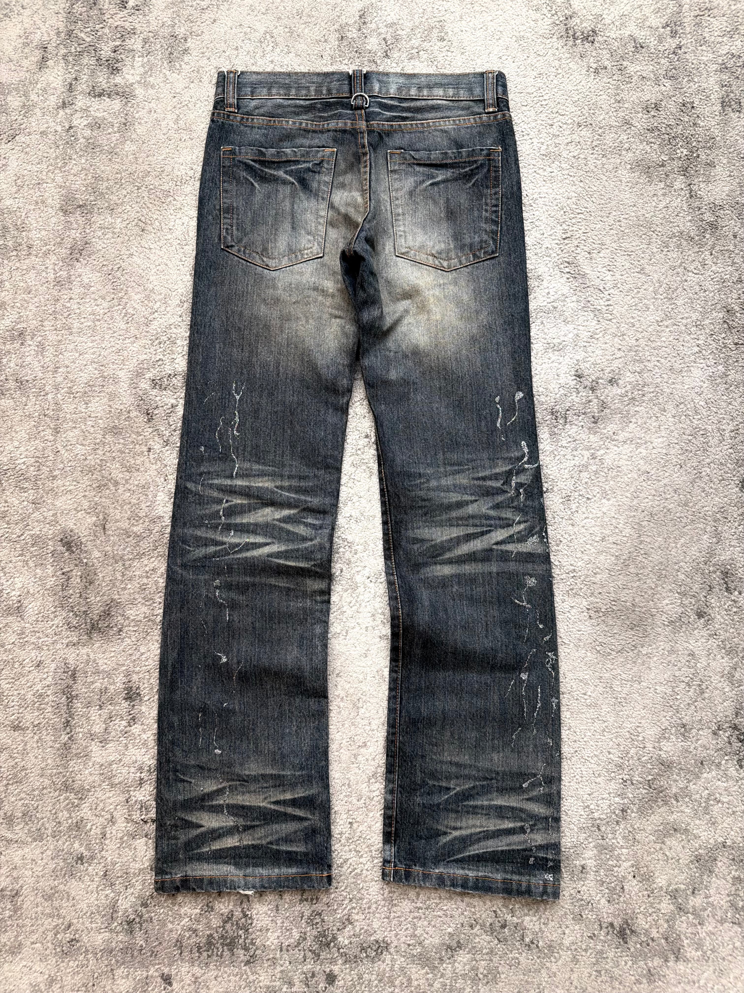 Constructed from heavyweight Japanese cotton, with deep whiskering, natural fading, and subtle paint traces that give it a true art-meets-utility feel. The slightly flared cut embodies that unmistakable archive silhouette seen in Number (N)ine and ifsixwasnine.