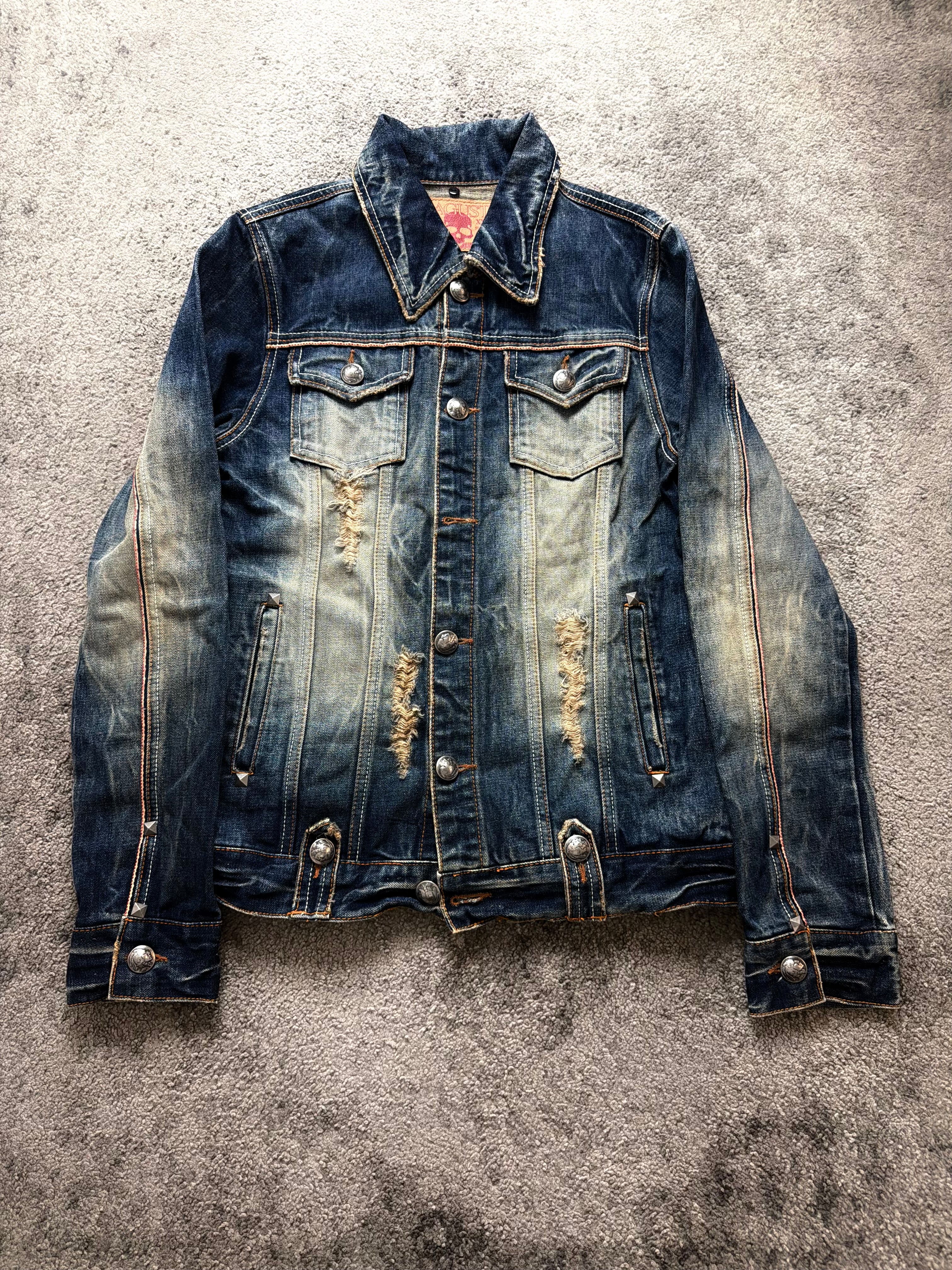 This LAGUST denim jacket captures that unmistakable Number Nine / ifsixwasnine / Japanese archive style spirit — rebellious, detailed, and perfectly worn-in.