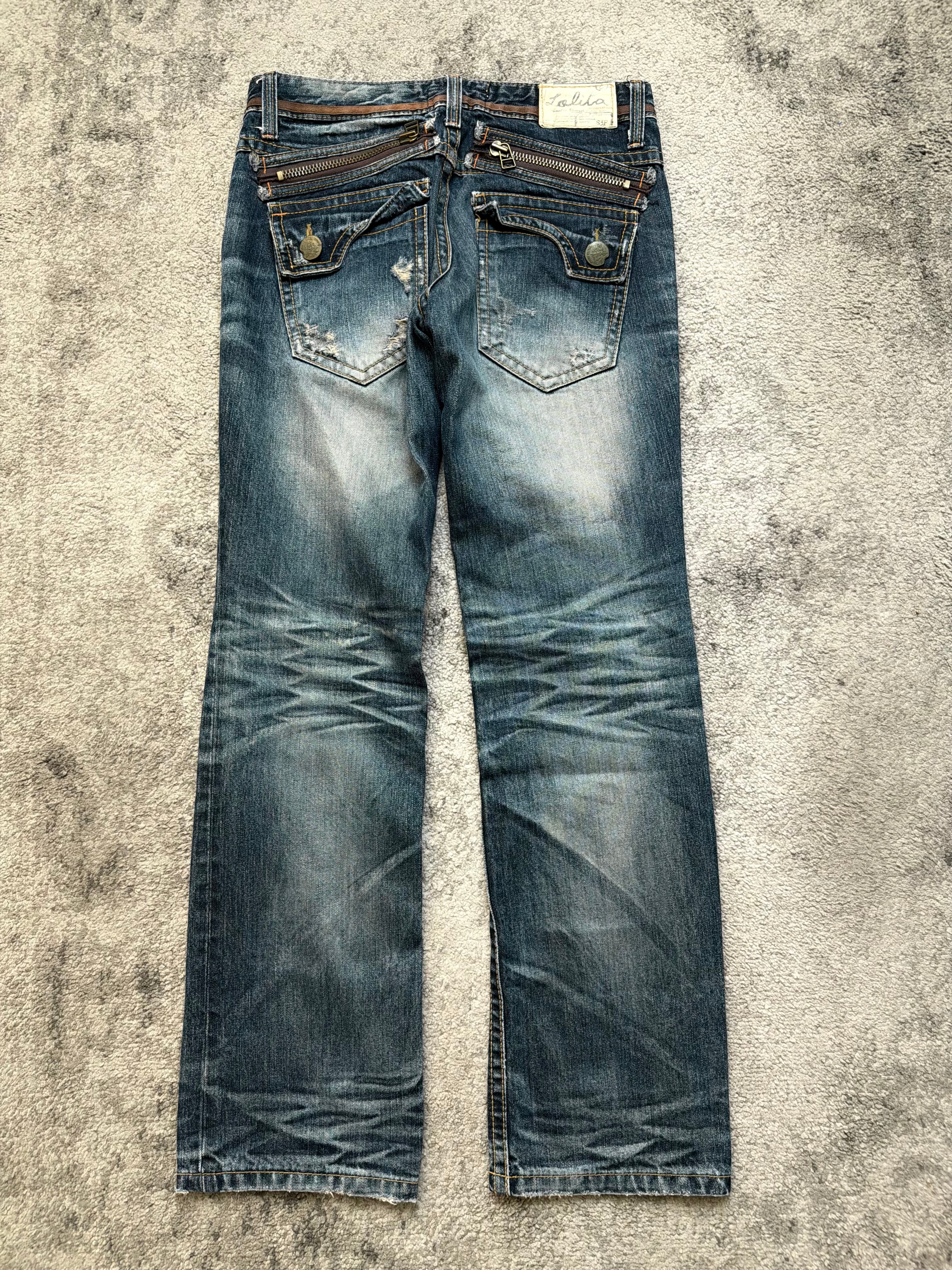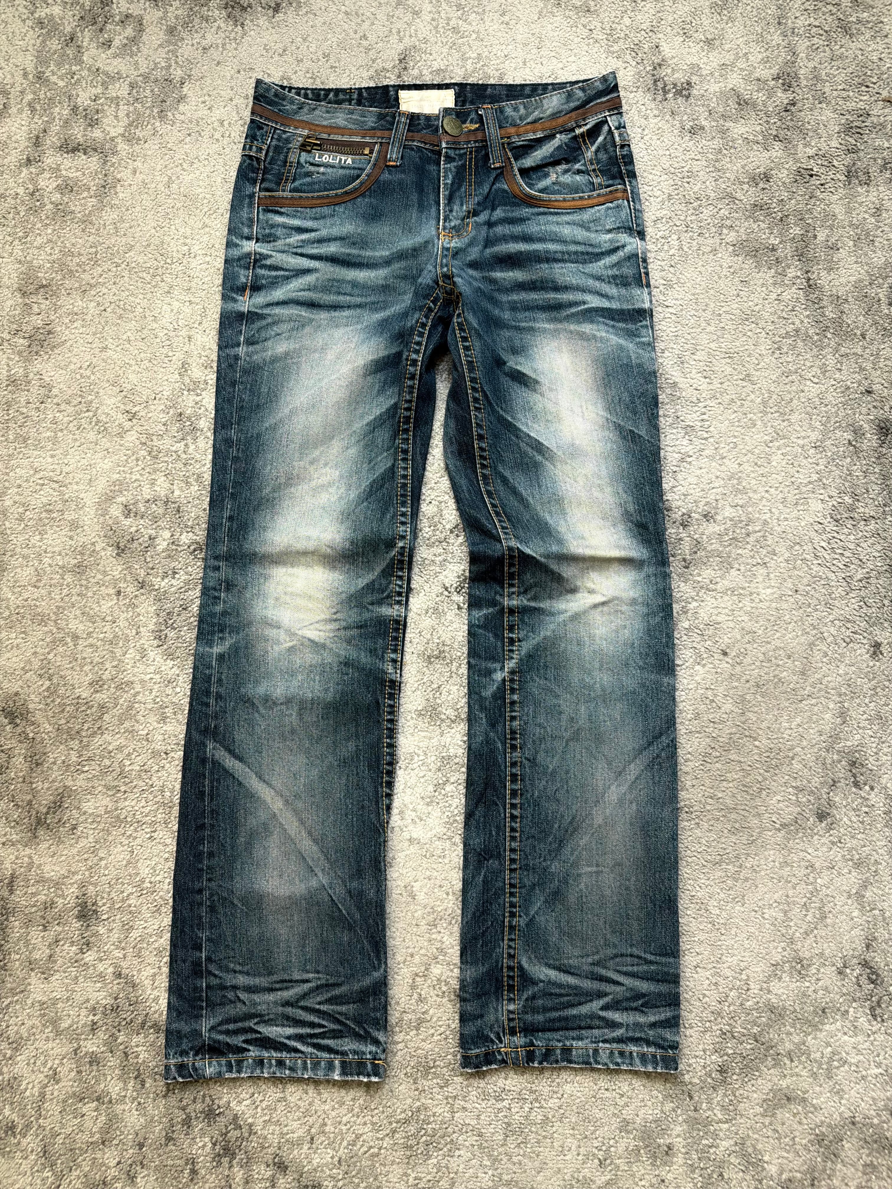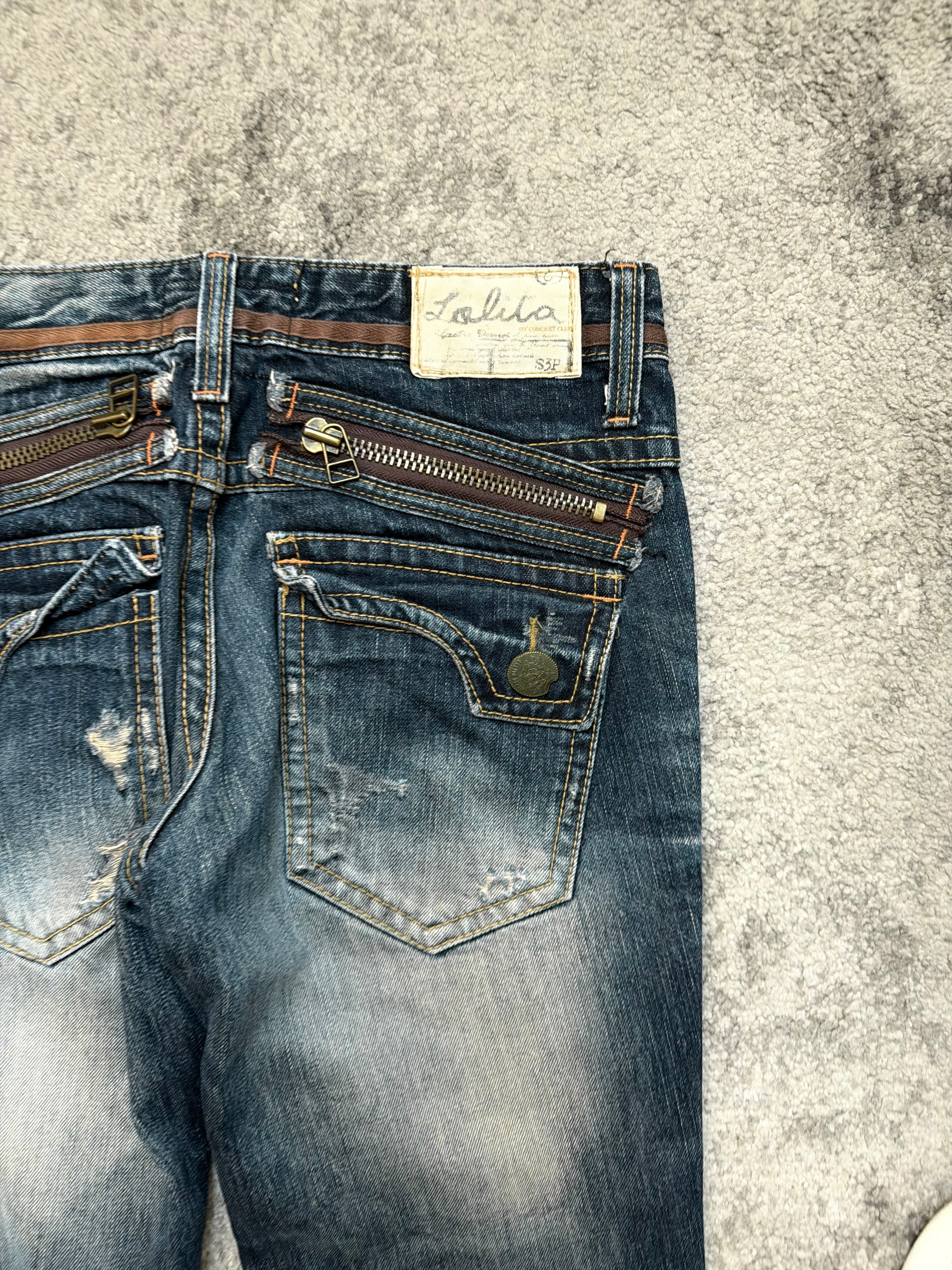 From Japan’s LOLITA line, this piece radiates that early-2000s host energy – sleek, confident, and unbothered. Faded indigo meets caramel stitching and zipper-backed details for a look that’s equal parts chaos and control.