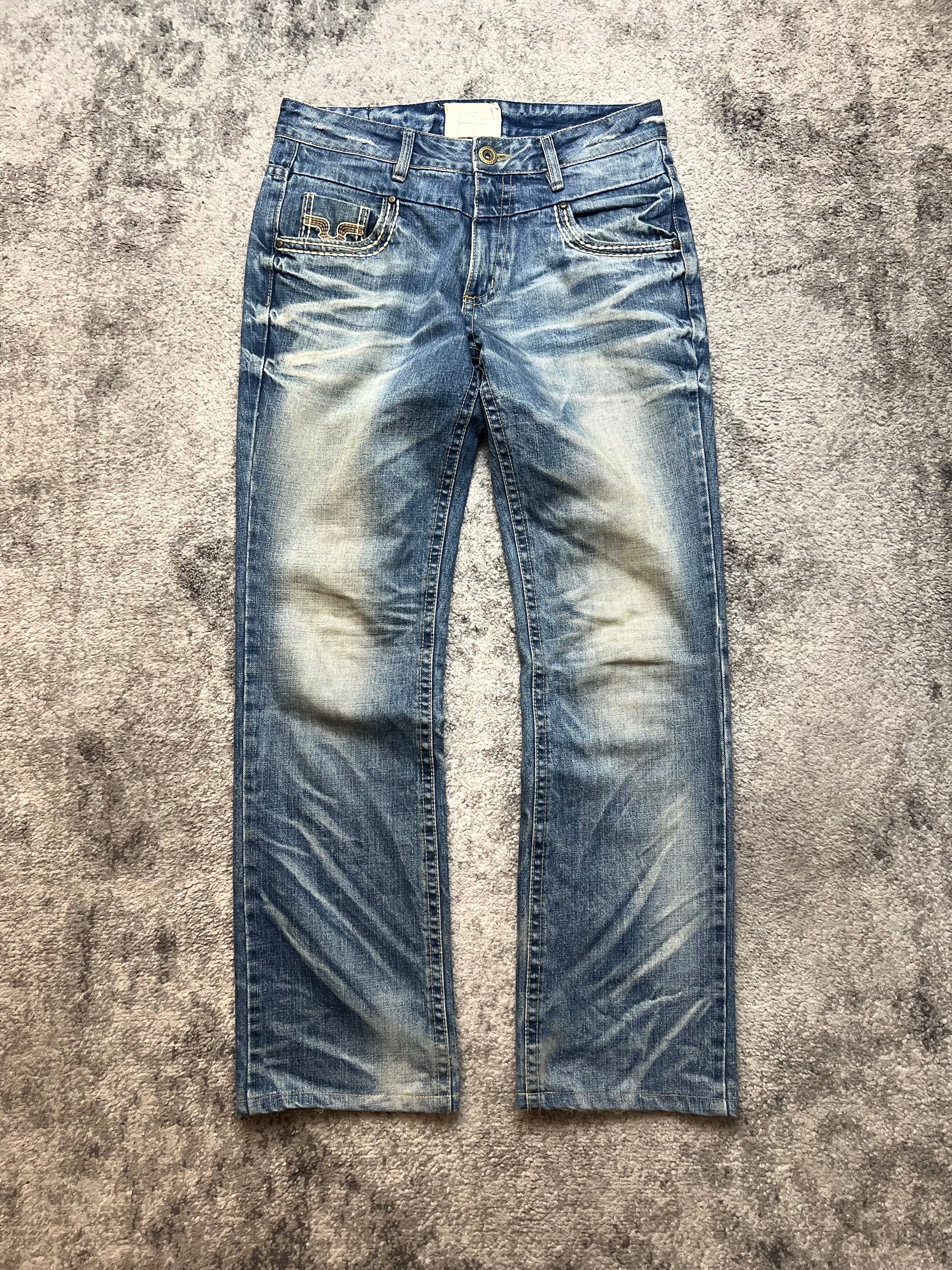 A perfect snapshot of Japan’s golden-era denim artistry — this LOLITA piece embodies that effortless mix of rebellion and precision craftsmanship. Washed indigo cotton with deep fading, textured creases, and a naturally broken-in tone that feels alive with history.