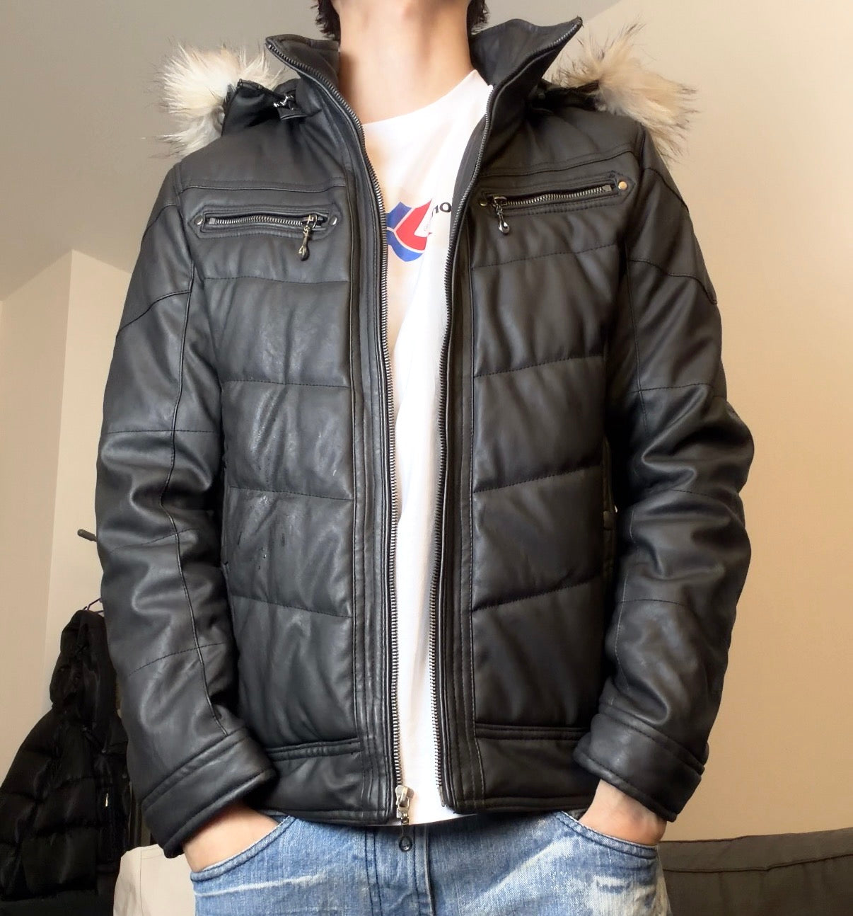 Styling: Think late-night Shibuya rooftops. A winter host jacket with a subtle biker attitude. The fur hood gives it that Gyaruo energy; the quilted panels keep it archive-lean and sharp. Works with flared denim, tucked knits, chains — anything that leans into quiet chaos.