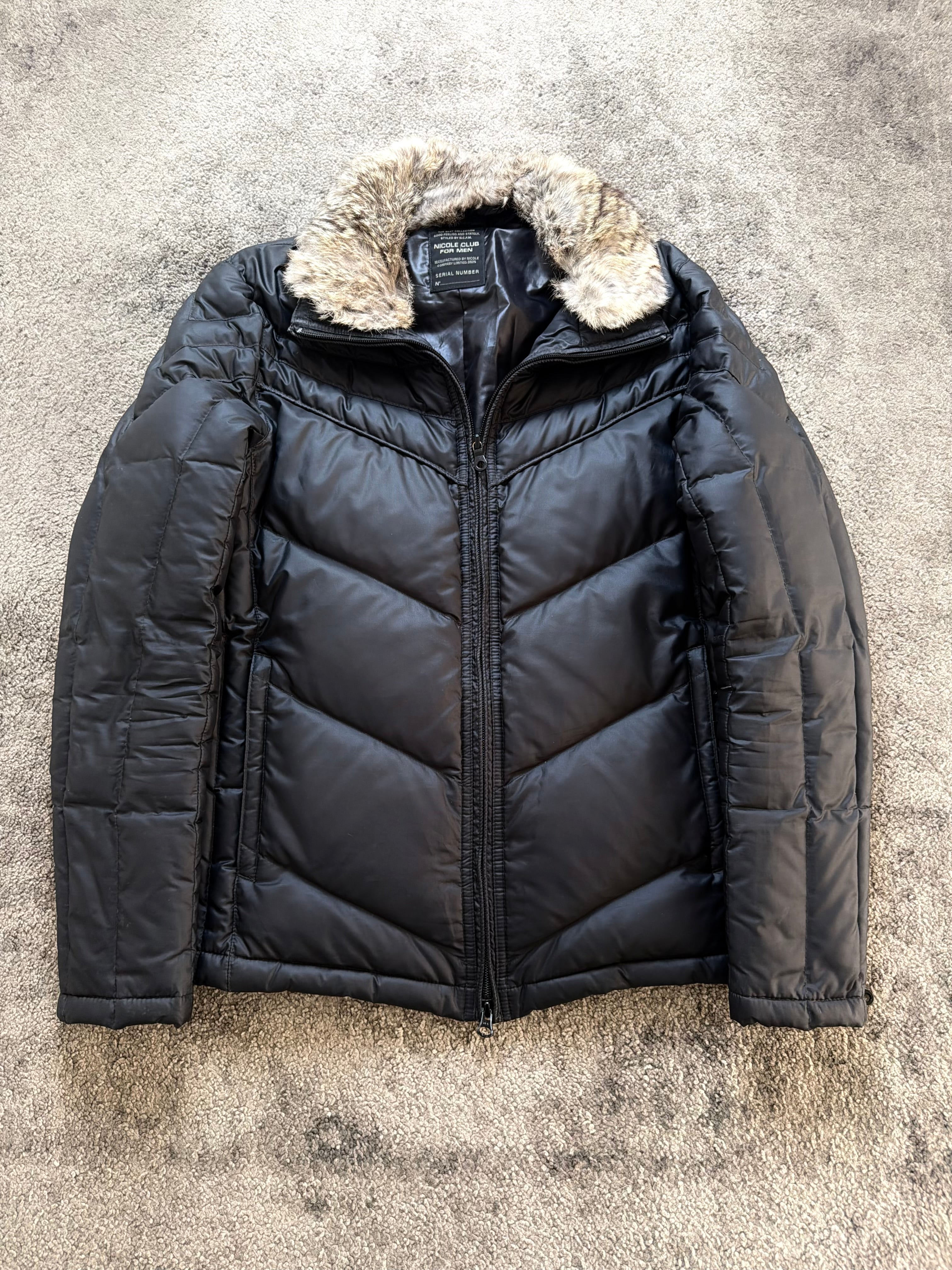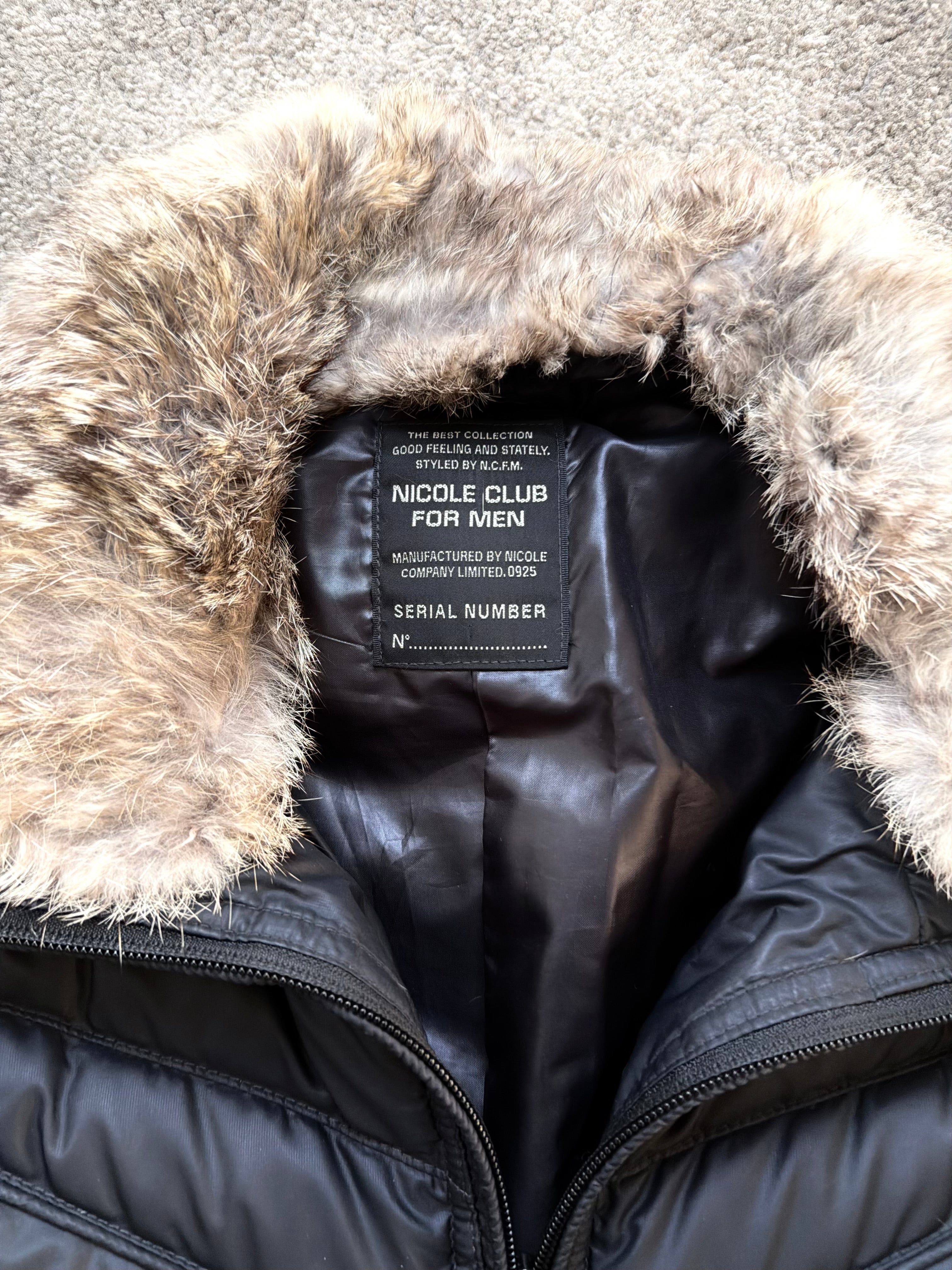 A clean yet emotional archive piece from NICOLE CLUB, rooted in early-2000s Japanese fashion culture. This jacket balances restraint and attitude perfectly — glossy black quilting, a soft fur-trimmed collar, and a sharp silhouette that quietly echoes Number (N)ine and ifsixwasnine aesthetics. No loud branding, just mood.