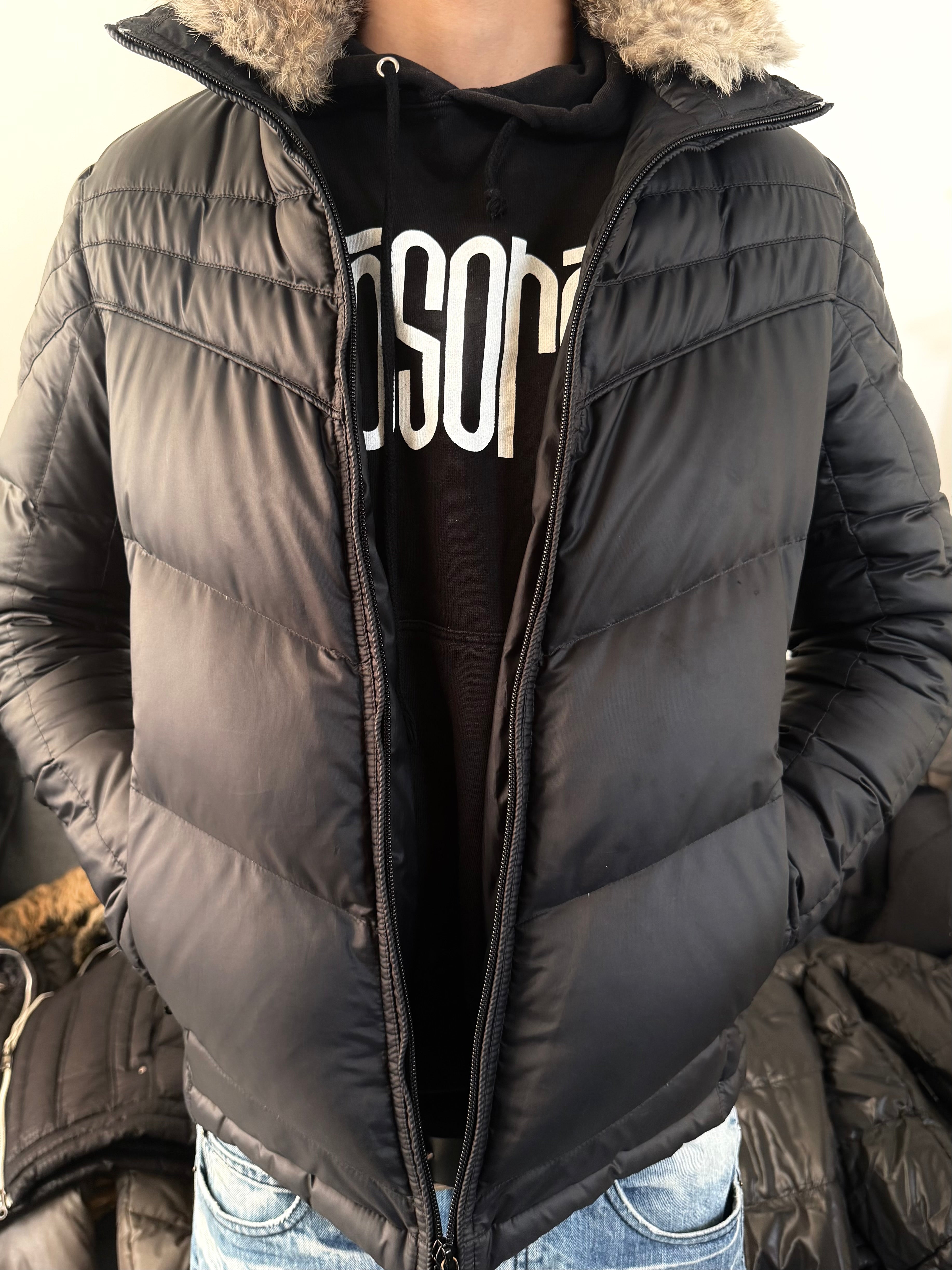 Condition: Pre-loved, very good condition. Minor signs of wear consistent with age. Padding remains full, shape is intact, fur collar is well kept.