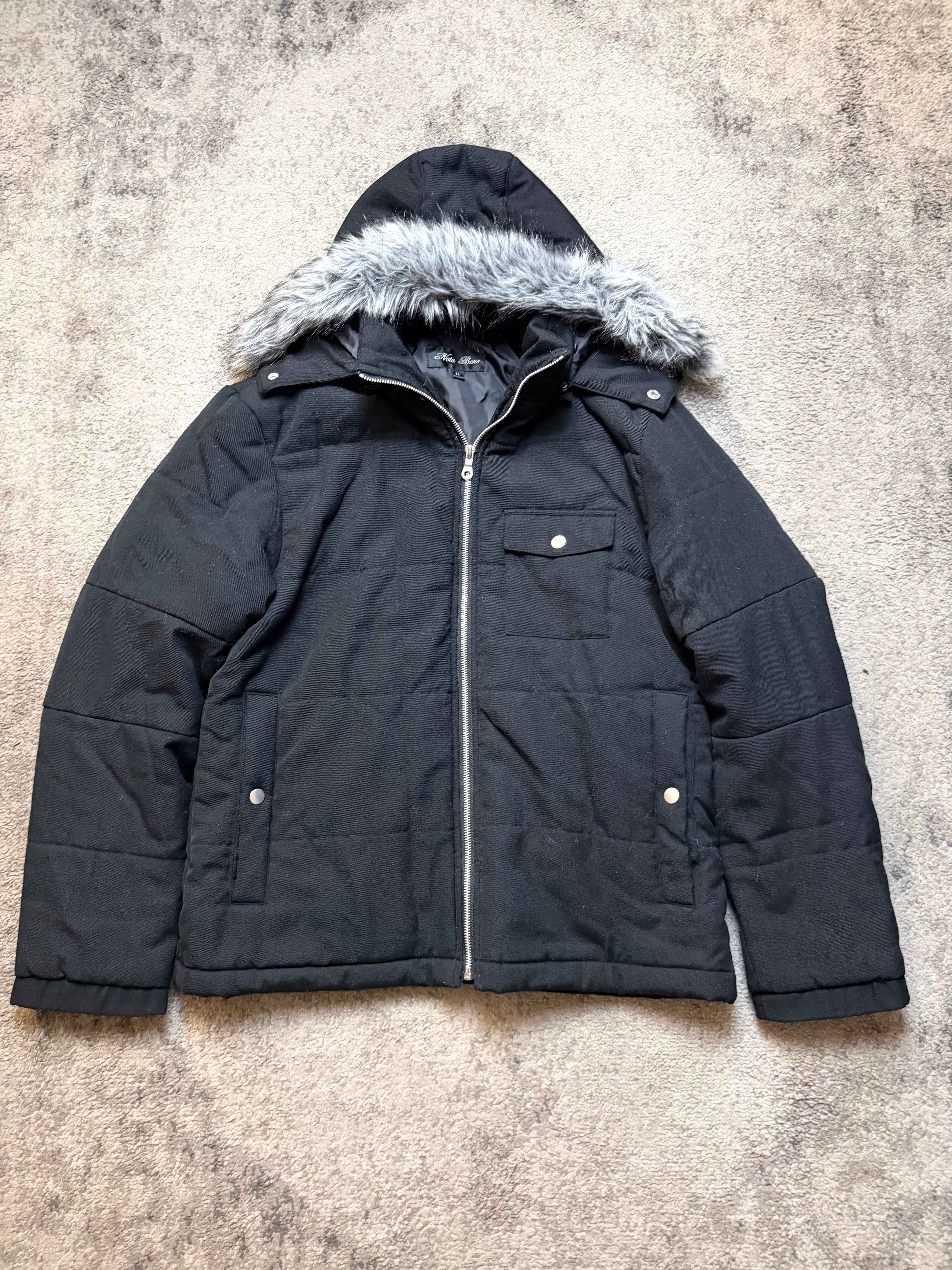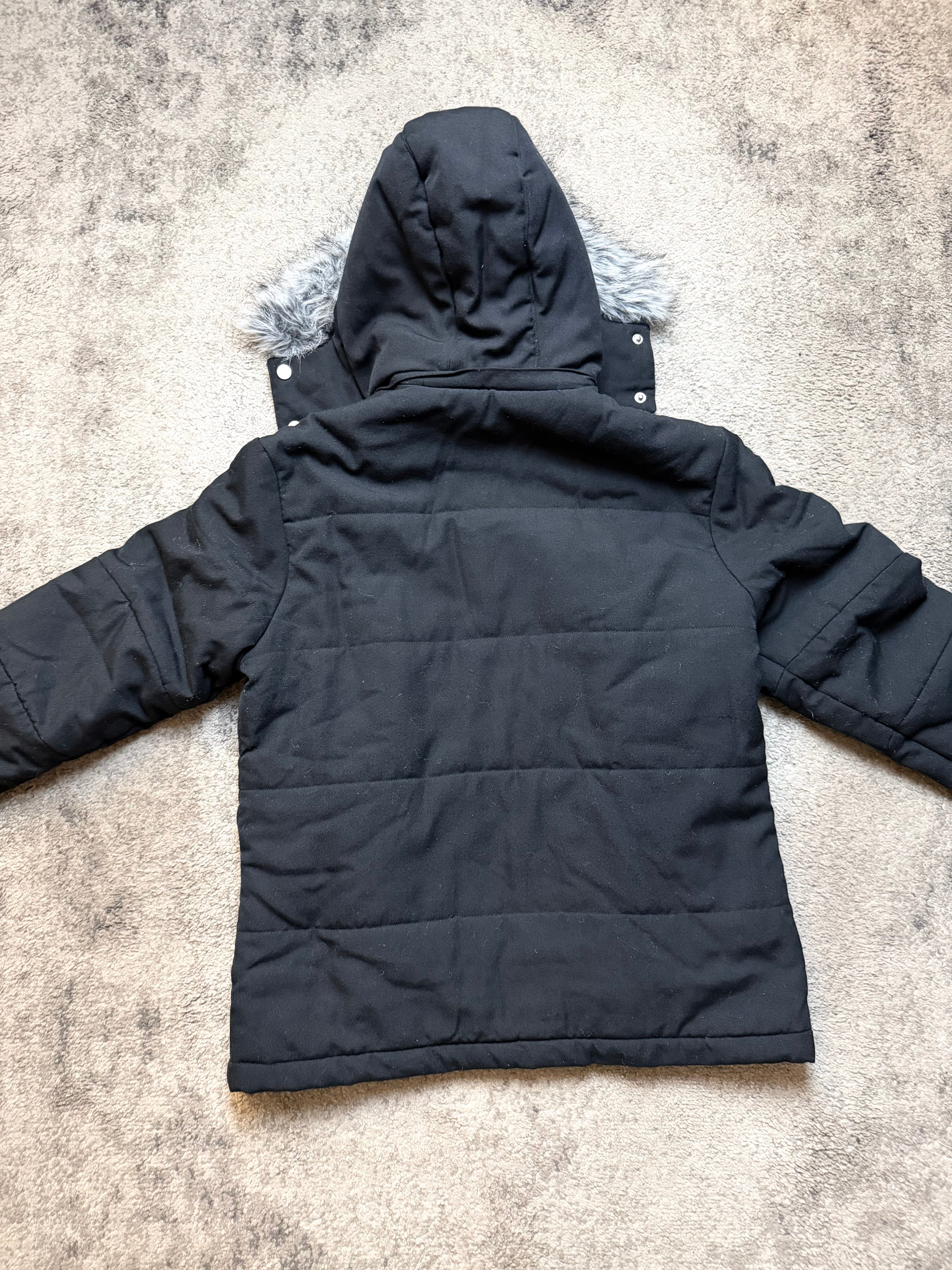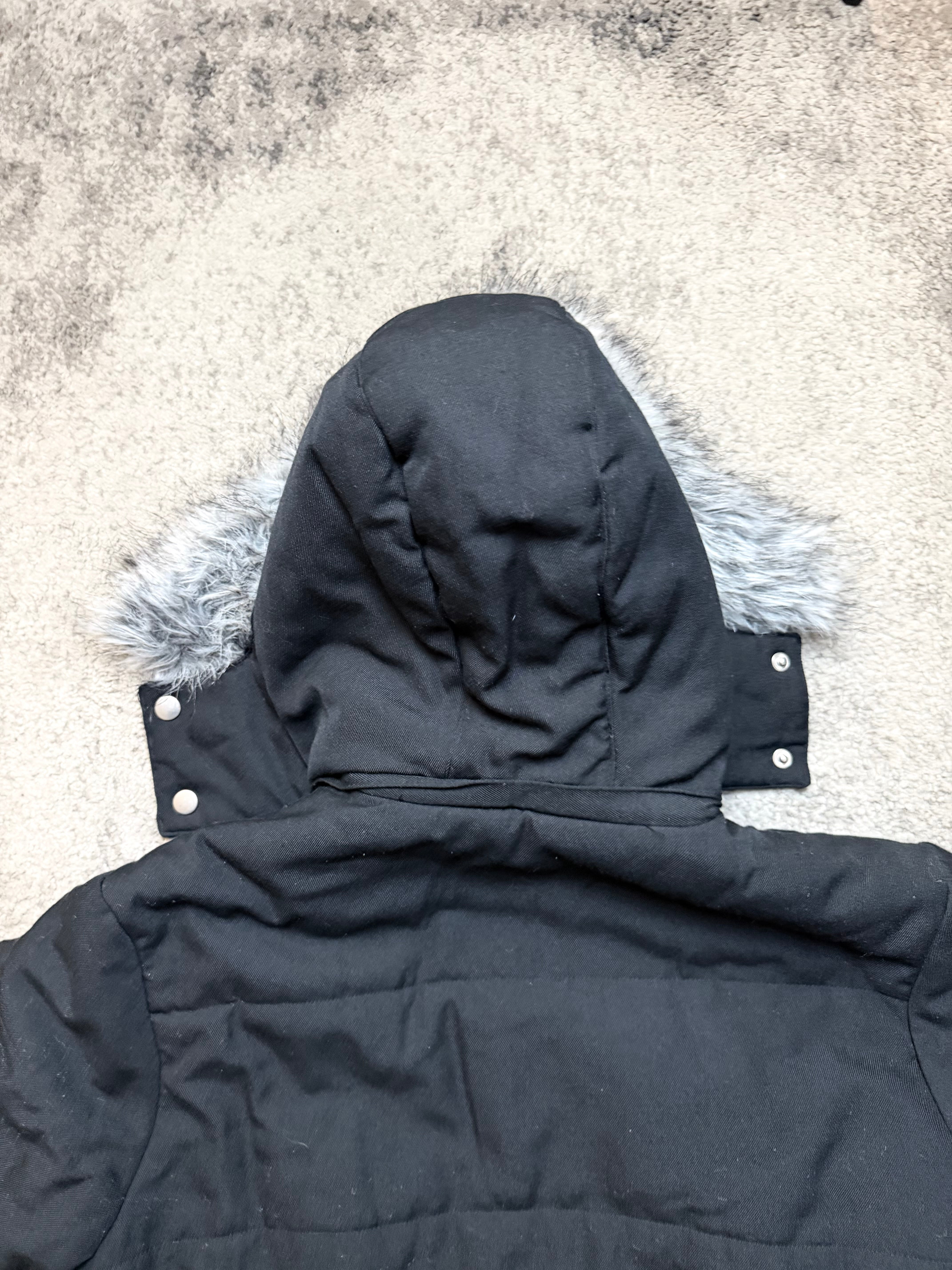 Matte black quilted shell with a warm padded interior. Faux-fur trim on the hood for that old-school Japanese street charm. Soft, durable, and reliably heat-locking without feeling bulky.